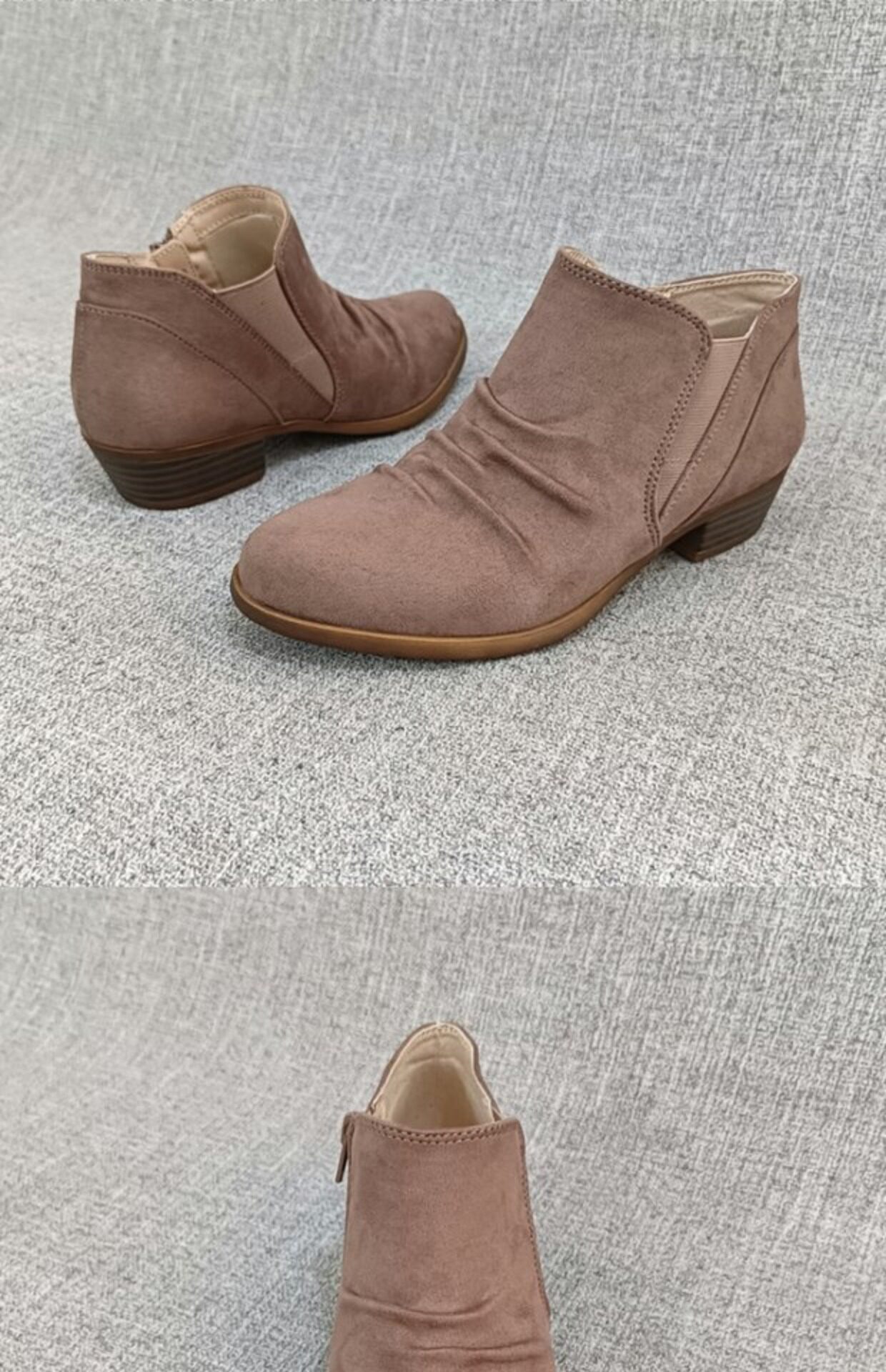 Внешняя торговля, сапоги телесного цвета с глубоким вырезом на среднем каблуке, модные ботинки, женские короткие туфли, женская обувь большого размера, дефектный зазор F4052