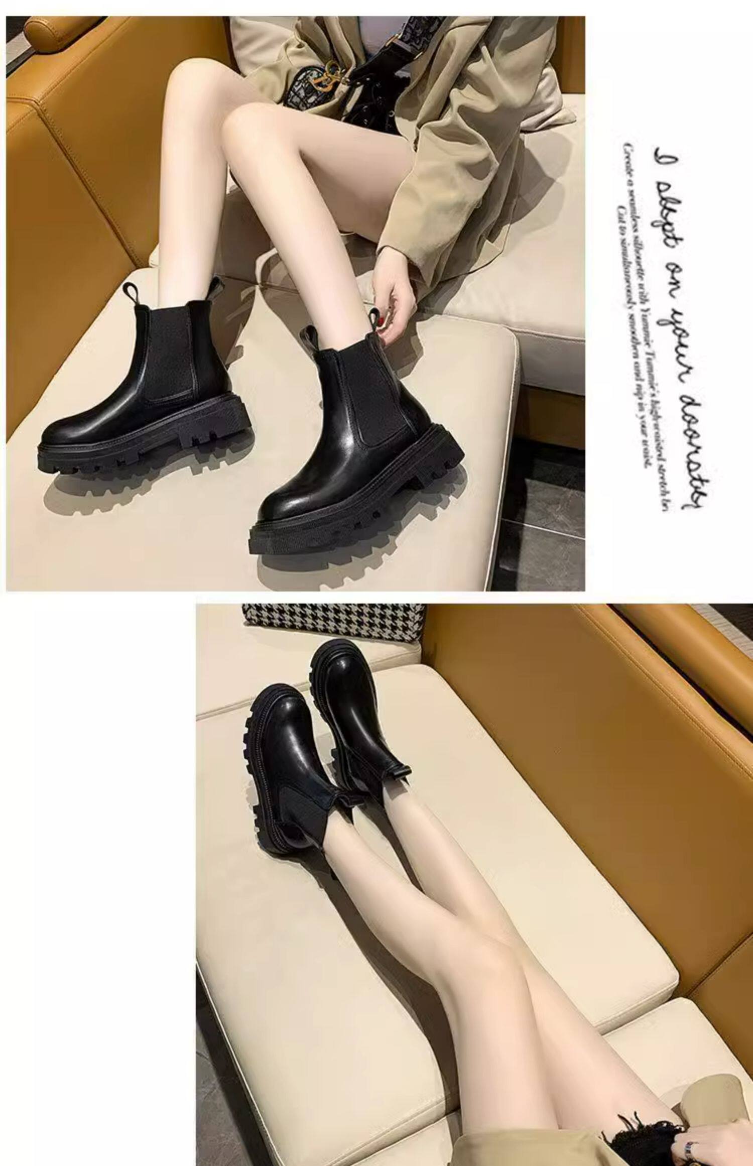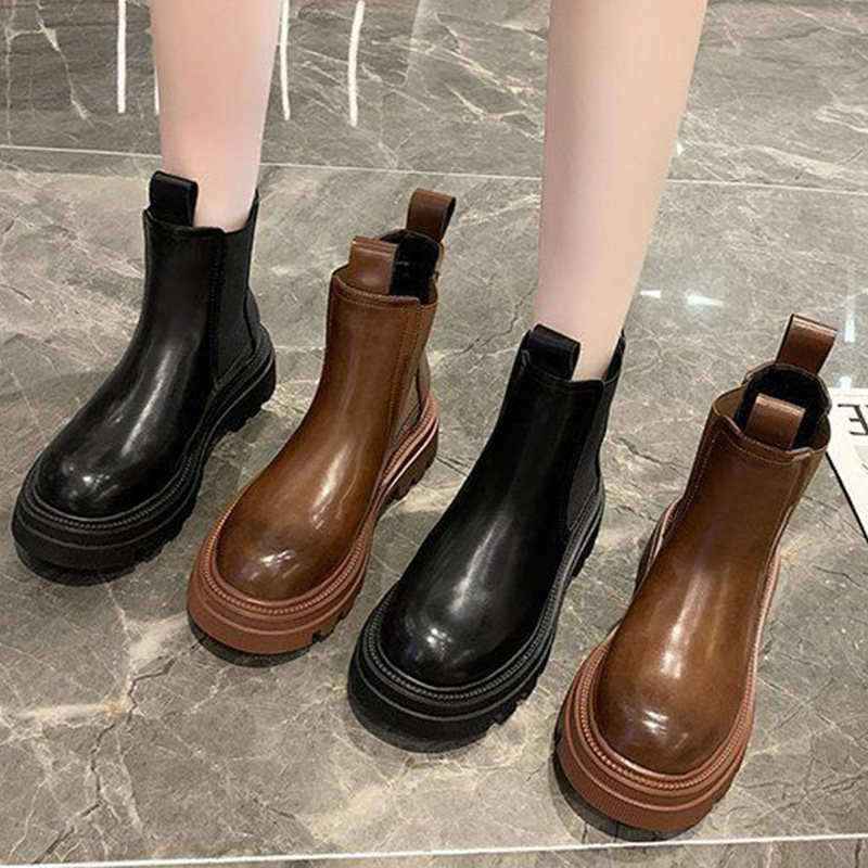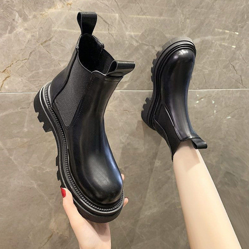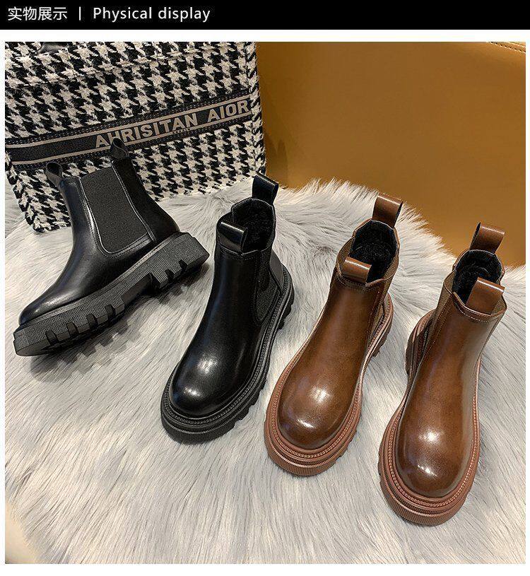 Martens, демисезонные флисовые челси на платформе, короткие сапоги, средней длины, в западном стиле