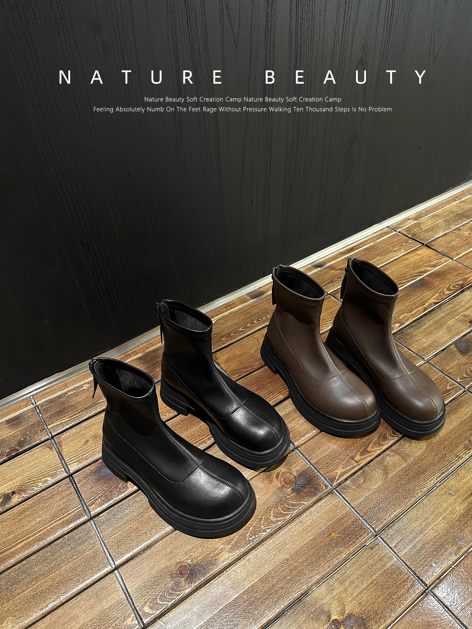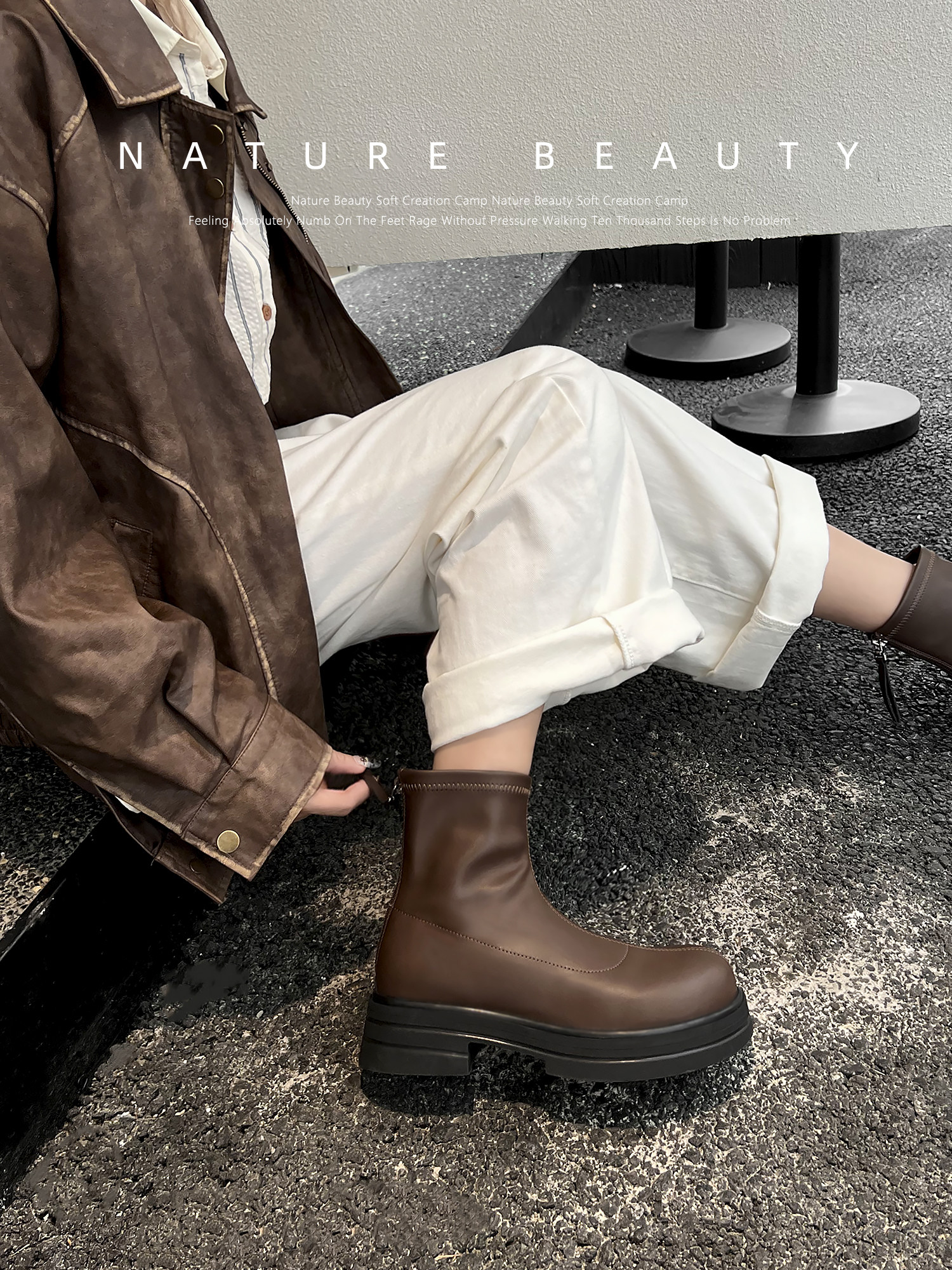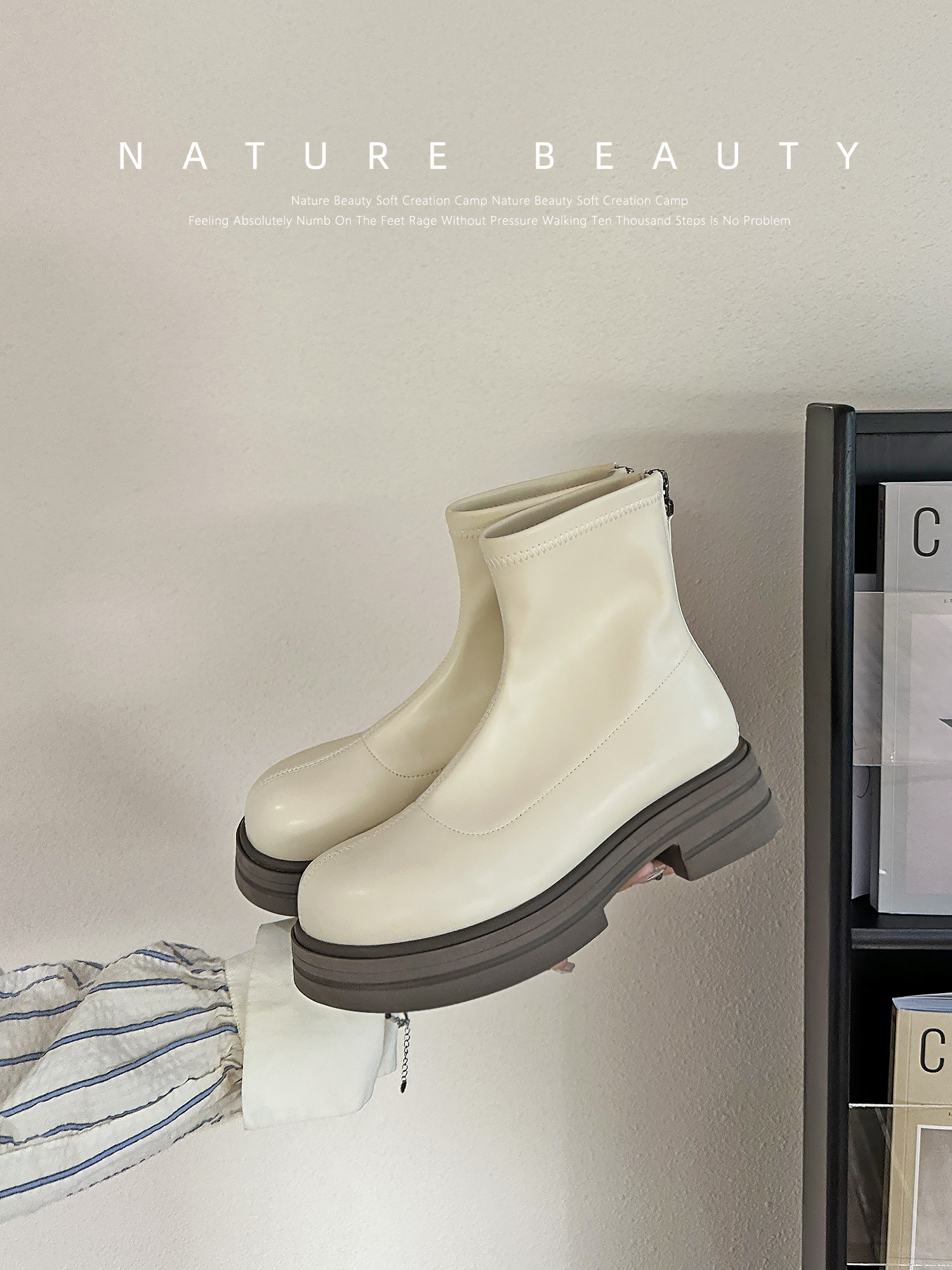 Эластичные демисезонные короткие сапоги на платформе с молнией, коллекция 2023