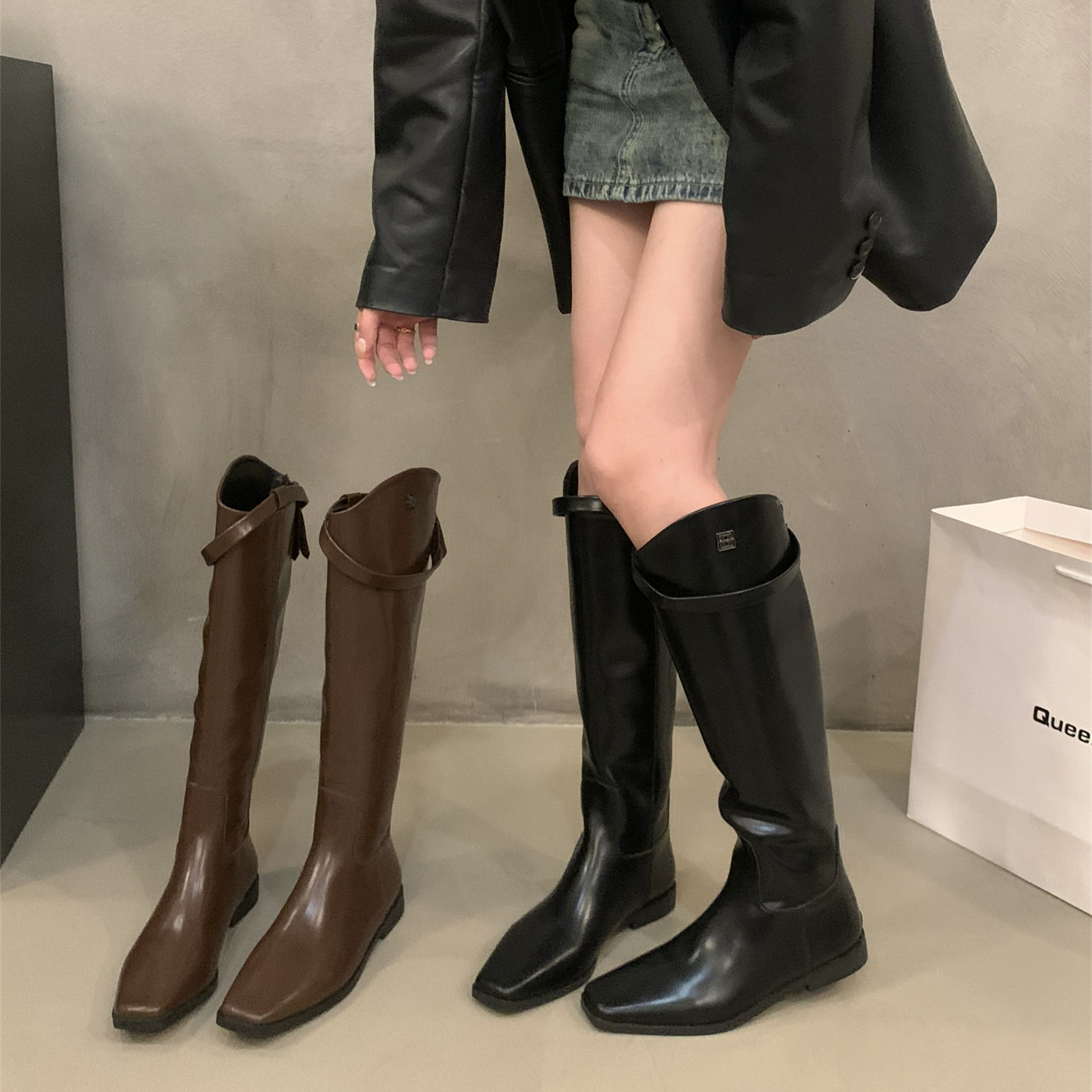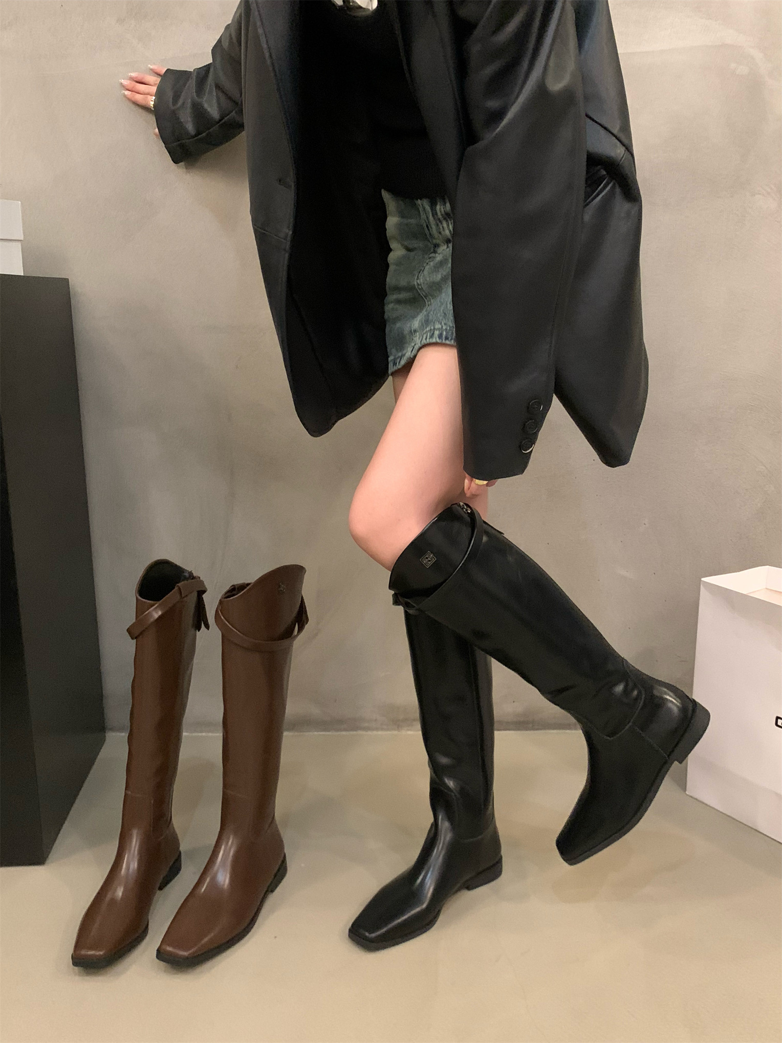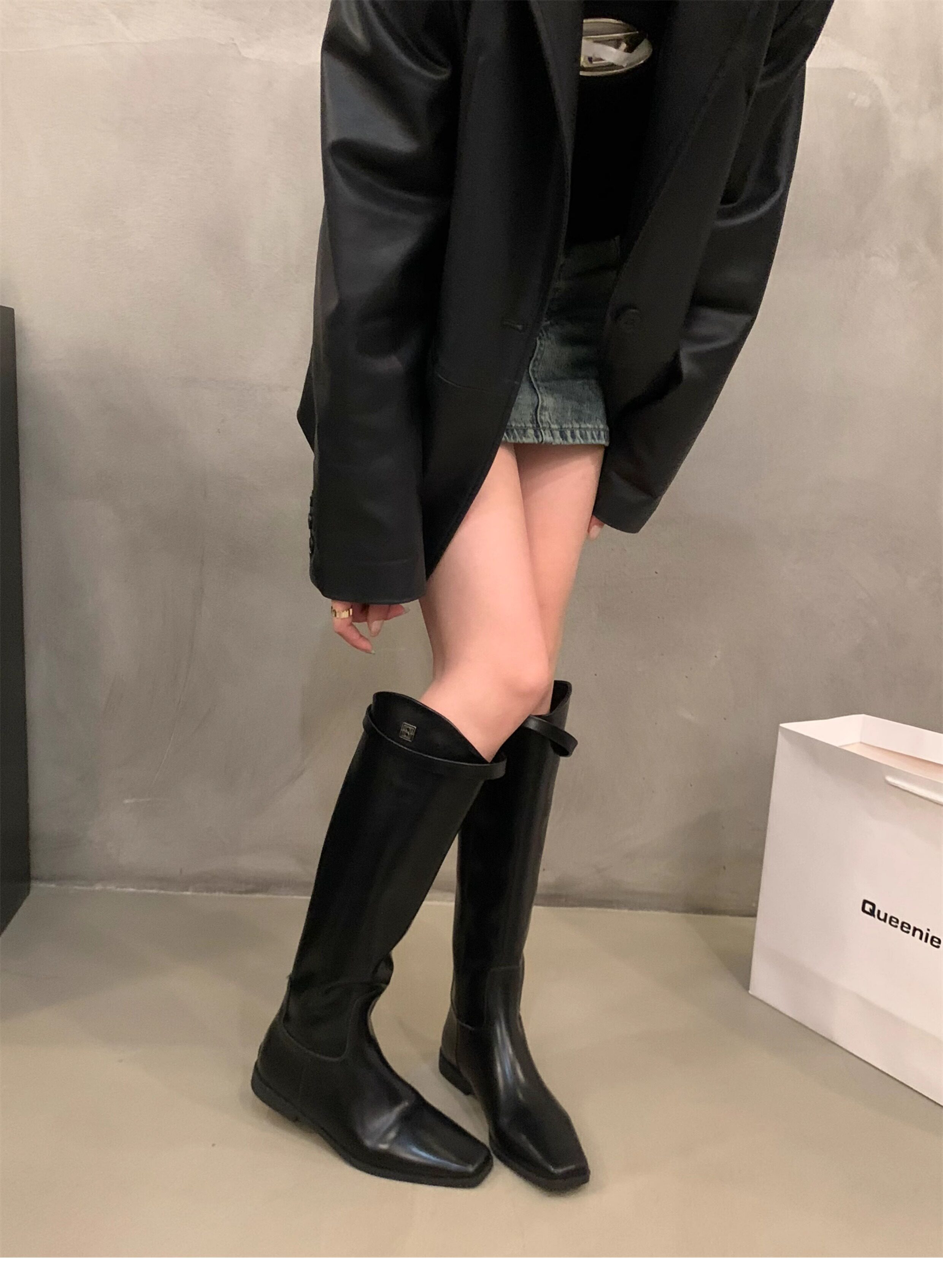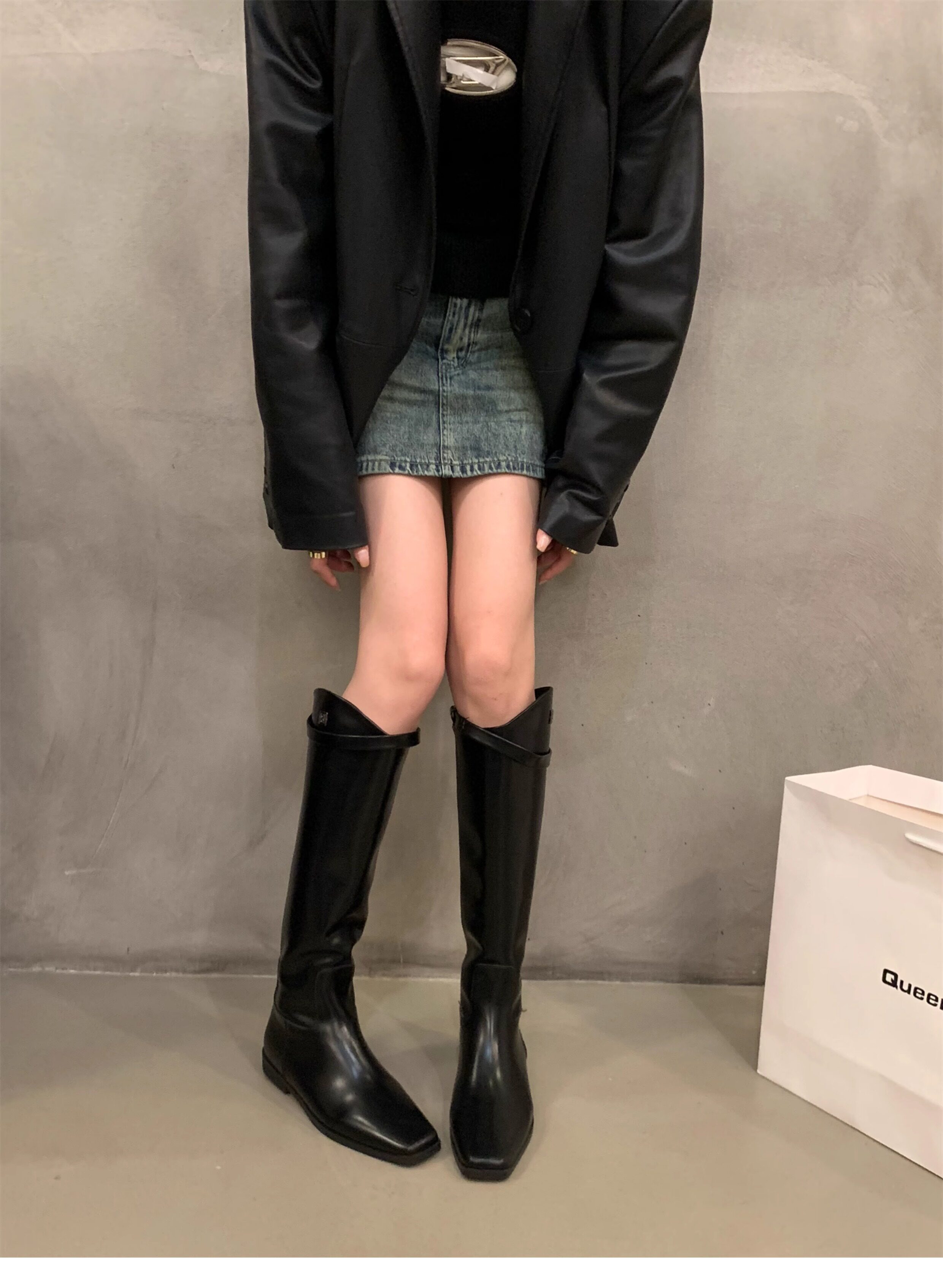 Черные демисезонные высокие сапоги, ботинки, 2024 года, средней длины