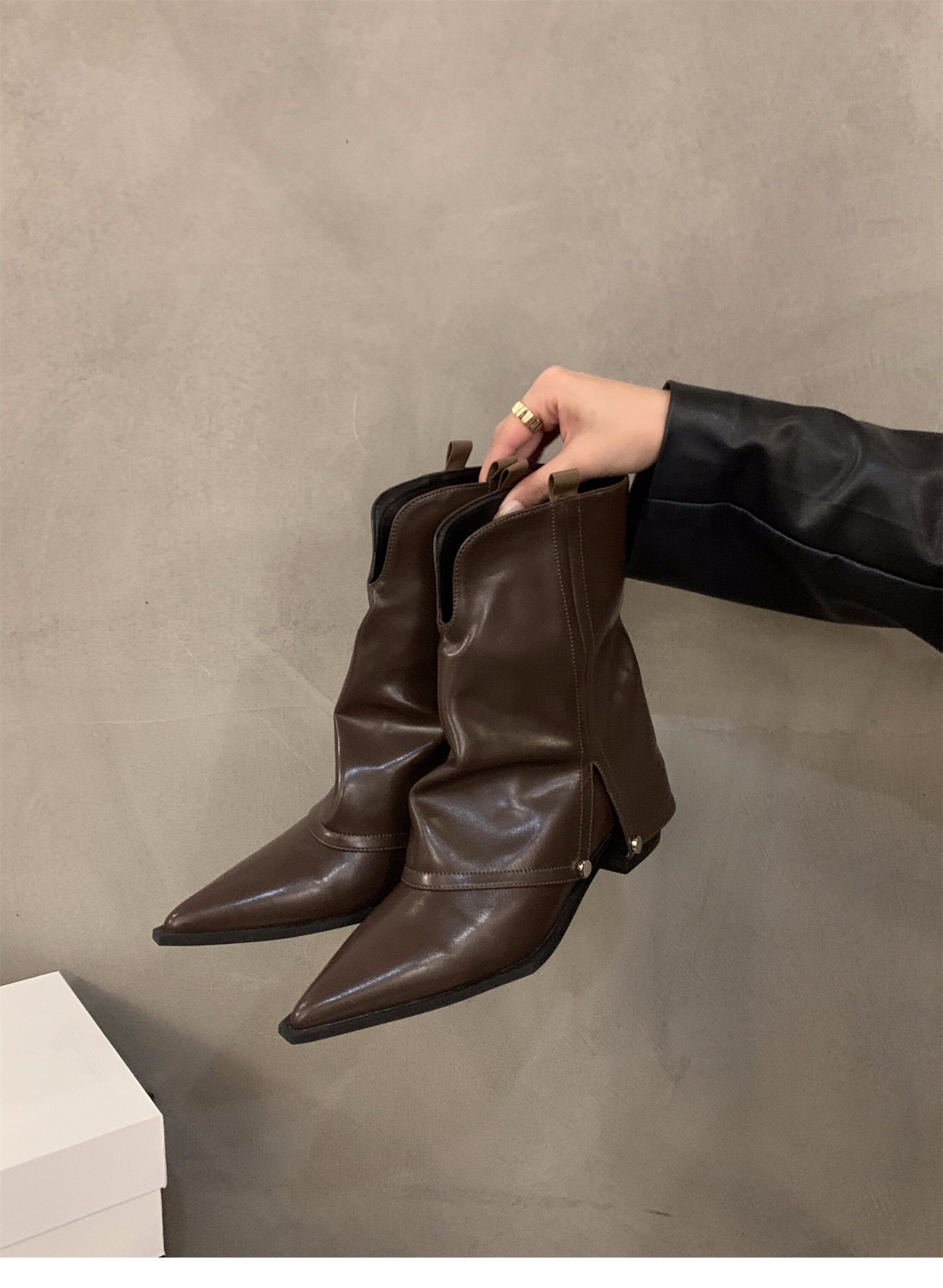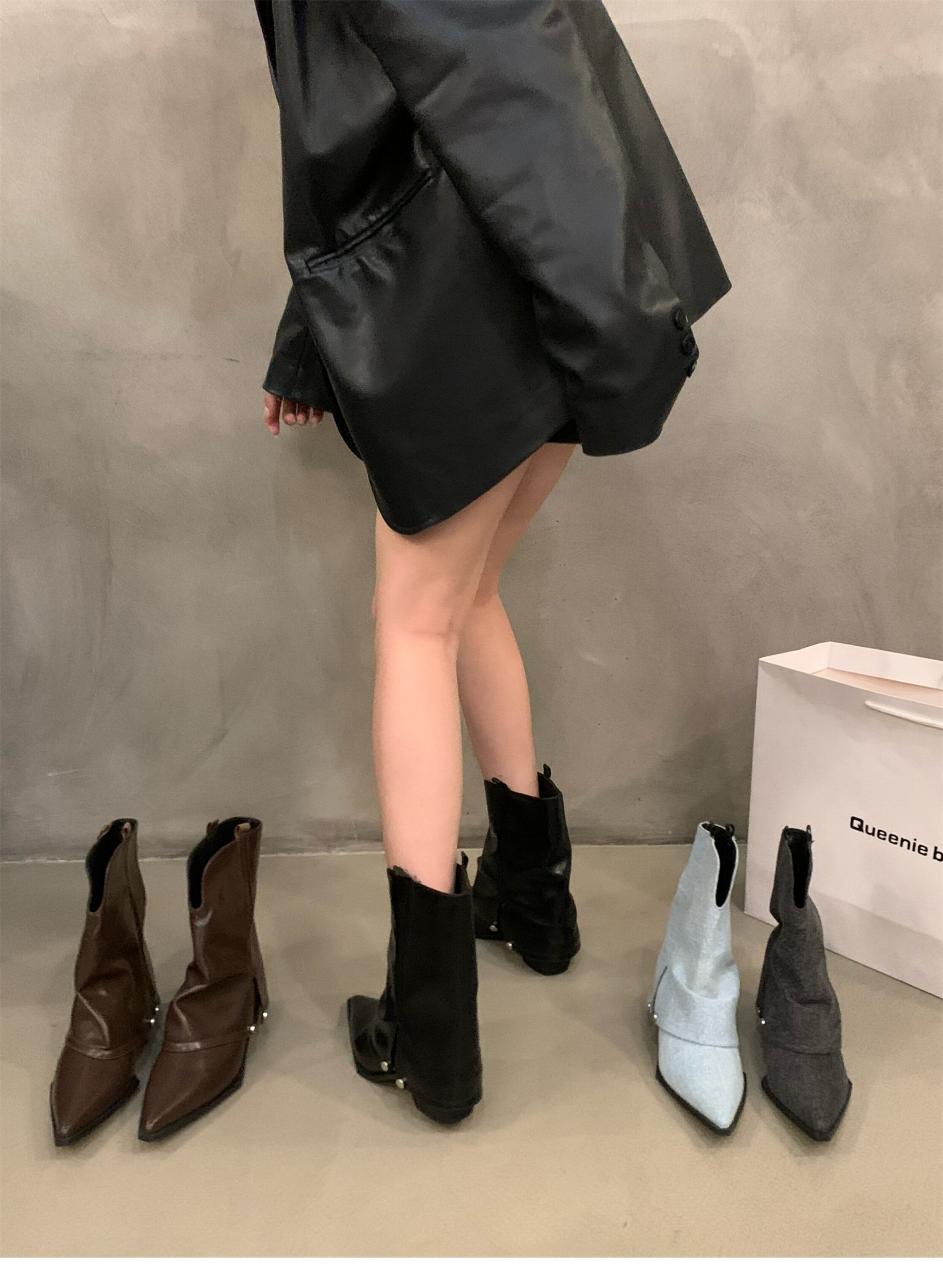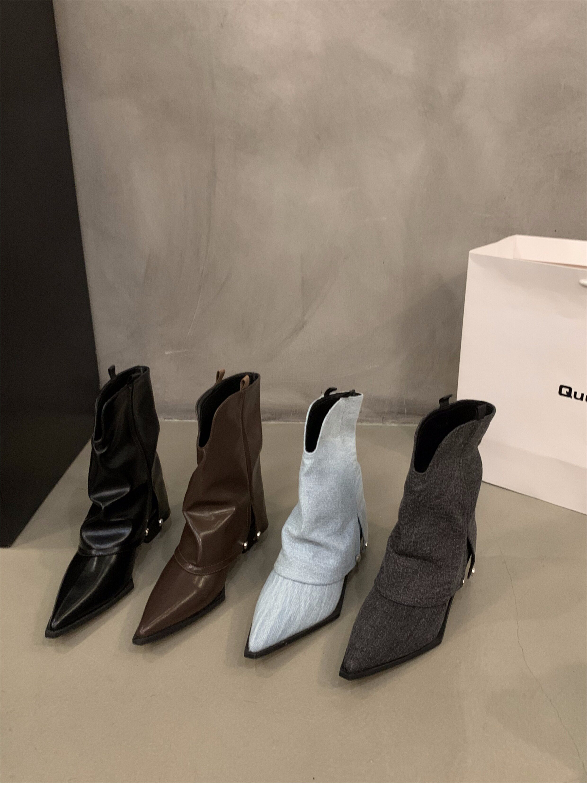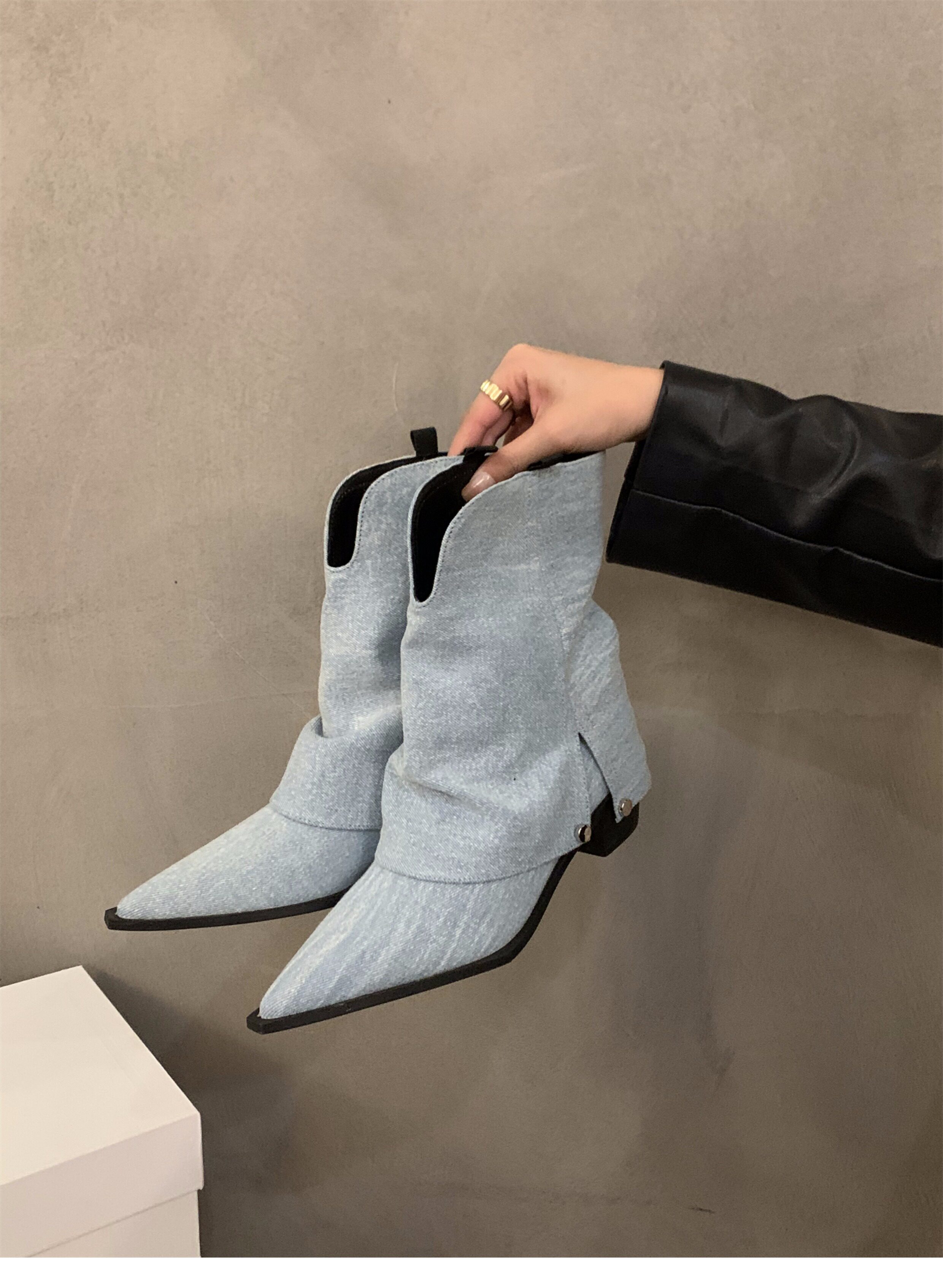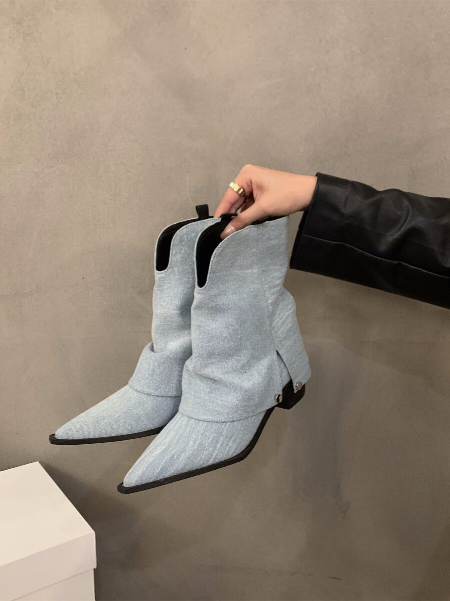 Штаны с заостренным носом, короткие сапоги, осенняя летняя обувь, коричневые джинсовые ботинки