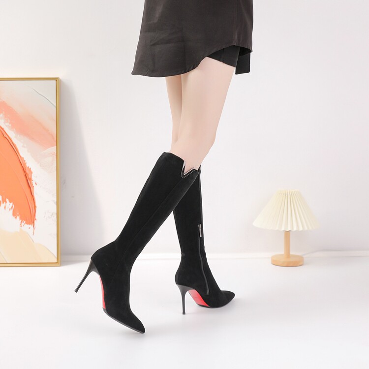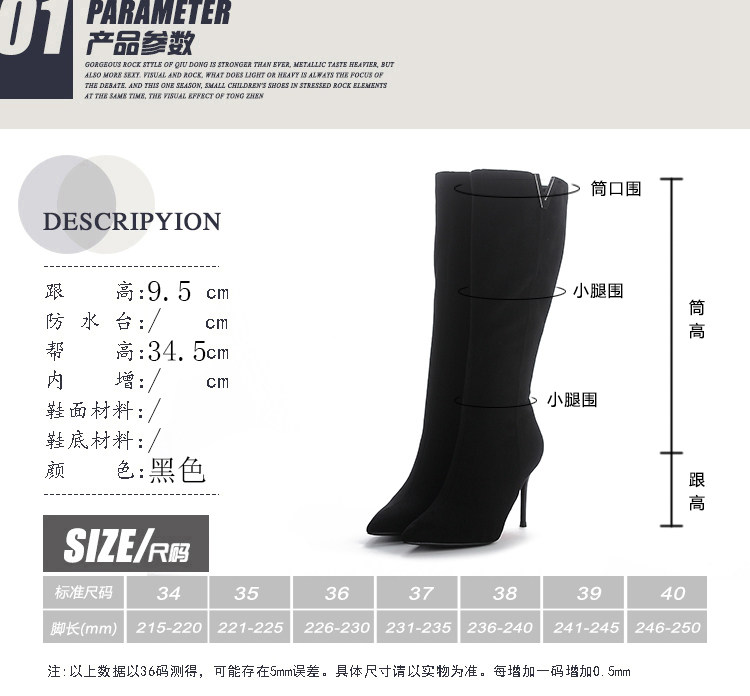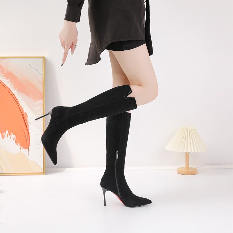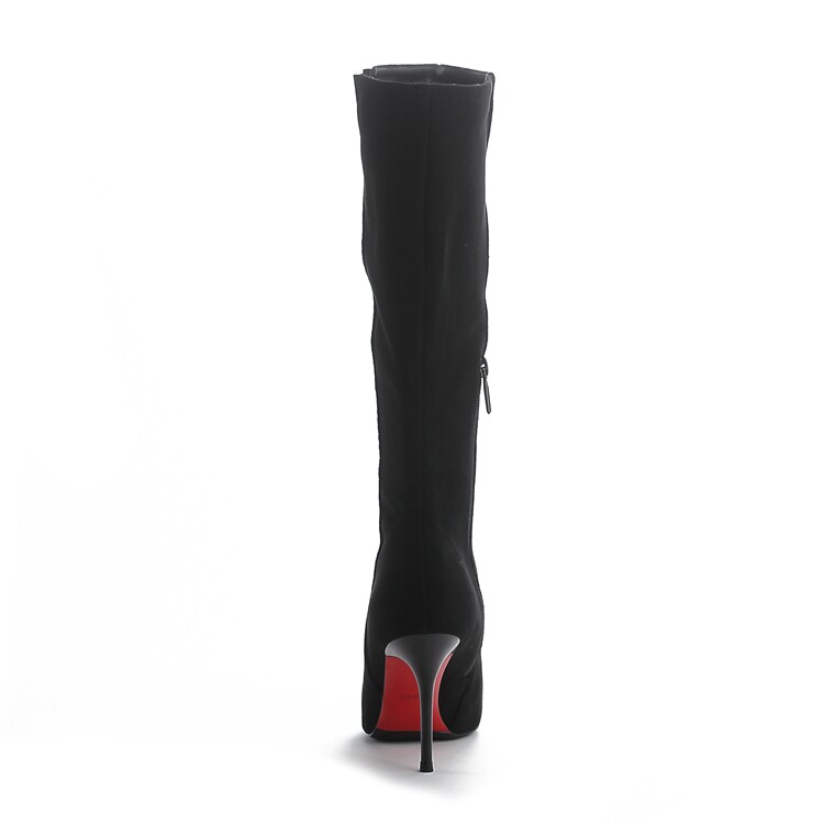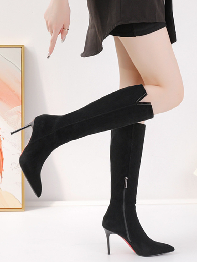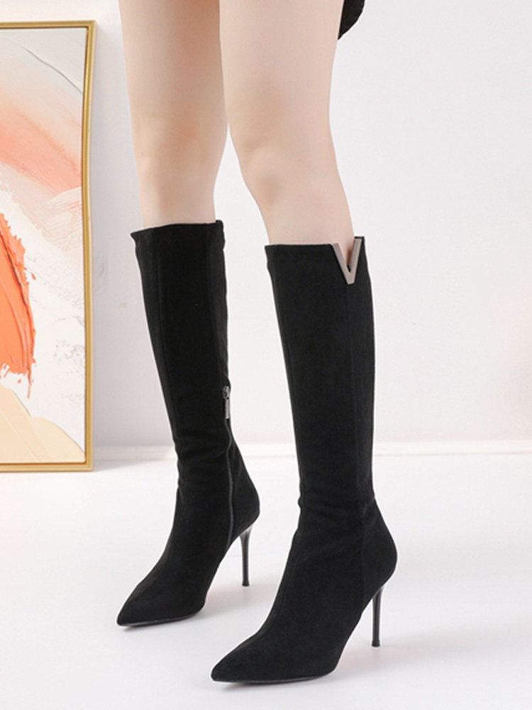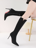 Демисезонные сексуальные черные высокие сапоги с заостренным носом с молнией, по фигуре
