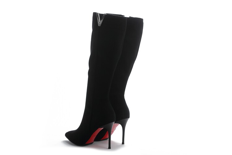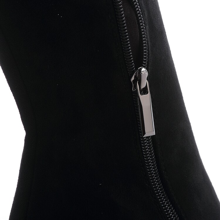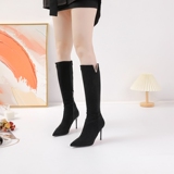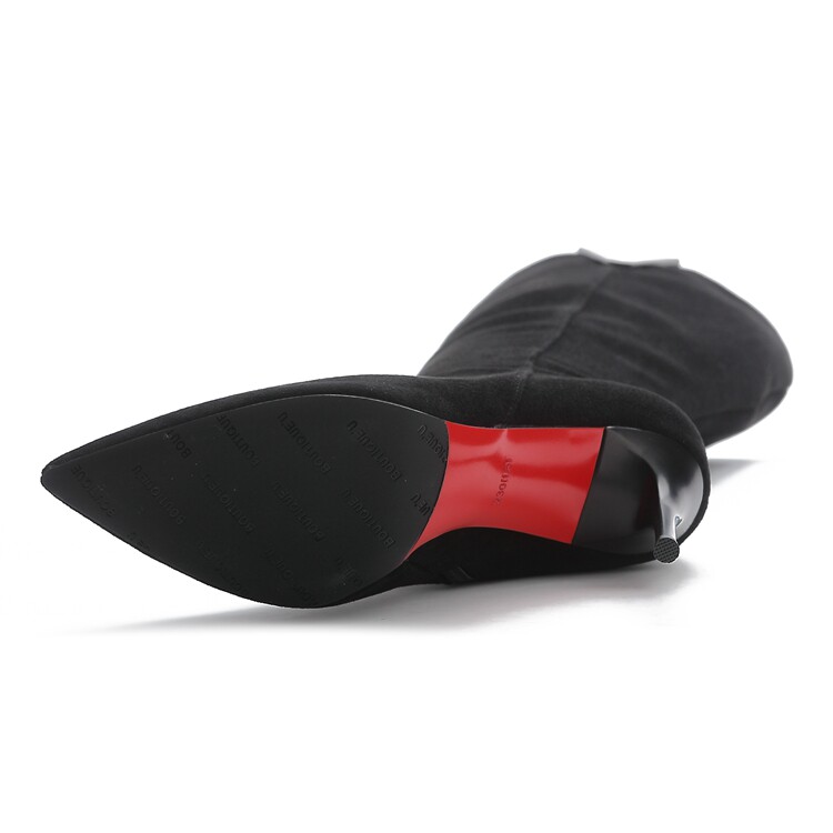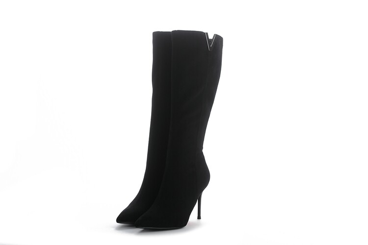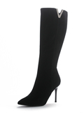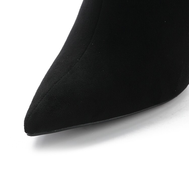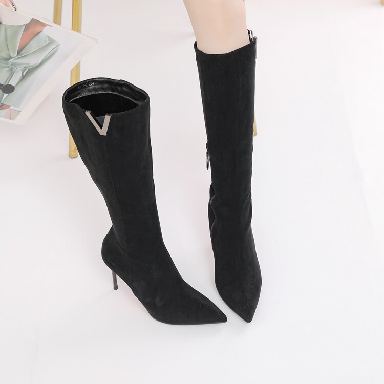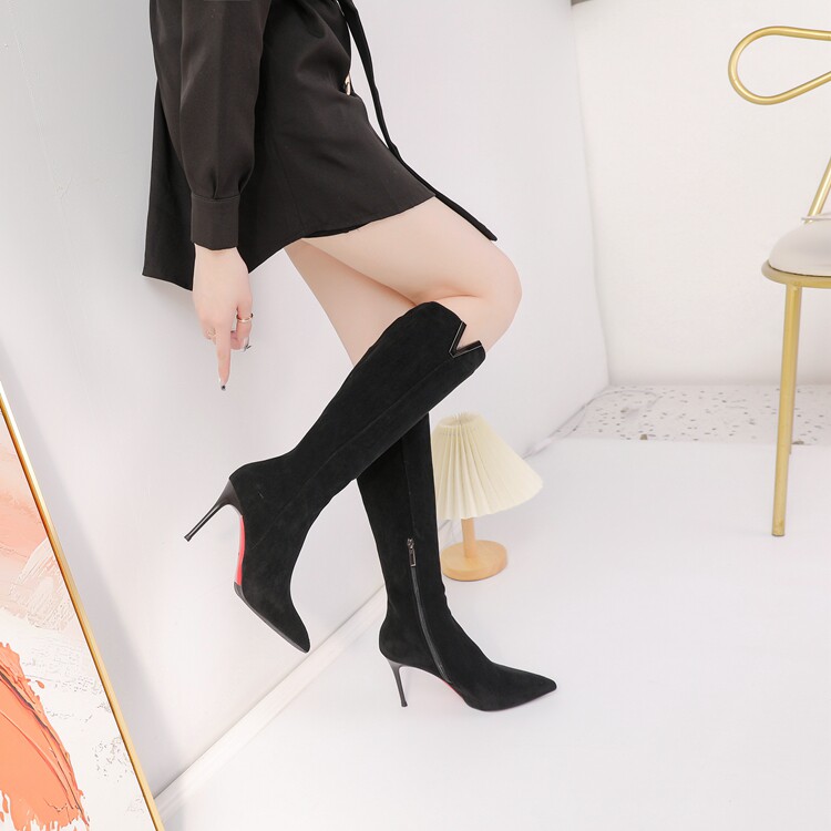Демисезонные сексуальные черные высокие сапоги с заостренным носом с молнией, по фигуре