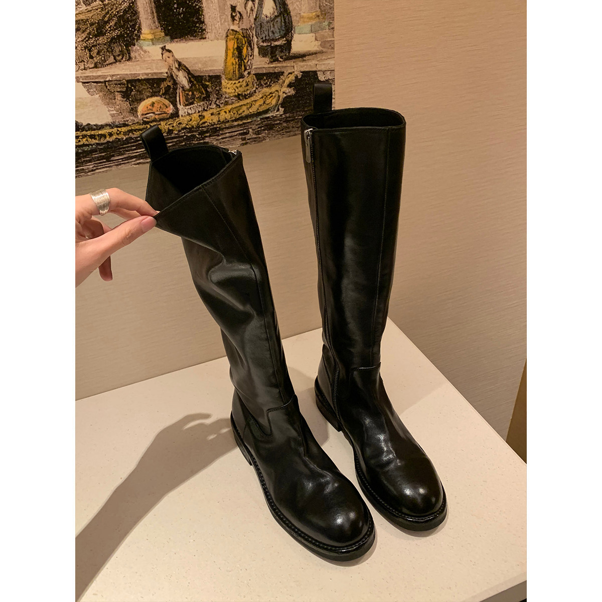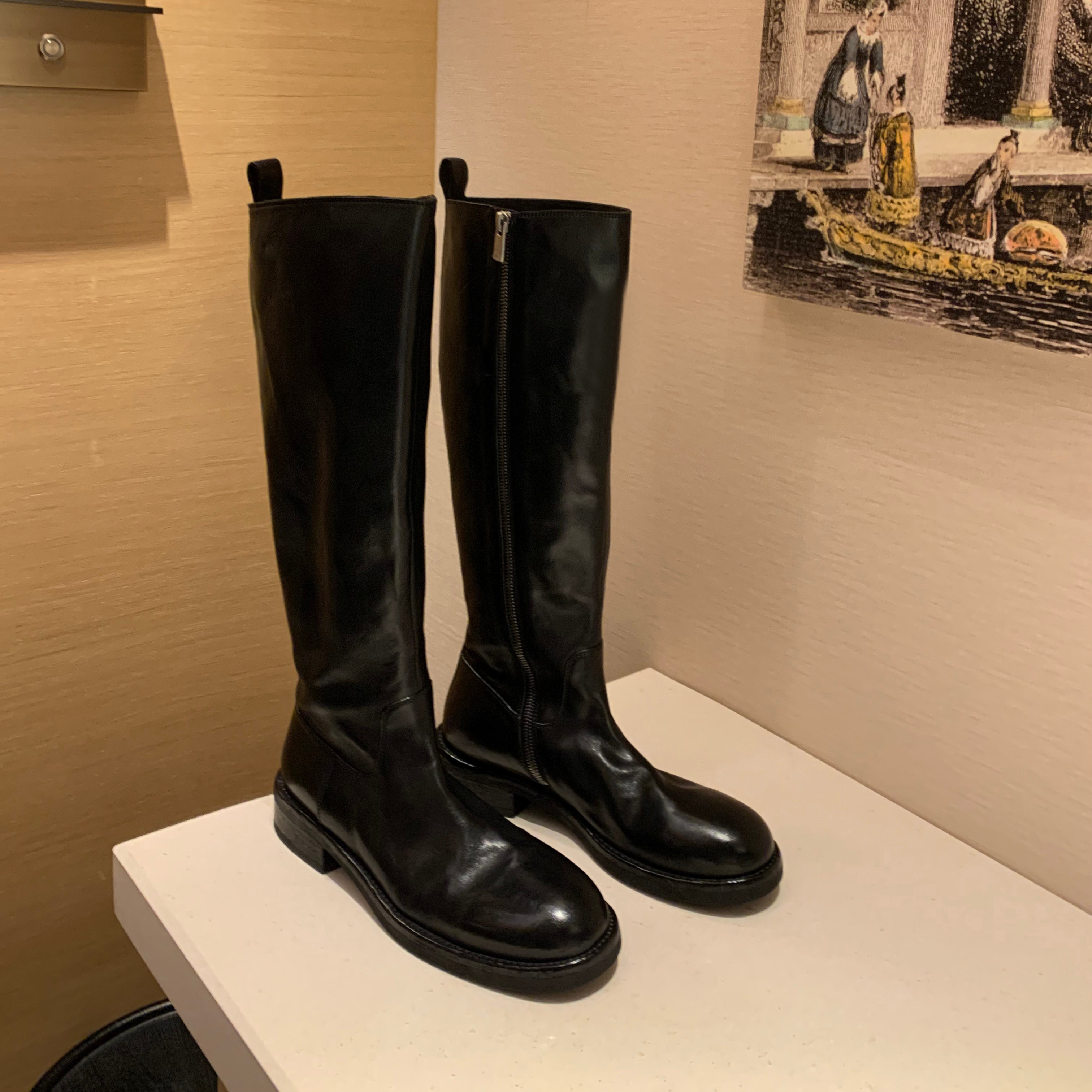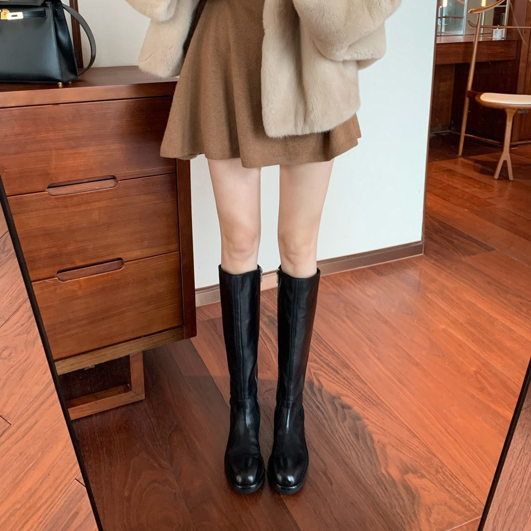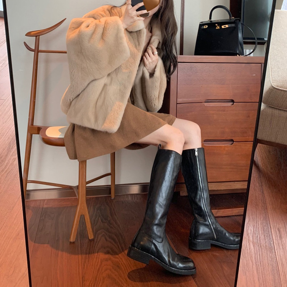 Кожаные высокие сапоги с молнией, из натуральной кожи, по фигуре