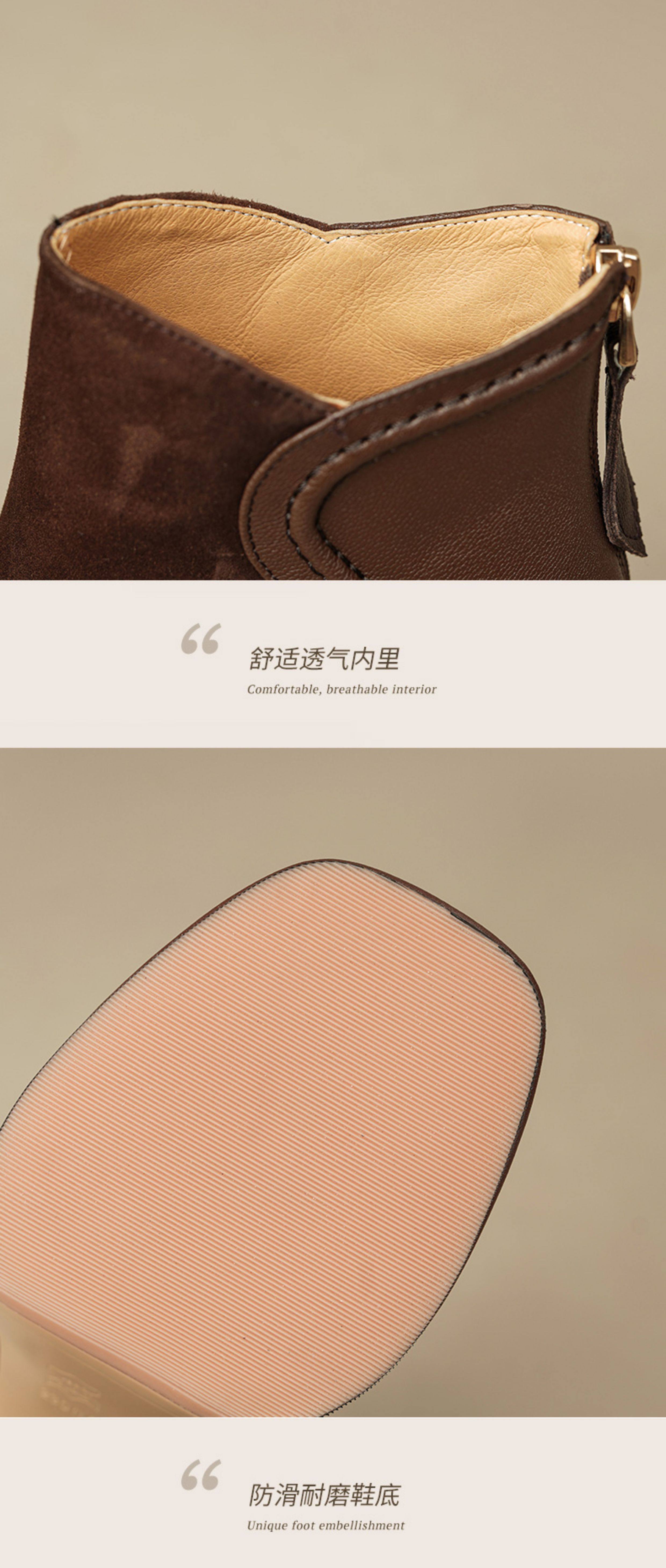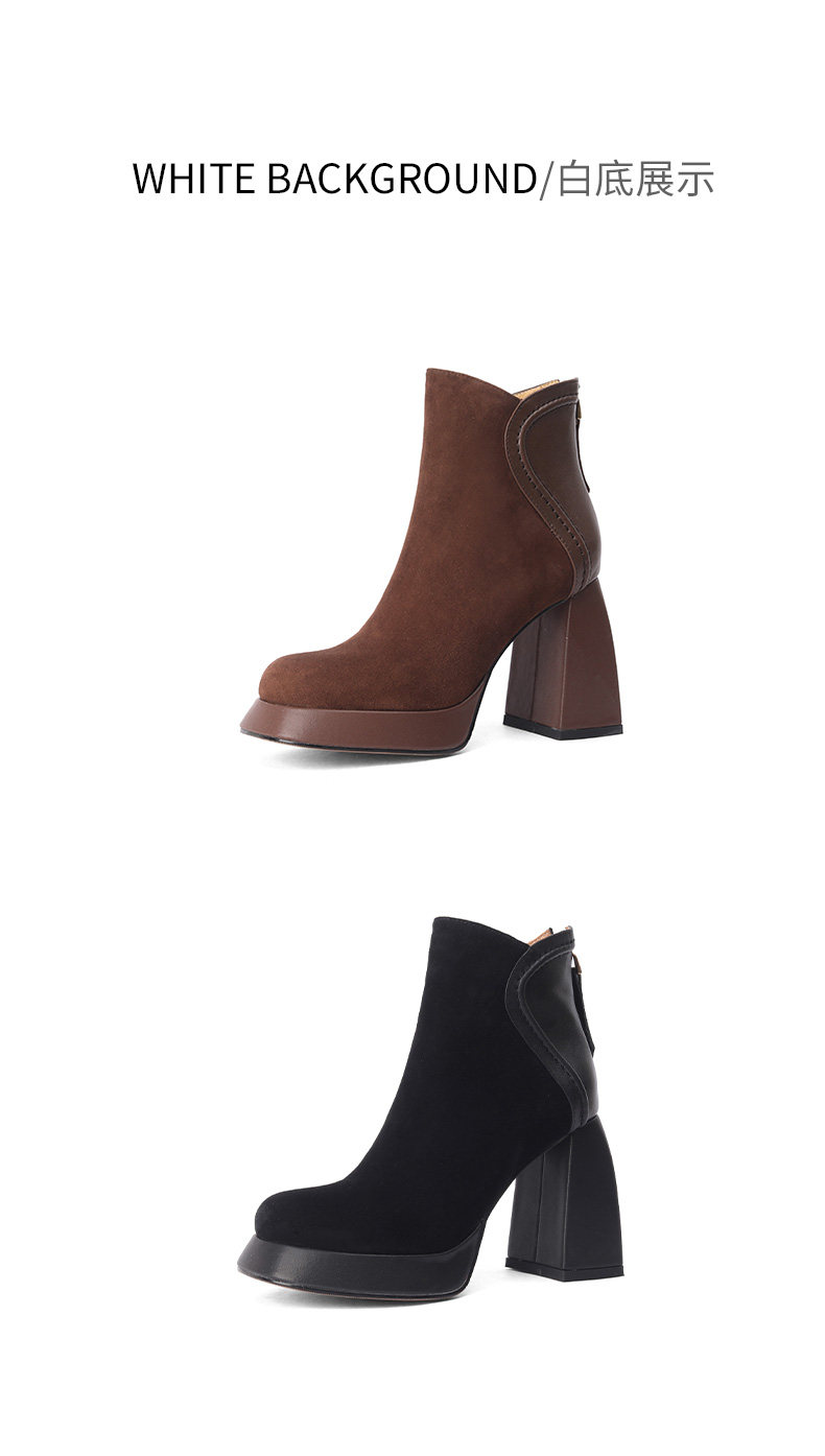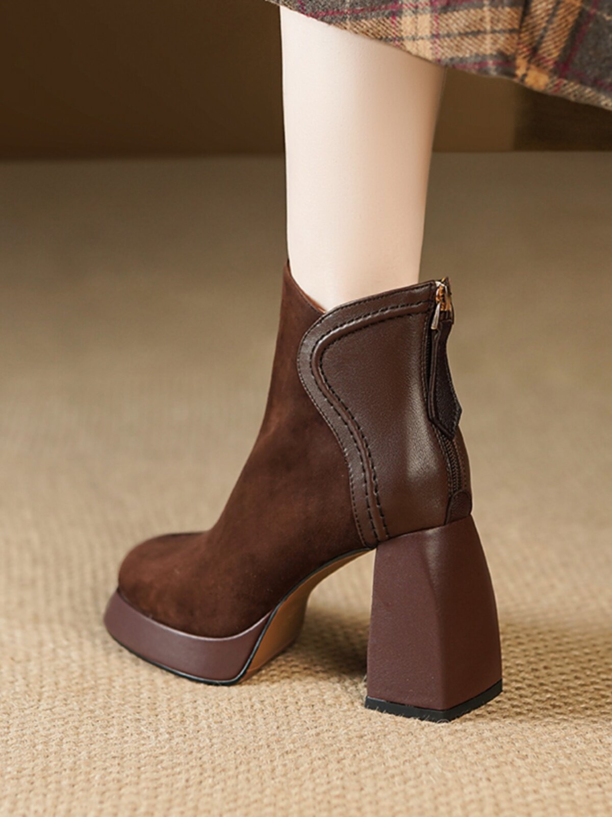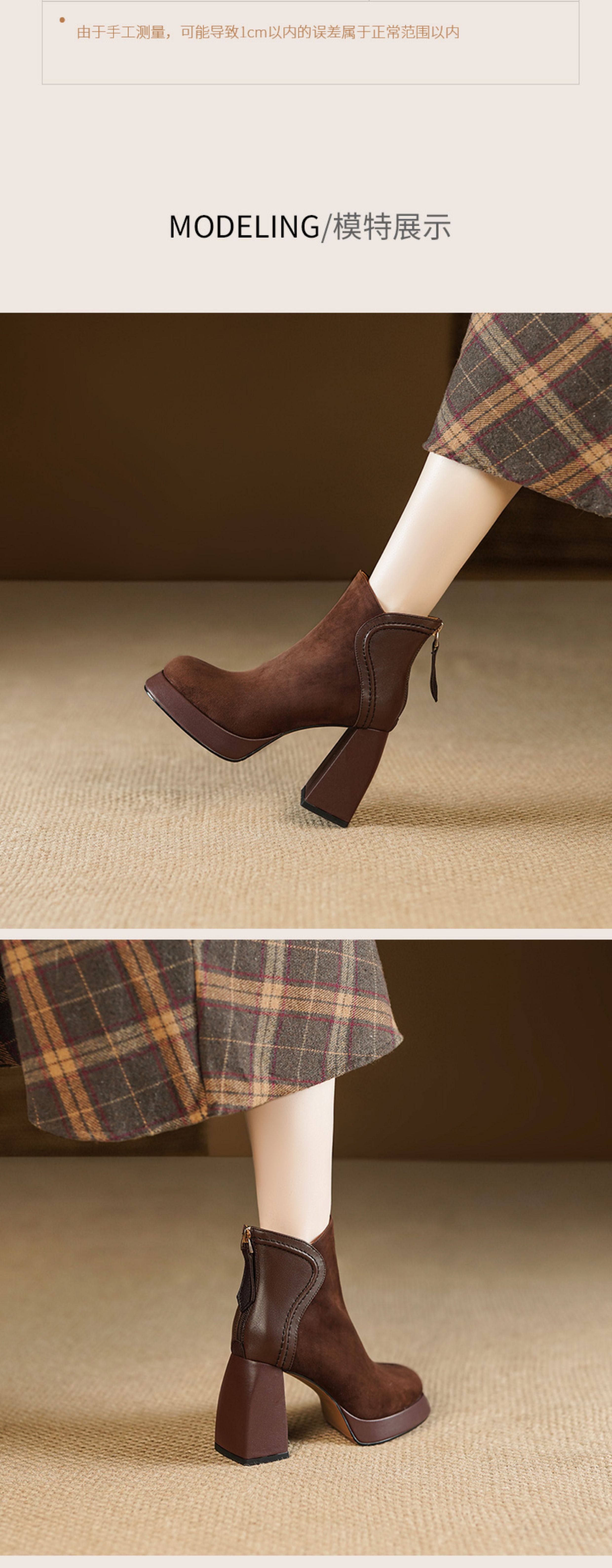 Кофейные высокие короткие сапоги с молнией, ботинки, из натуральной кожи, 9см
