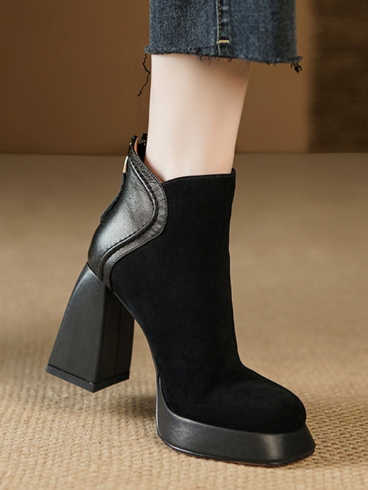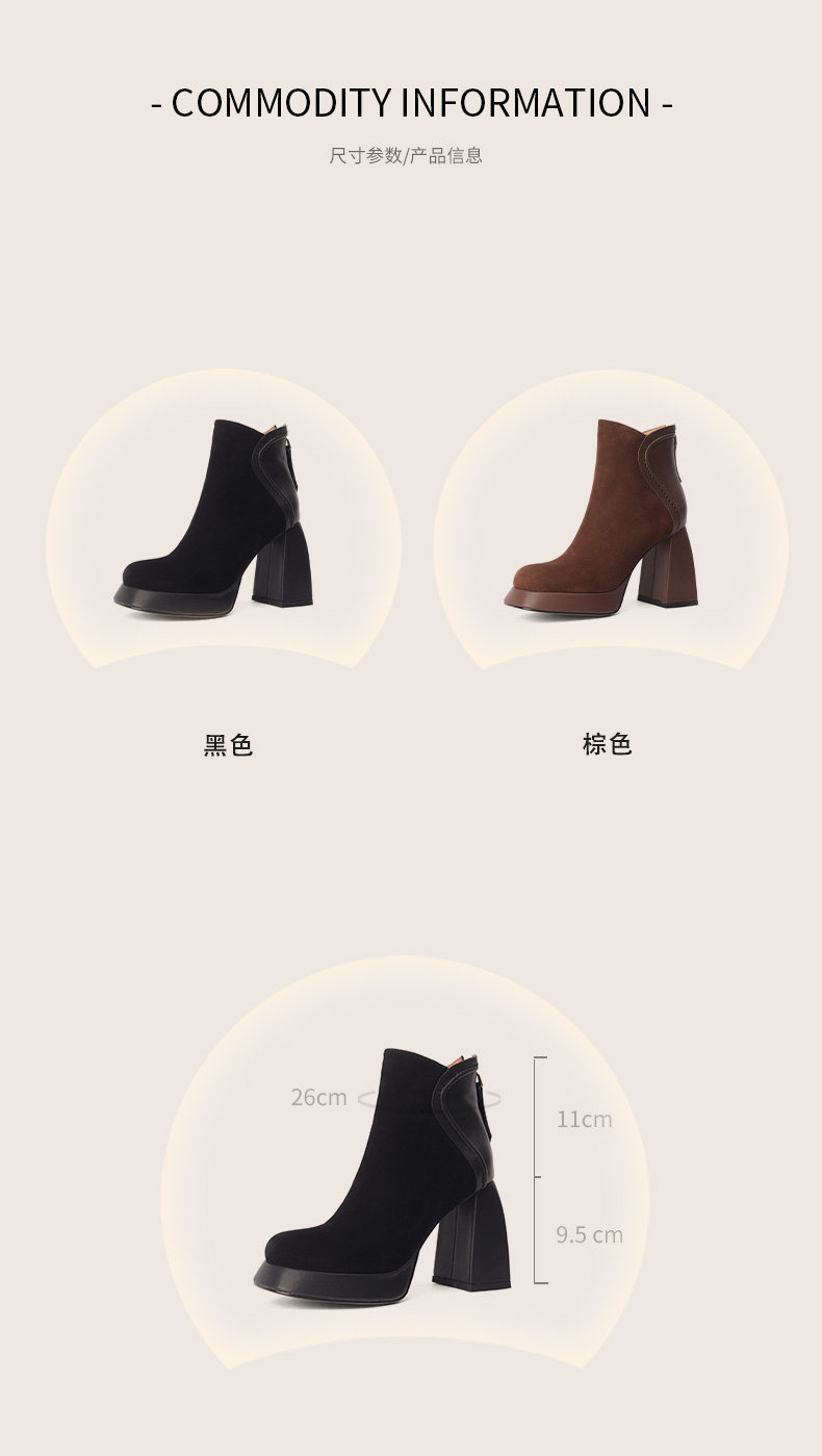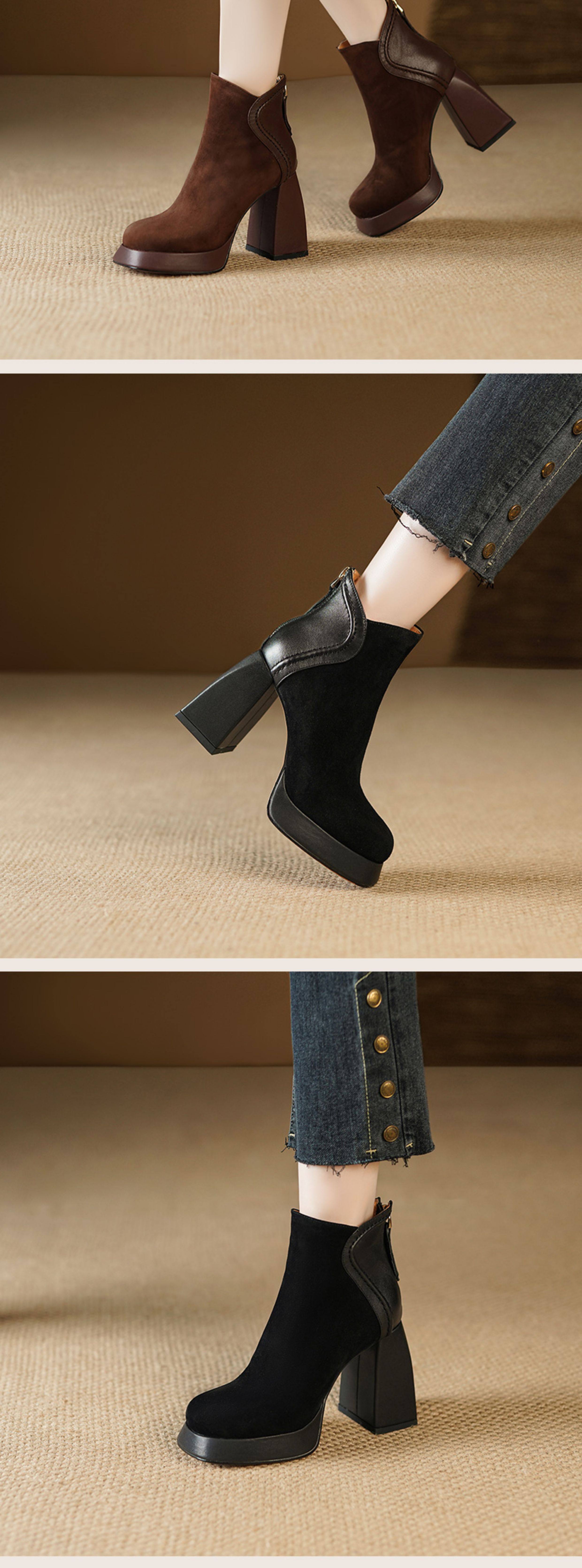 Кофейные высокие короткие сапоги с молнией, ботинки, из натуральной кожи, 9см