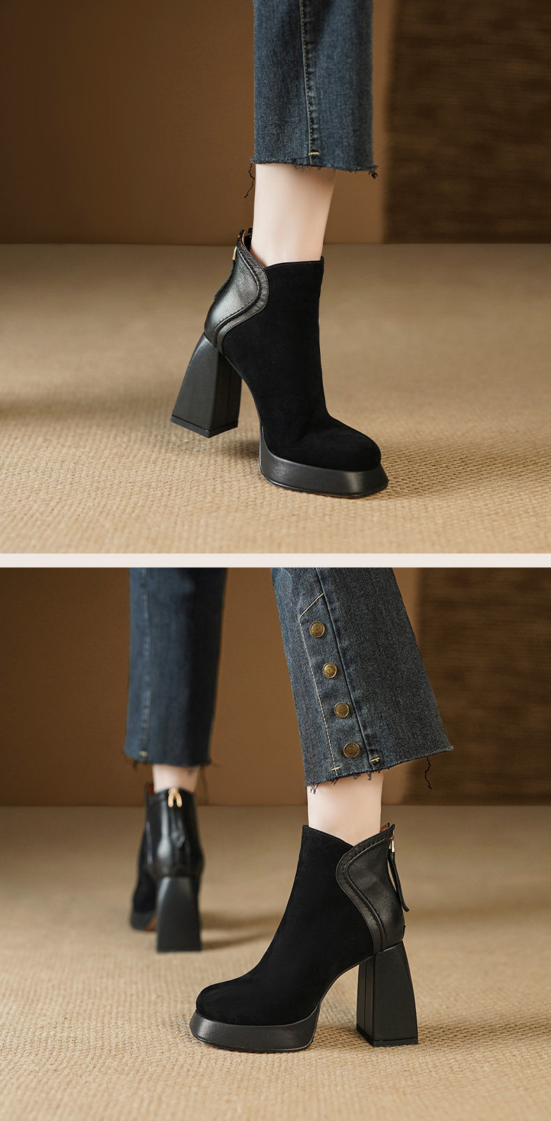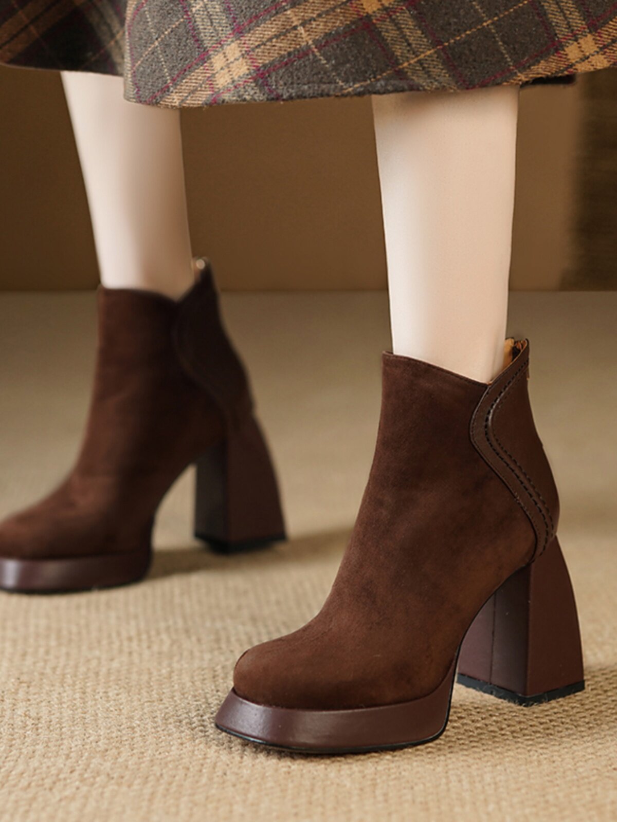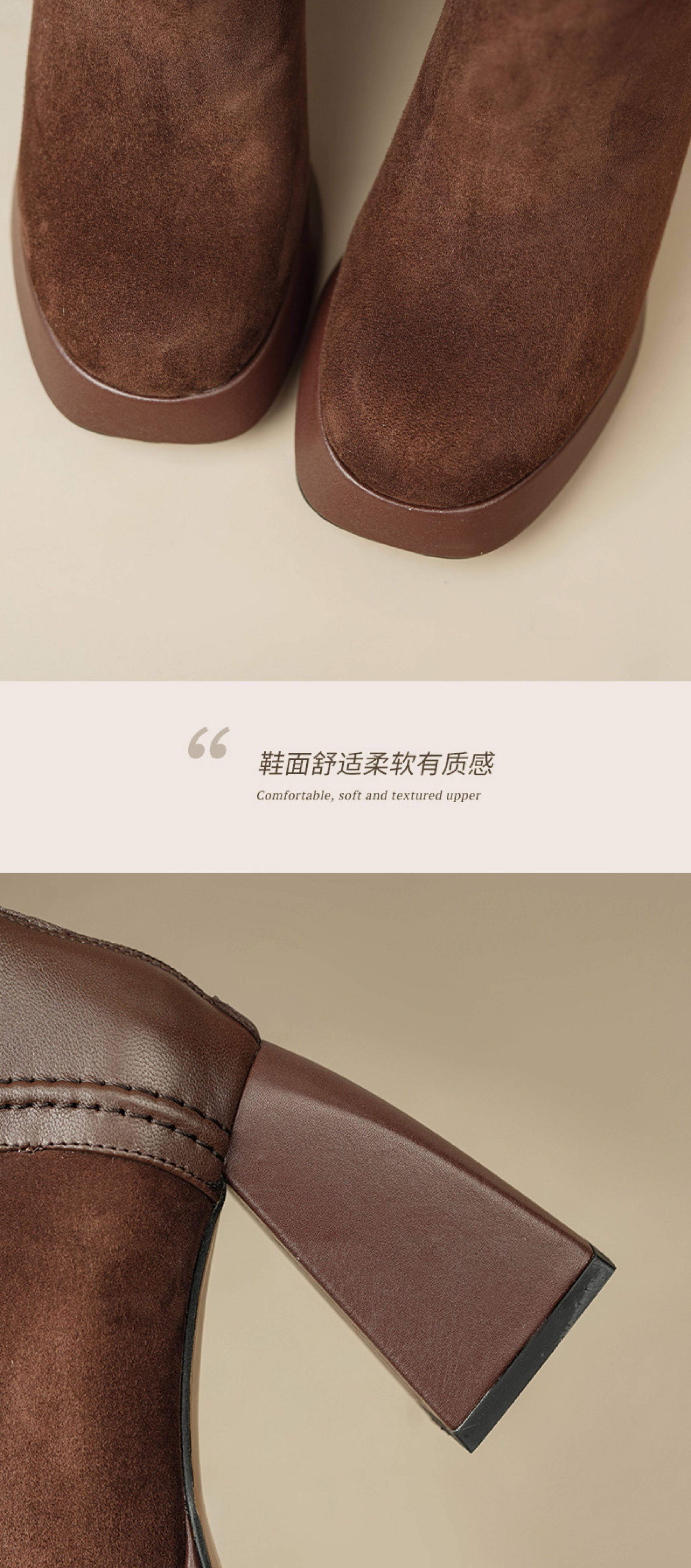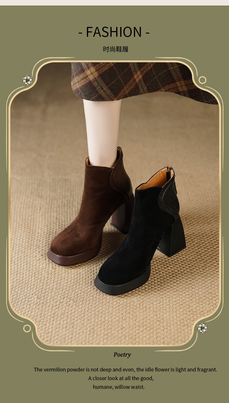 Кофейные высокие короткие сапоги с молнией, ботинки, из натуральной кожи, 9см