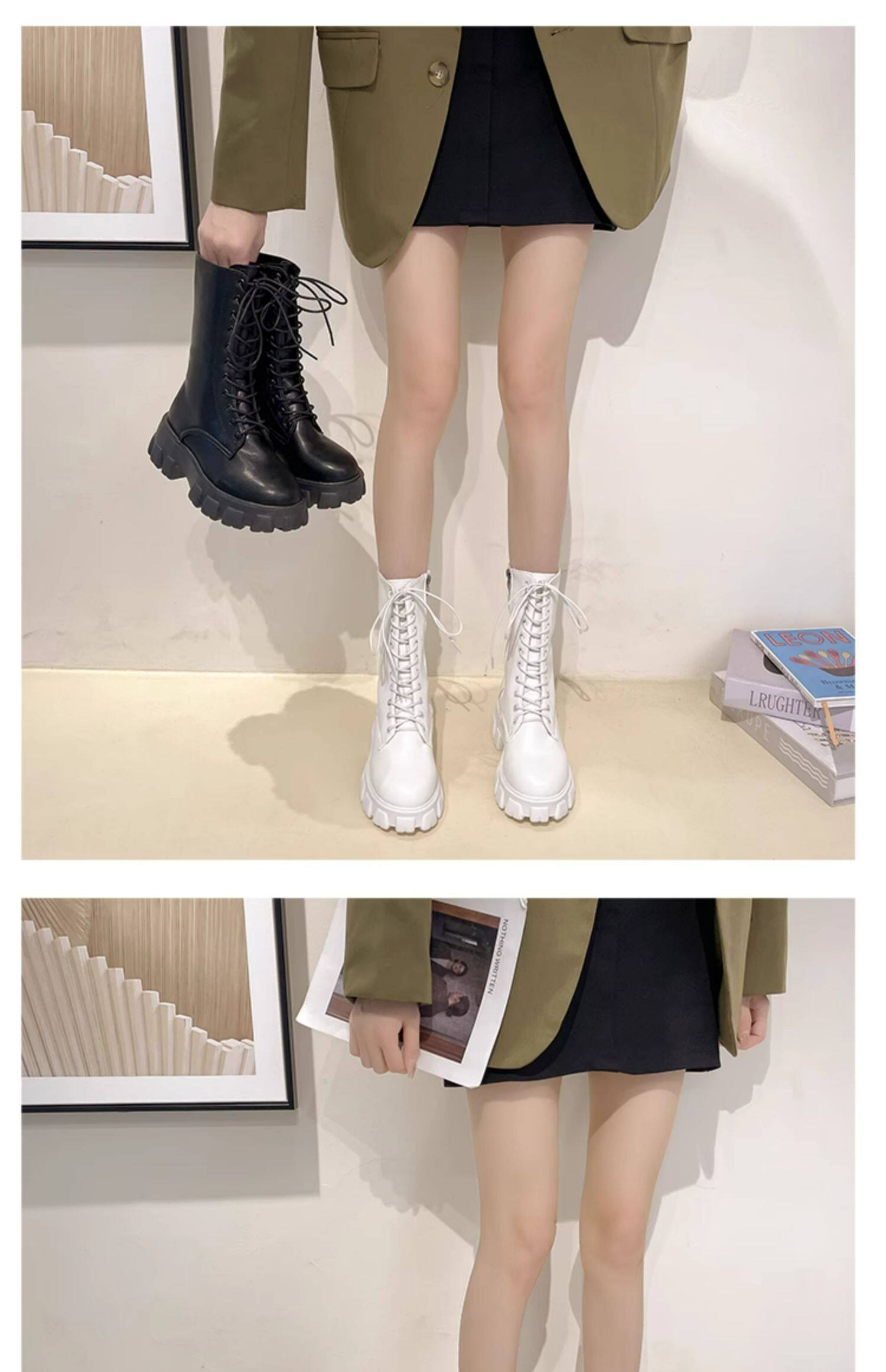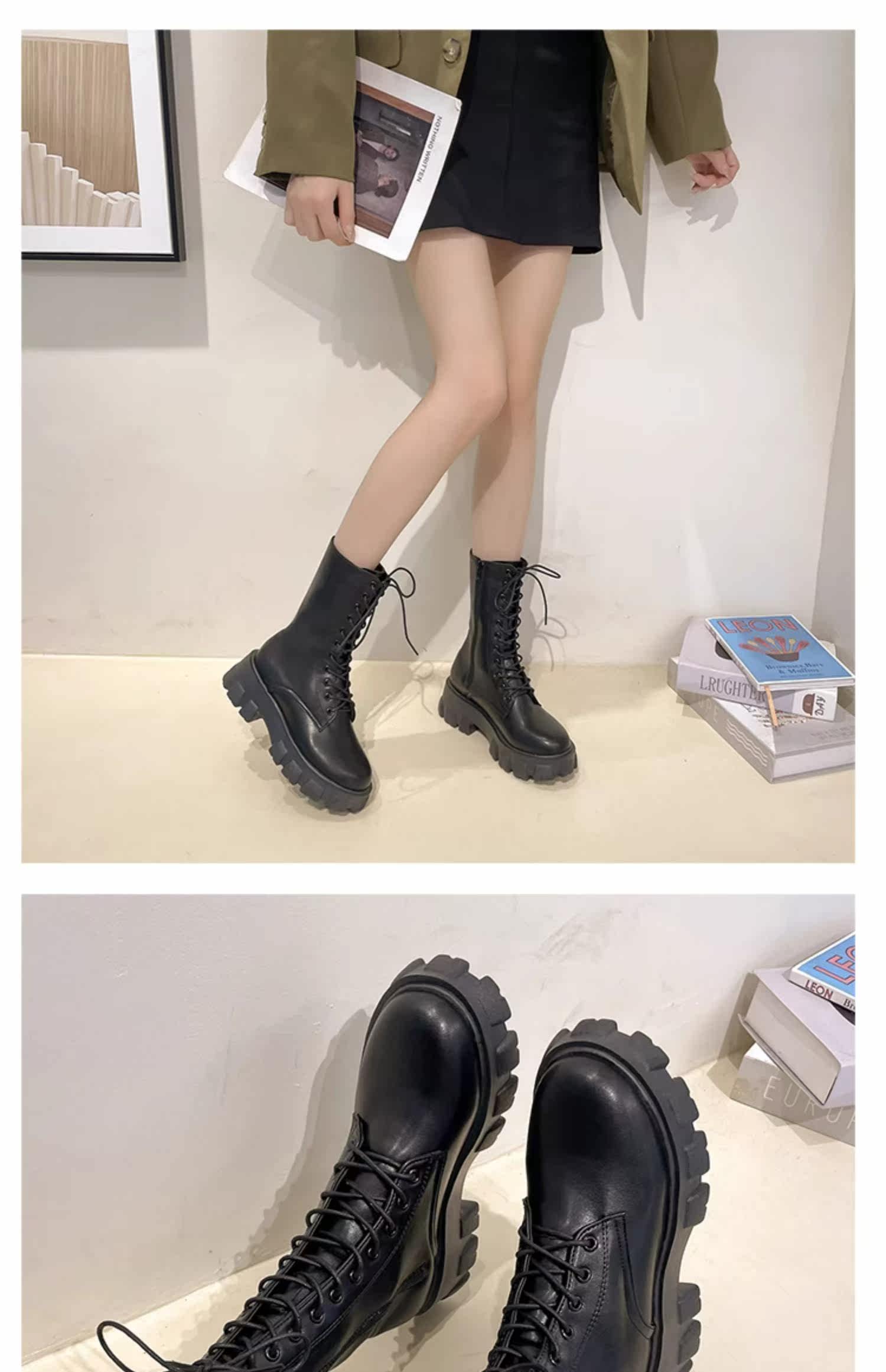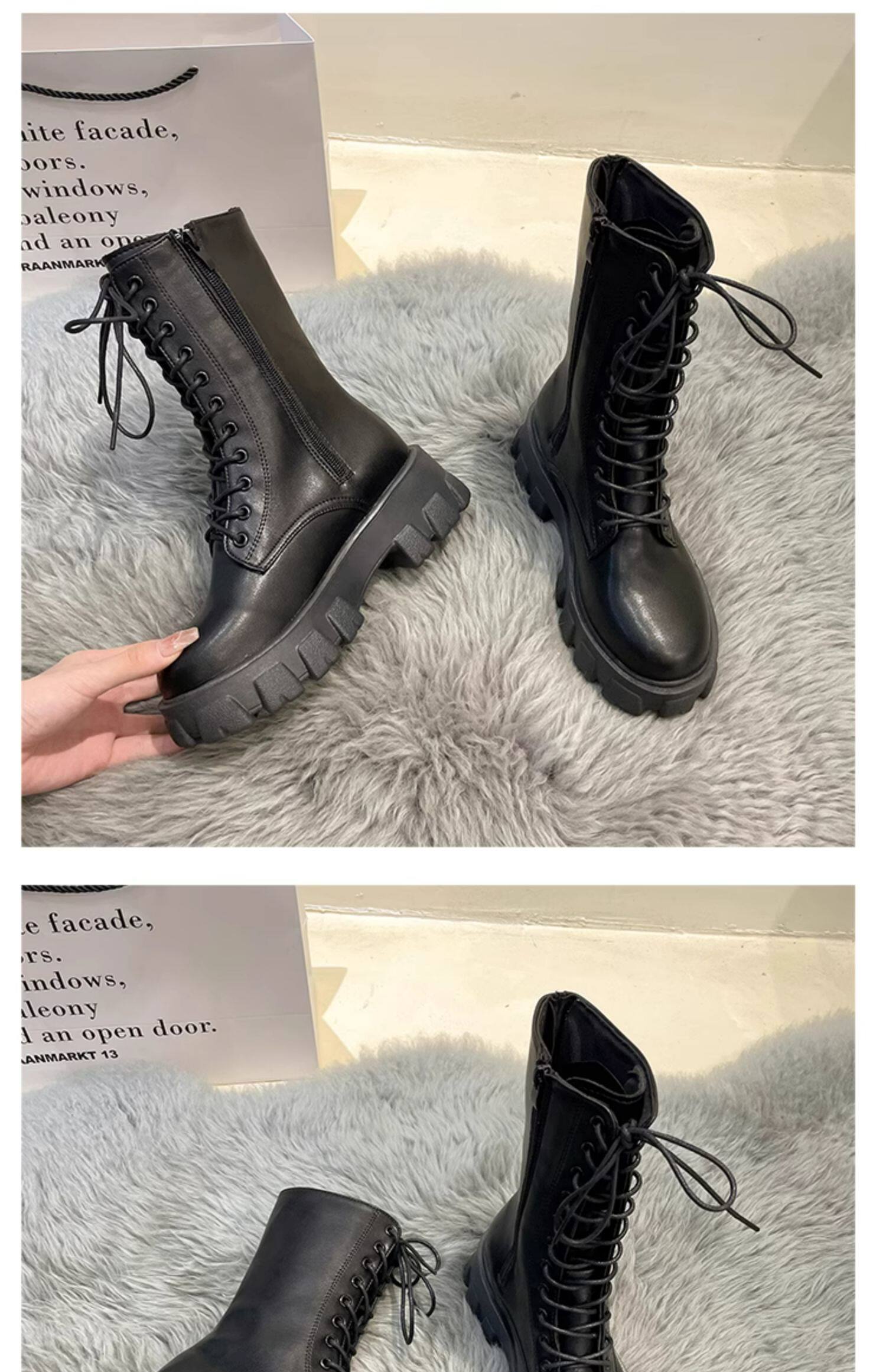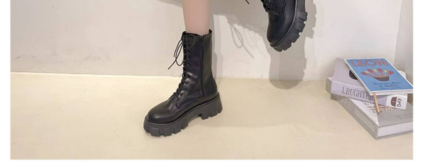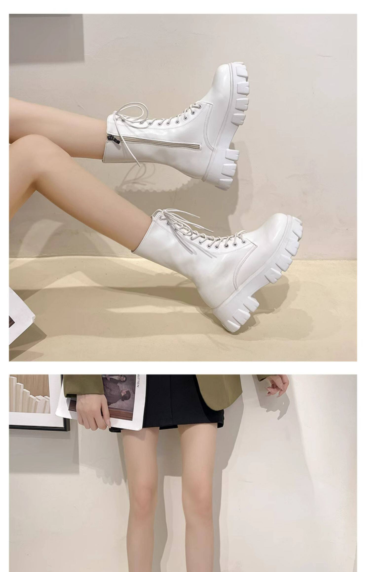 Martens, демисезонные высокие универсальные короткие сапоги на платформе, флисовые ботинки, средней длины
