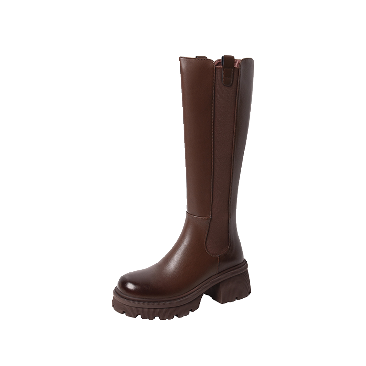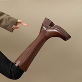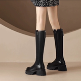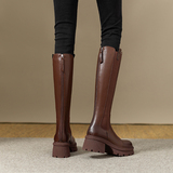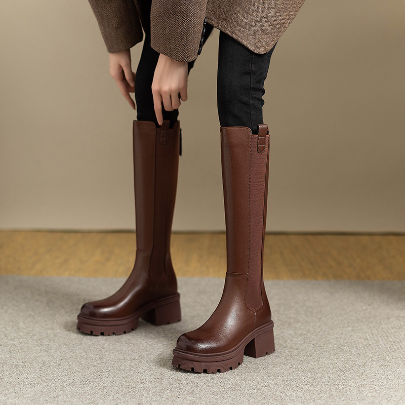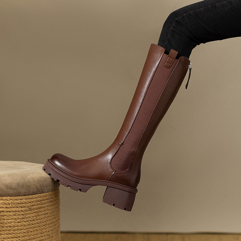 Модные высокие сапоги, ботинки с молнией на платформе, 2023, из натуральной кожи, по фигуре