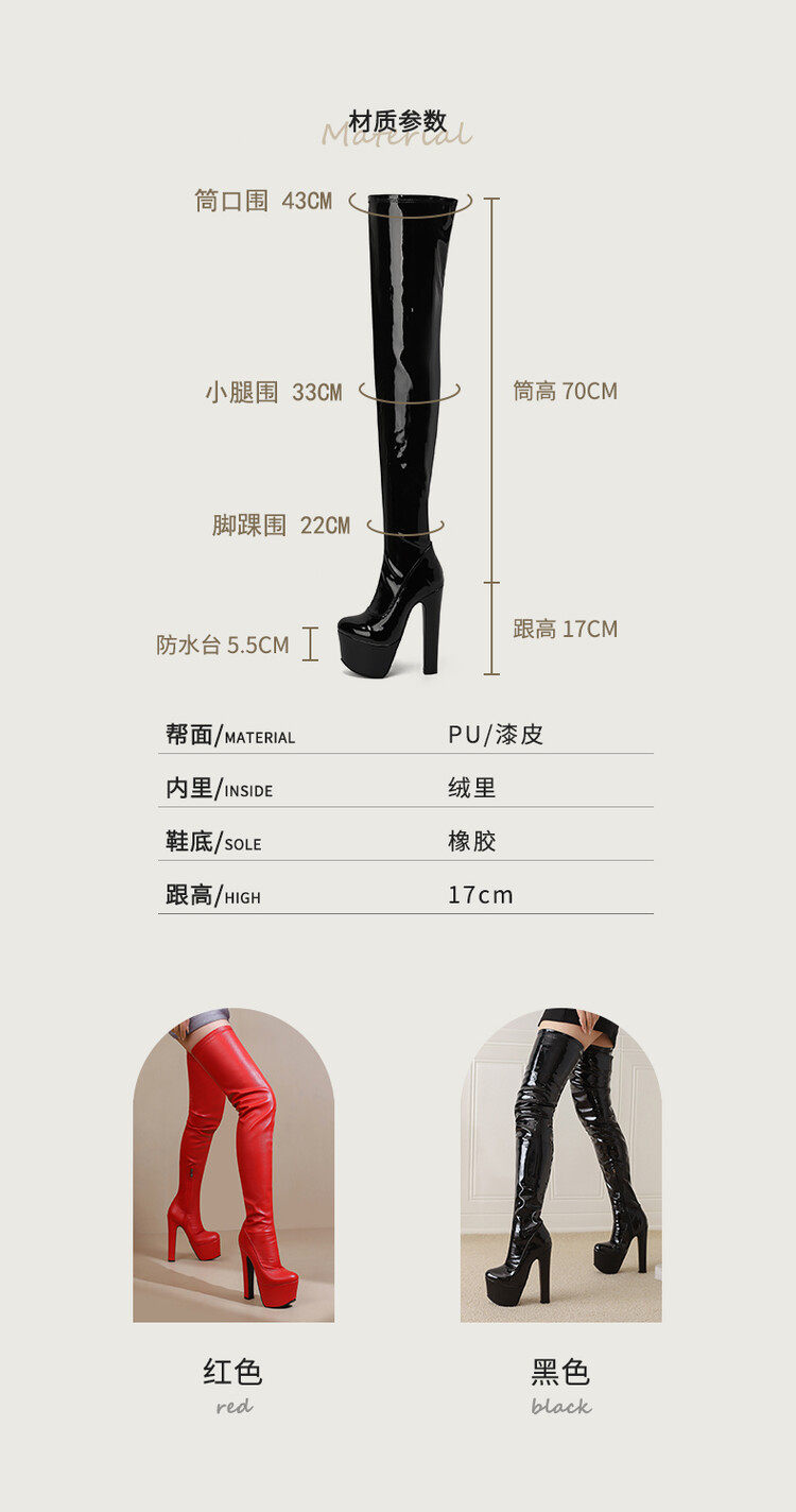 Высокие высокие сапоги, сверхдлинные ботинки, 17см, большой размер