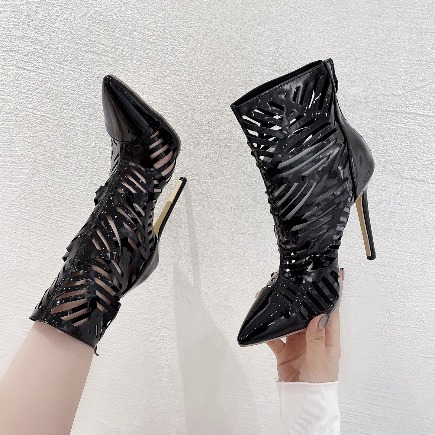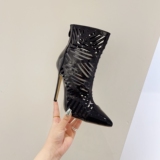 Европейские и американские супер -высокие каблуки на каблуках с черной дикой модой Hollow Pointed High -The Heals Boots Lazada Women Boots Boots