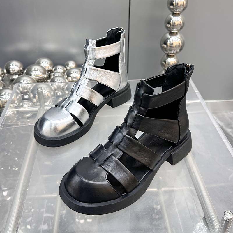 Летние плетеные короткие сапоги, ботинки в английском стиле, европейский стиль, из натуральной кожи, в британском стиле