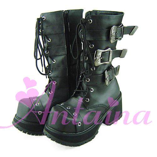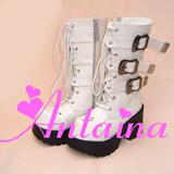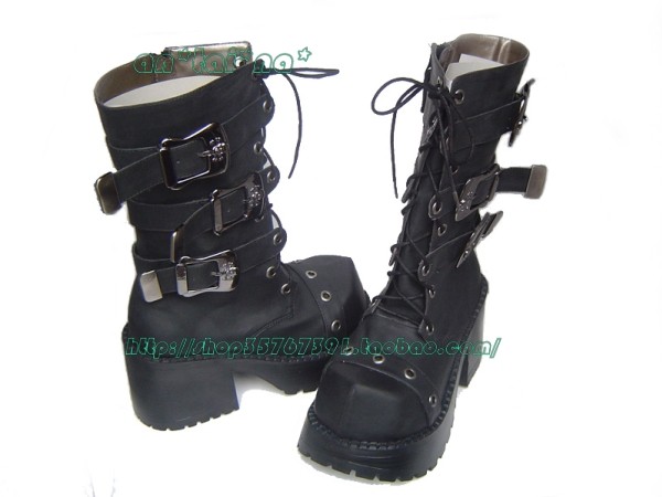 *Tai*na*◣ lolita cos punk японская специальная бриллиантовая голова панк -сапоги 9033 черный