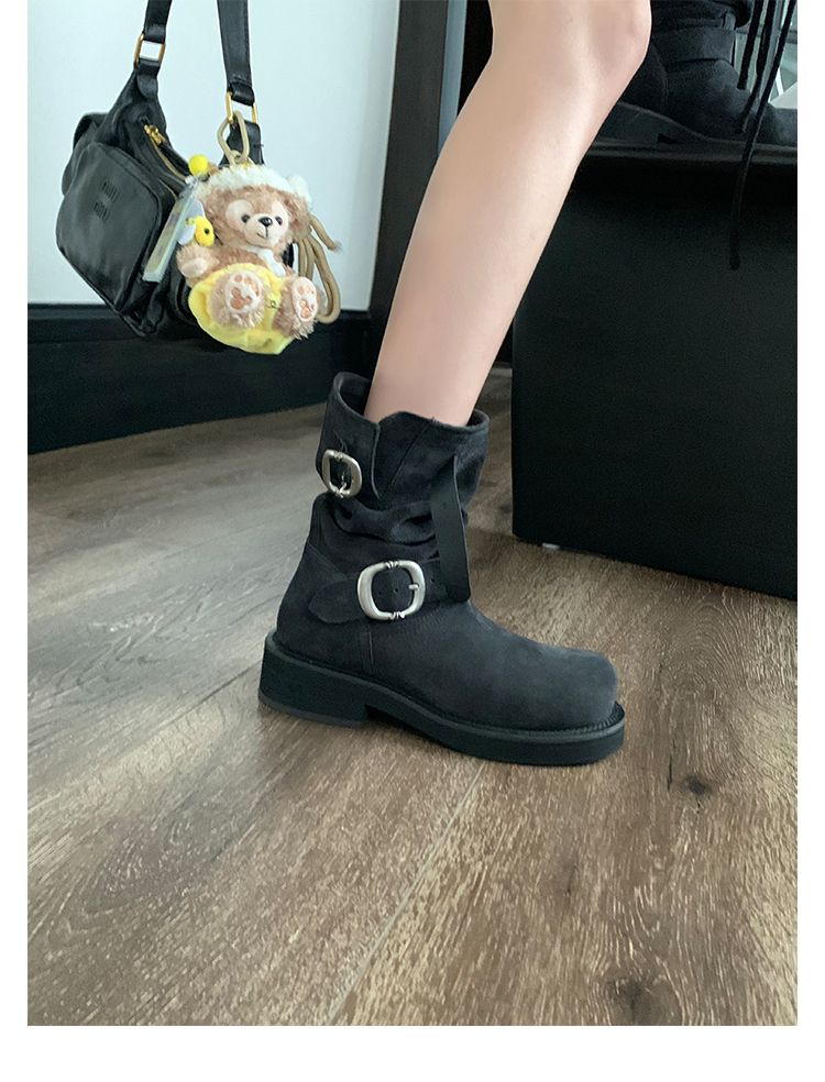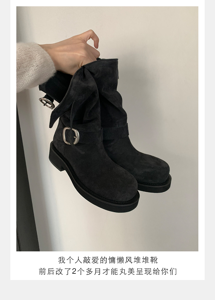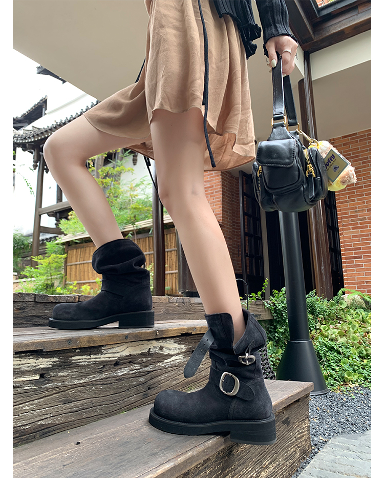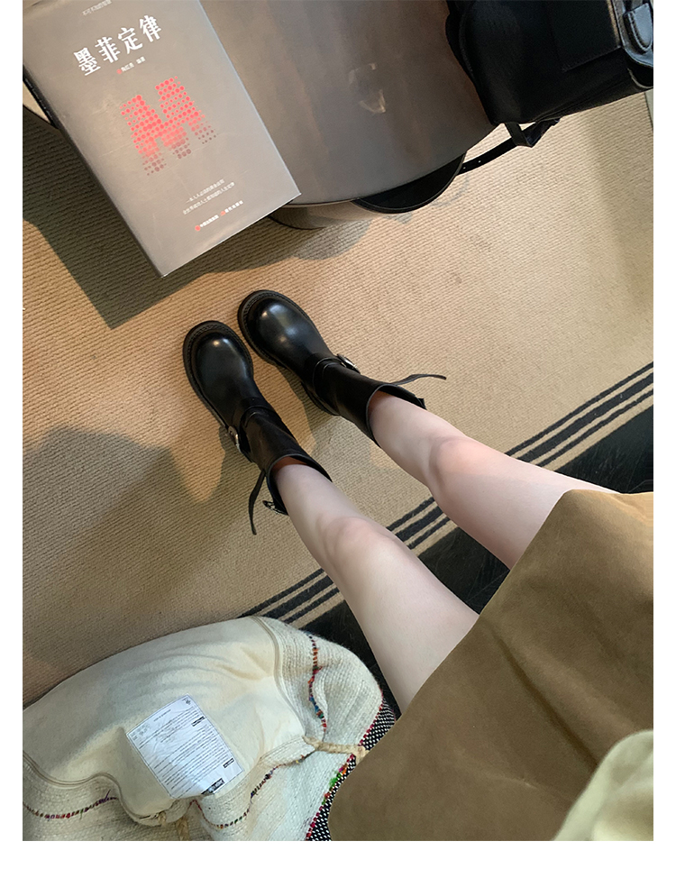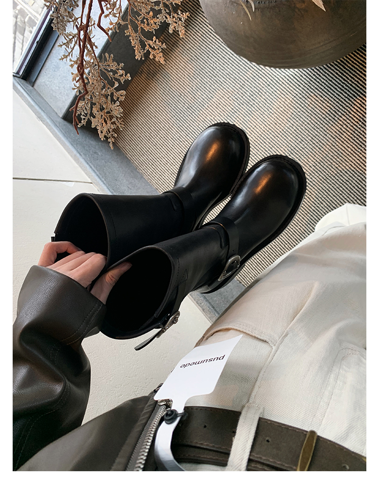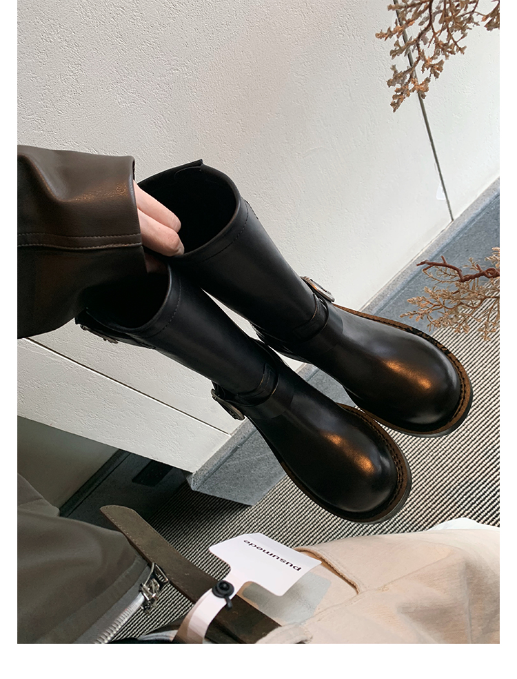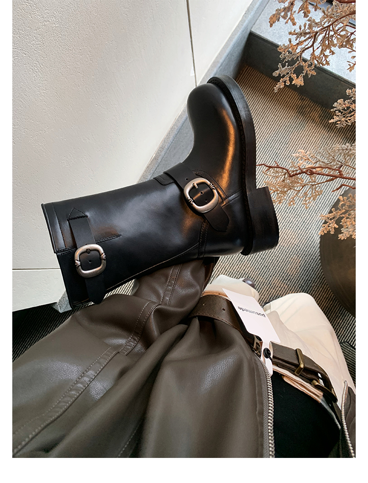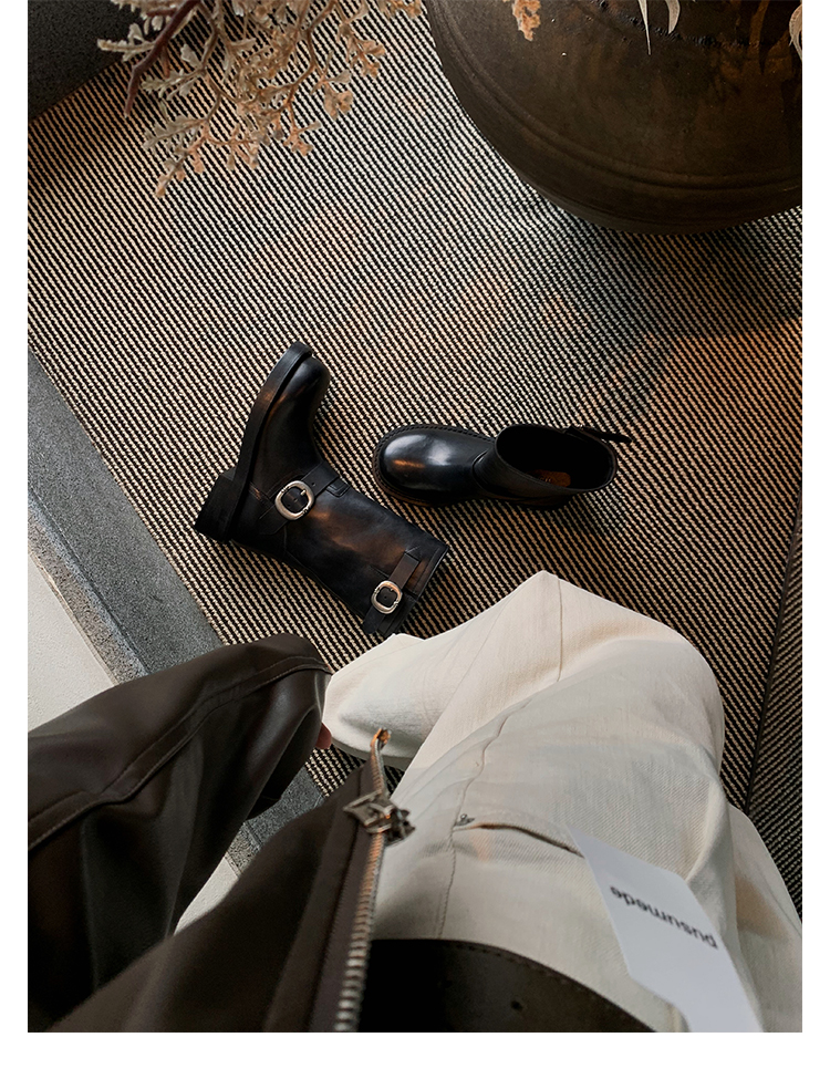 Виноградная мама Studiolee Retro Metal Buckle Round Head Tring Color Martin Boots Кожаная куча ботинок самка