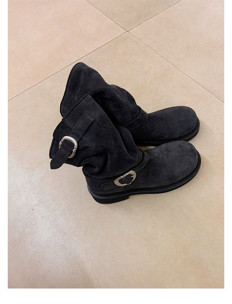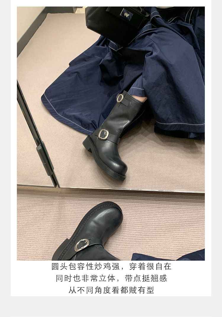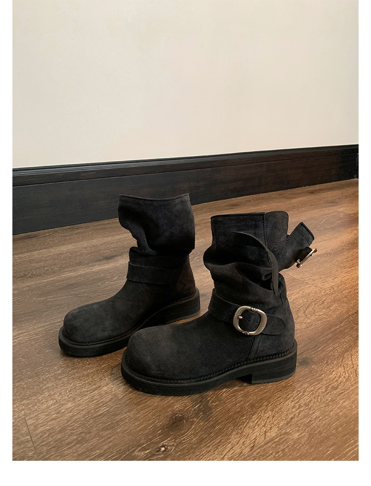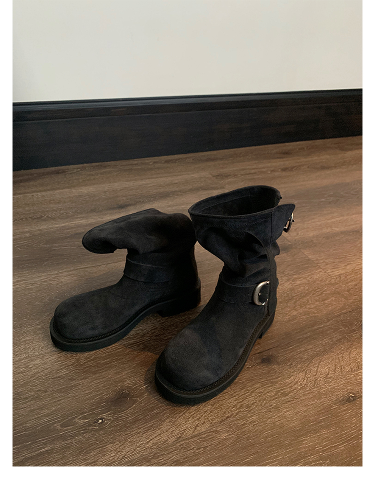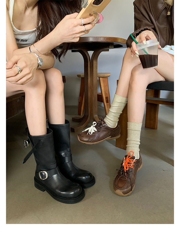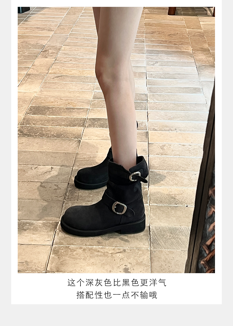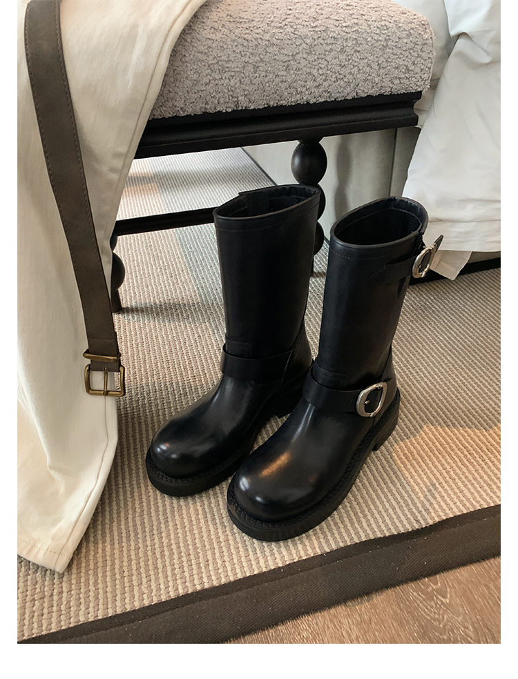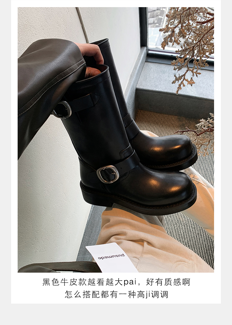 Виноградная мама Studiolee Retro Metal Buckle Round Head Tring Color Martin Boots Кожаная куча ботинок самка