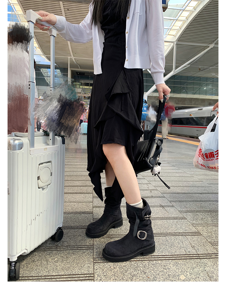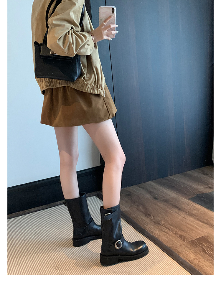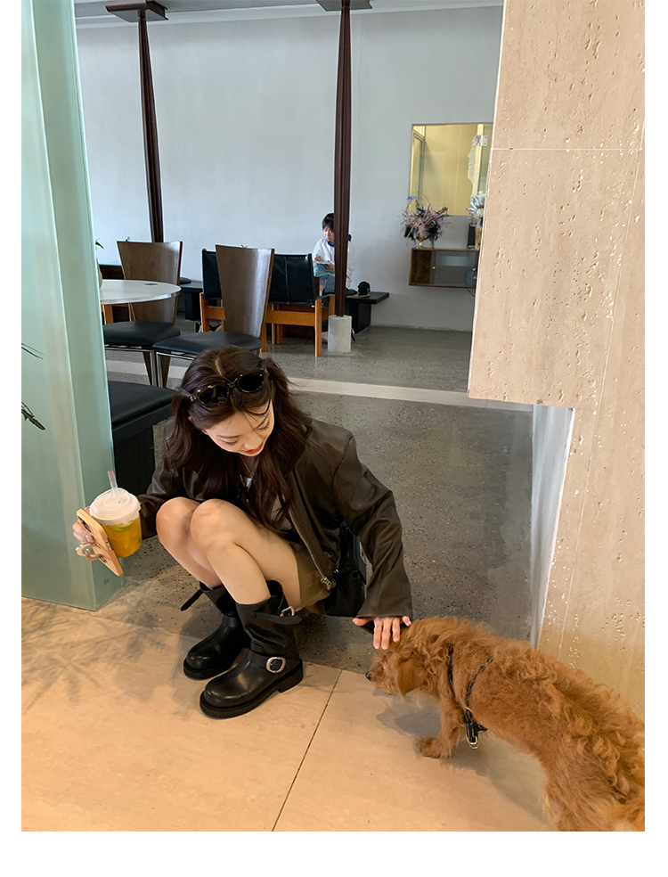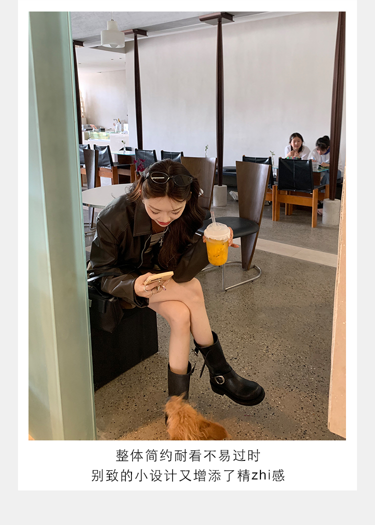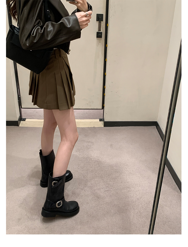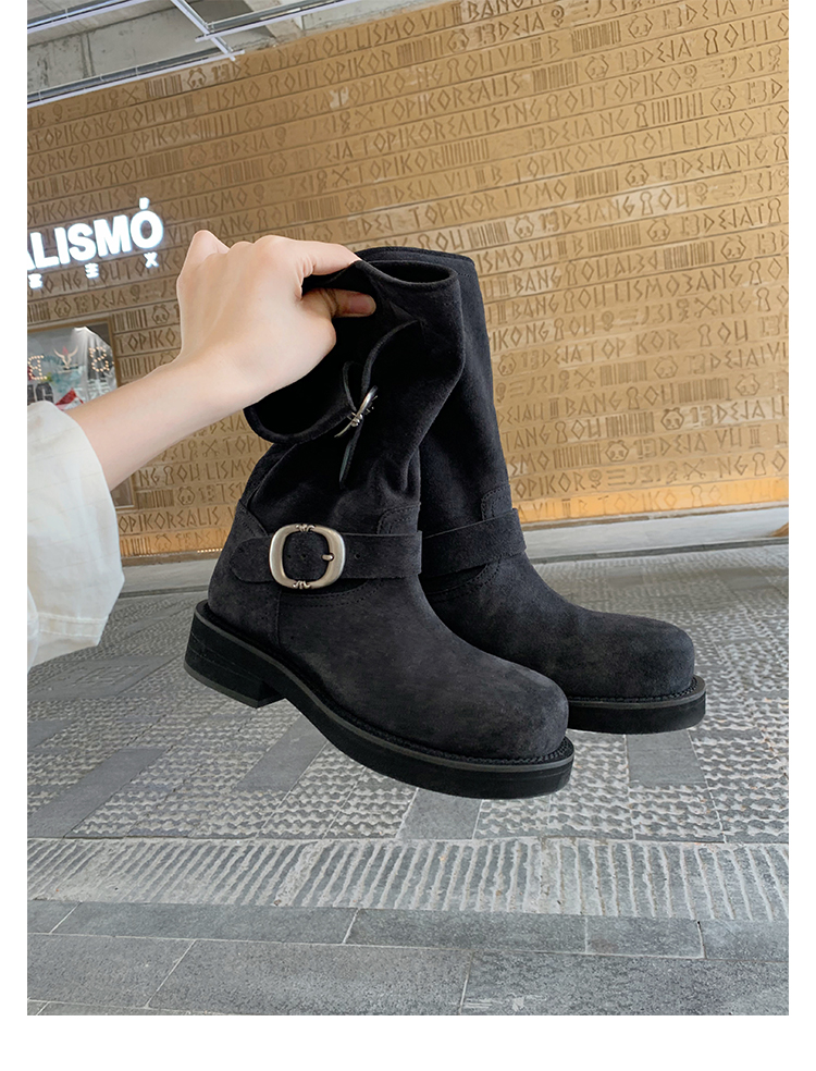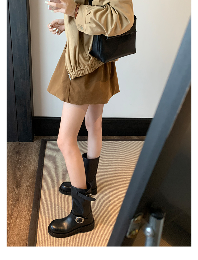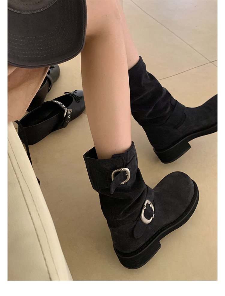 Виноградная мама Studiolee Retro Metal Buckle Round Head Tring Color Martin Boots Кожаная куча ботинок самка