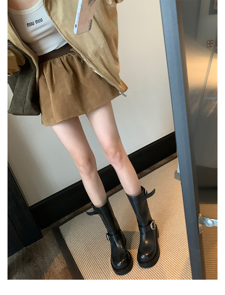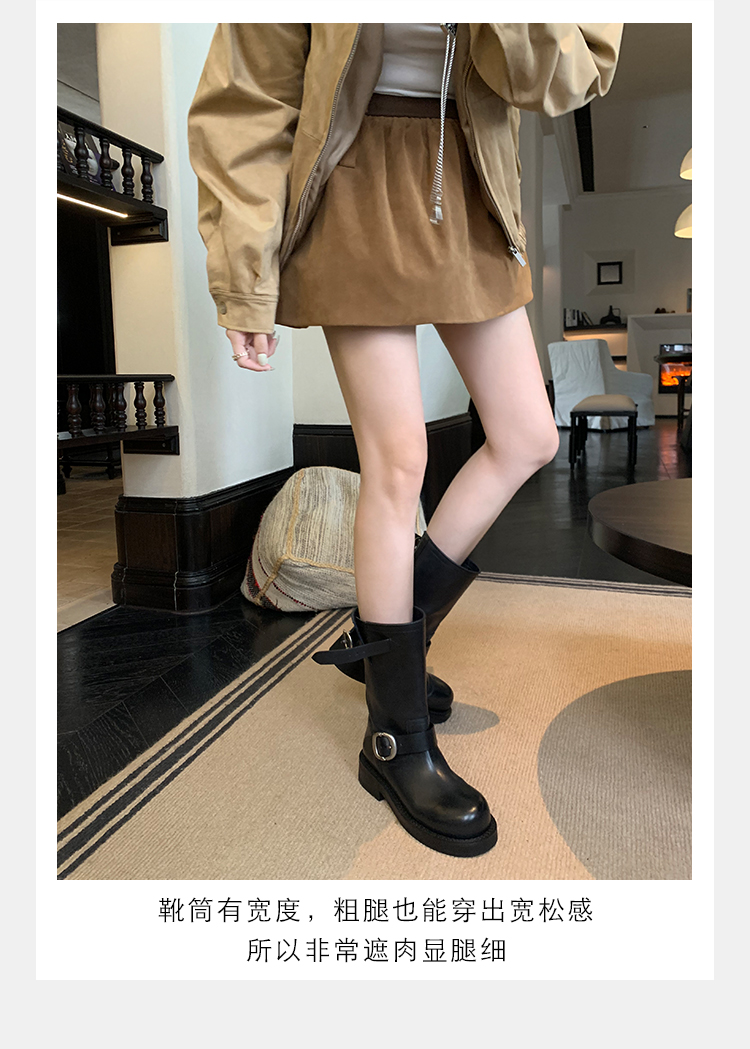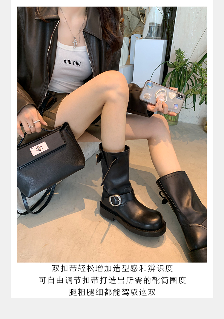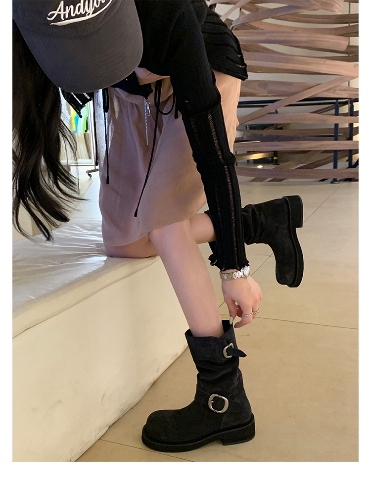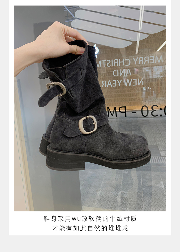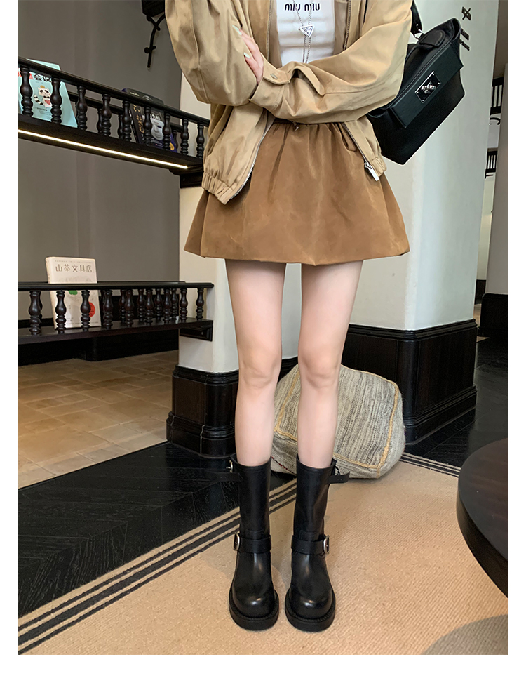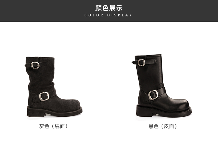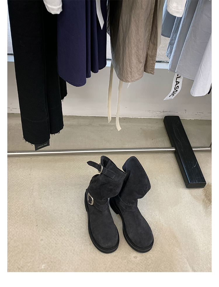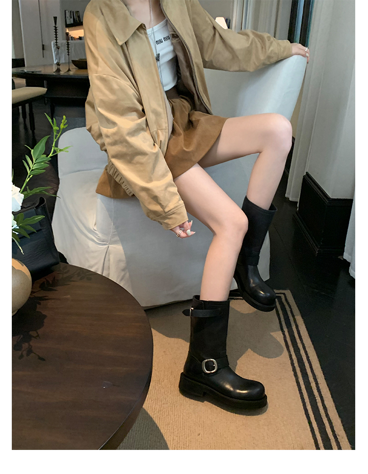 Виноградная мама Studiolee Retro Metal Buckle Round Head Tring Color Martin Boots Кожаная куча ботинок самка