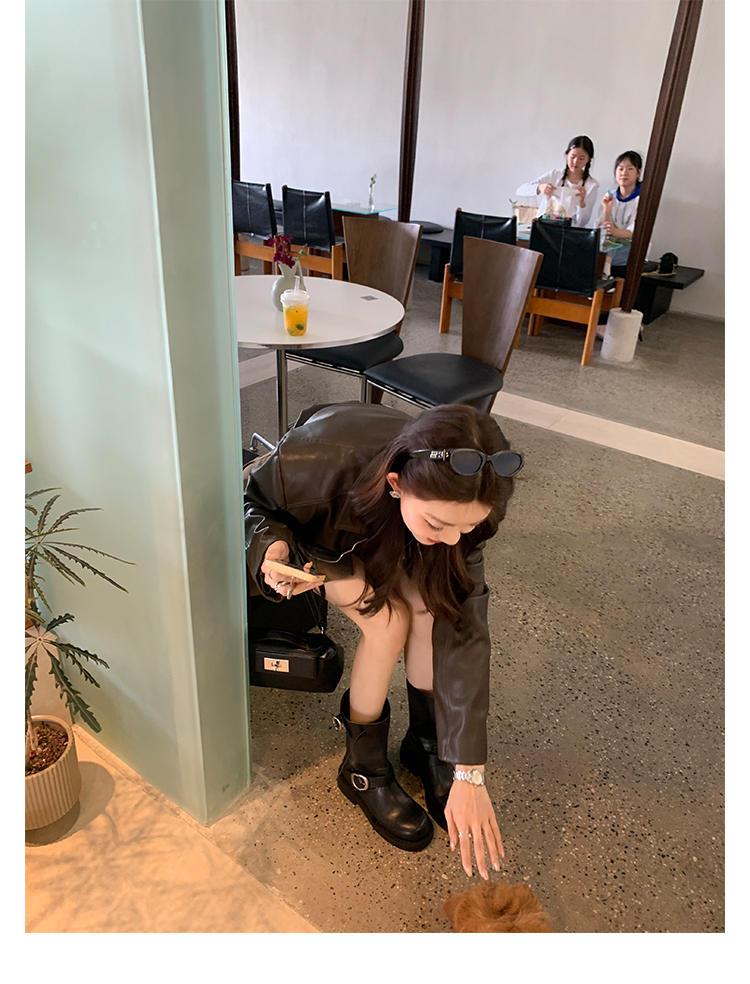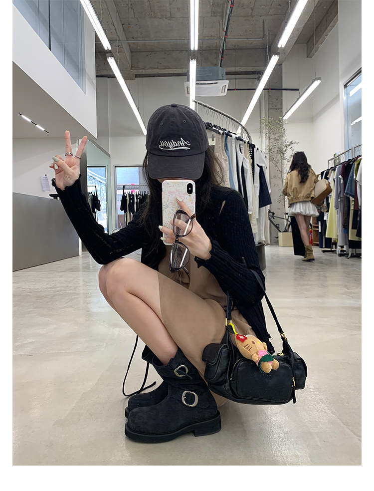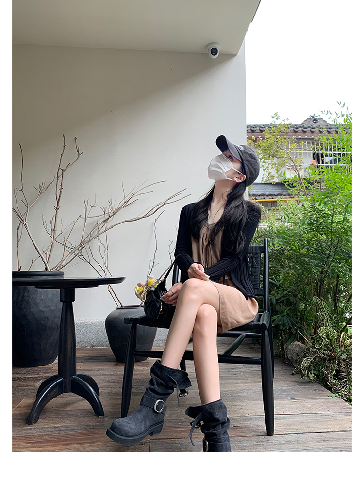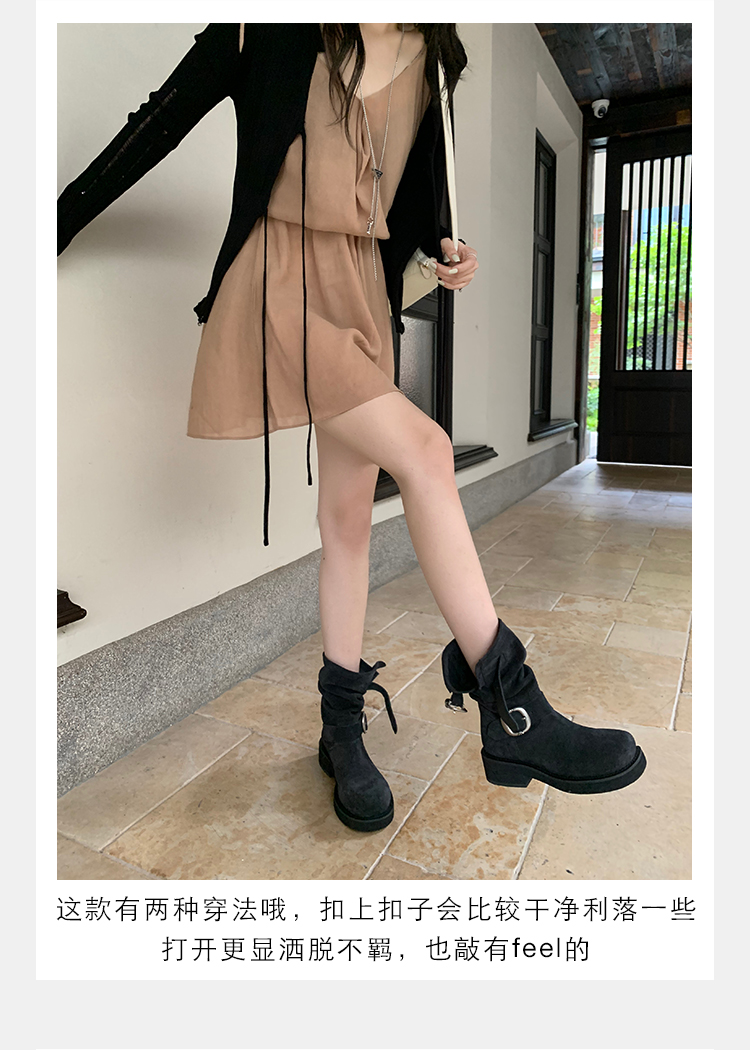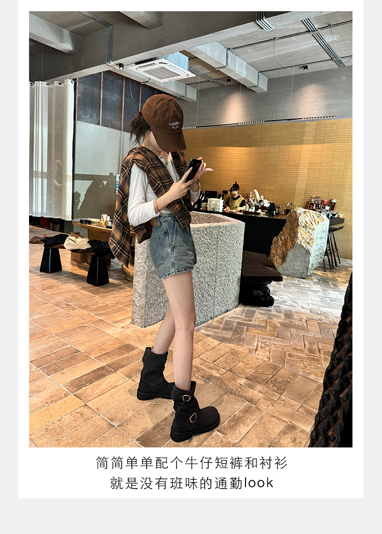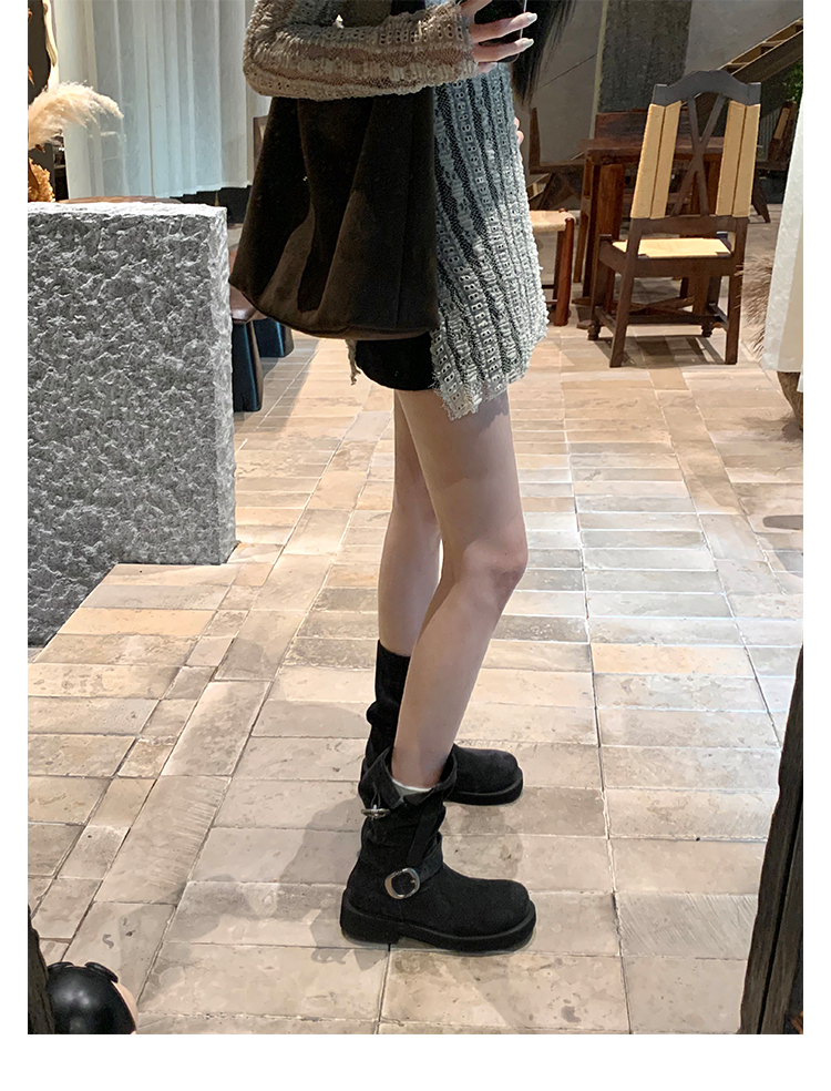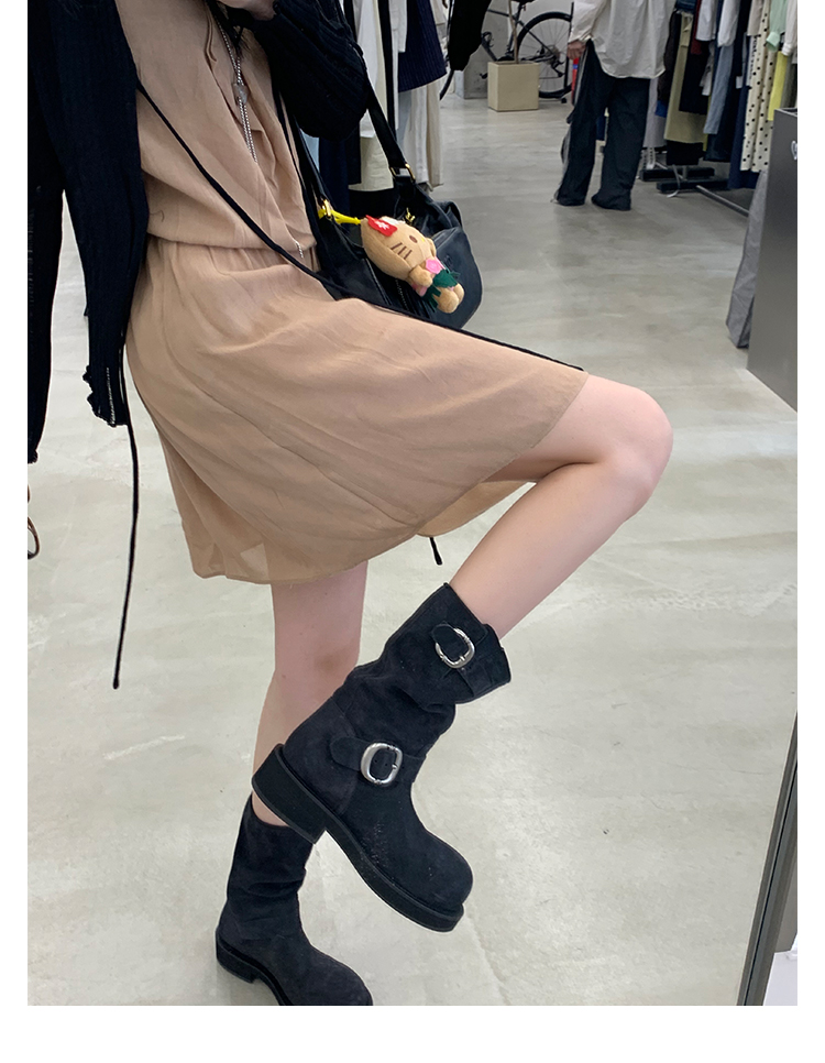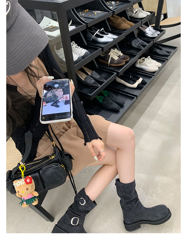 Виноградная мама Studiolee Retro Metal Buckle Round Head Tring Color Martin Boots Кожаная куча ботинок самка