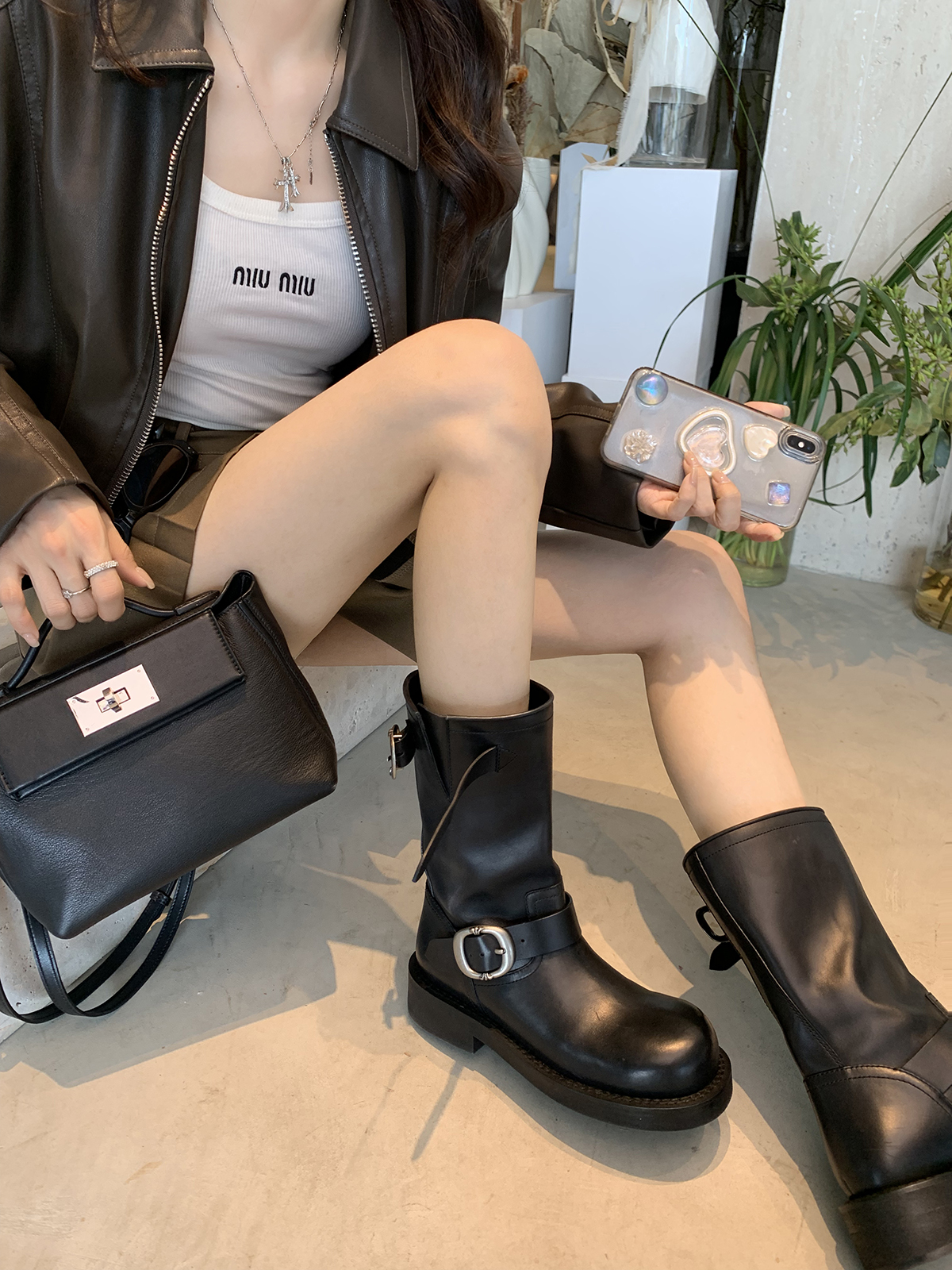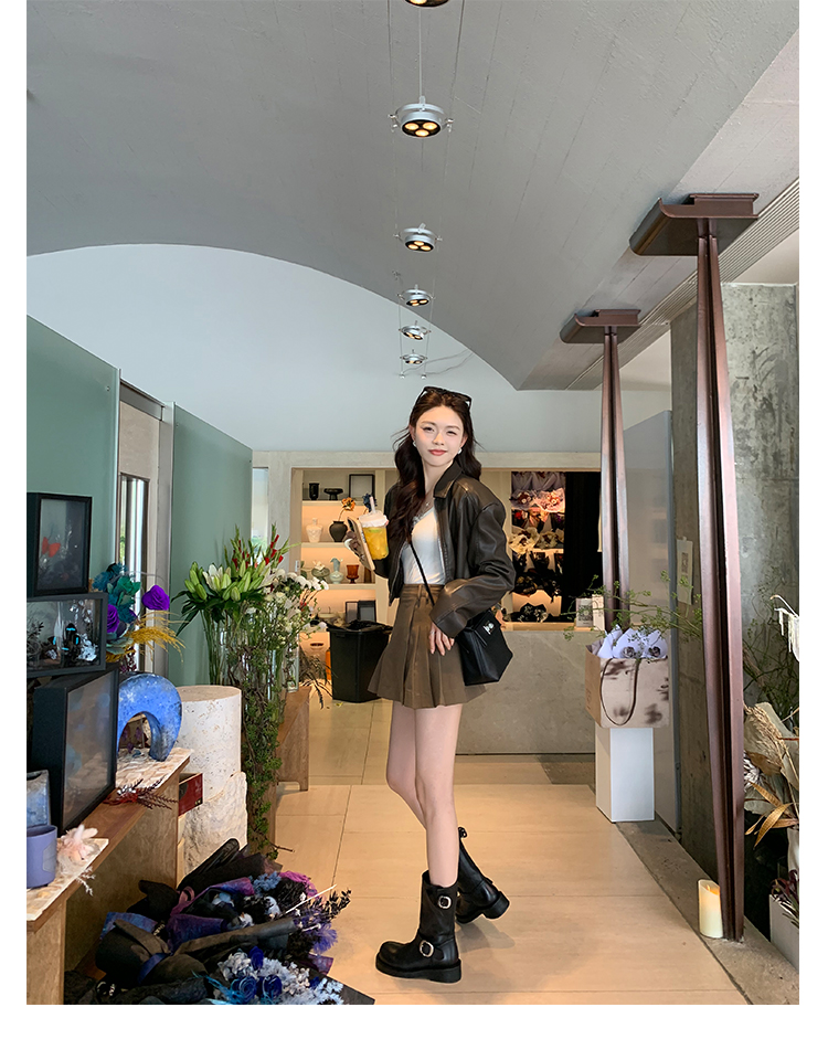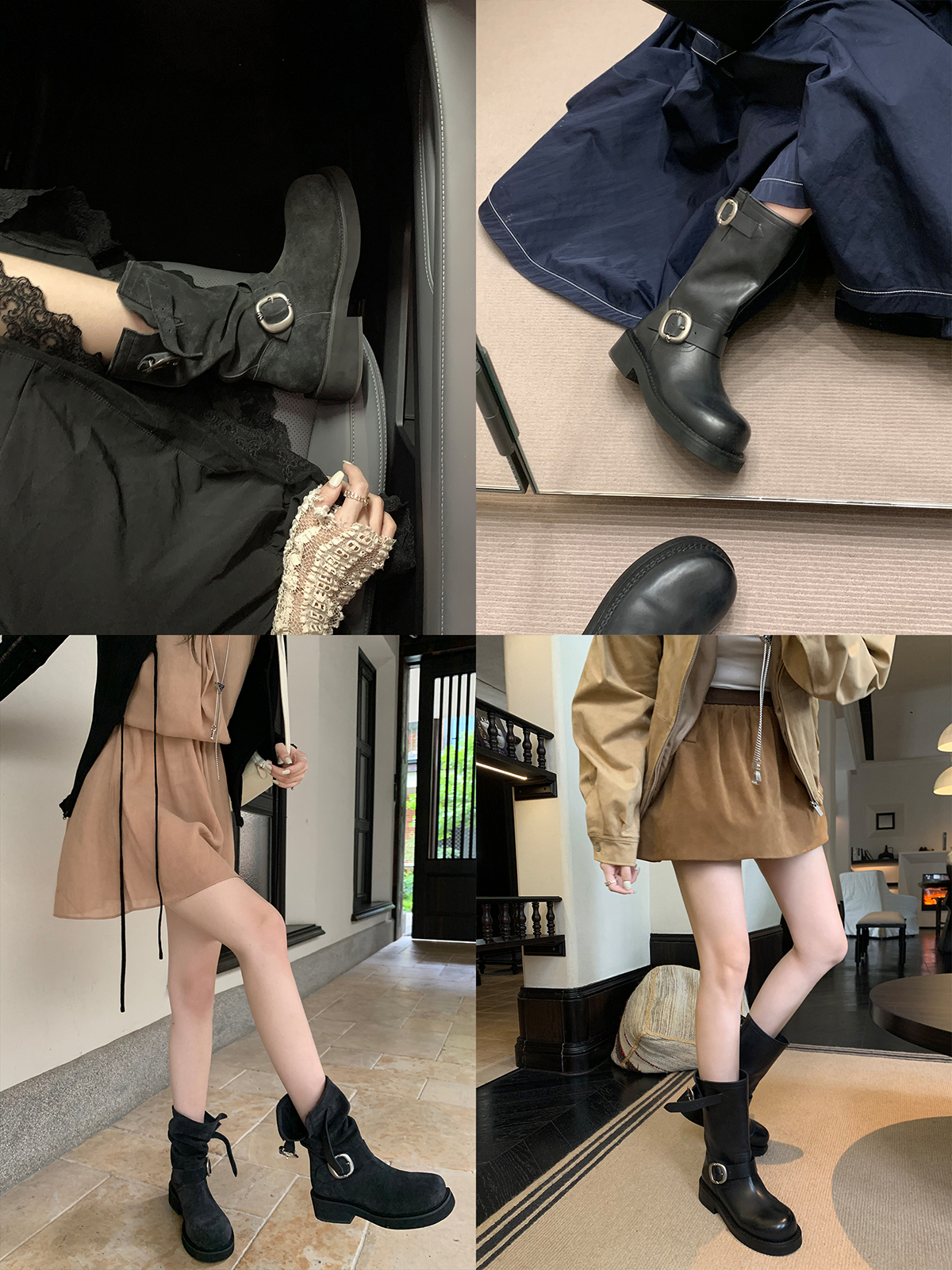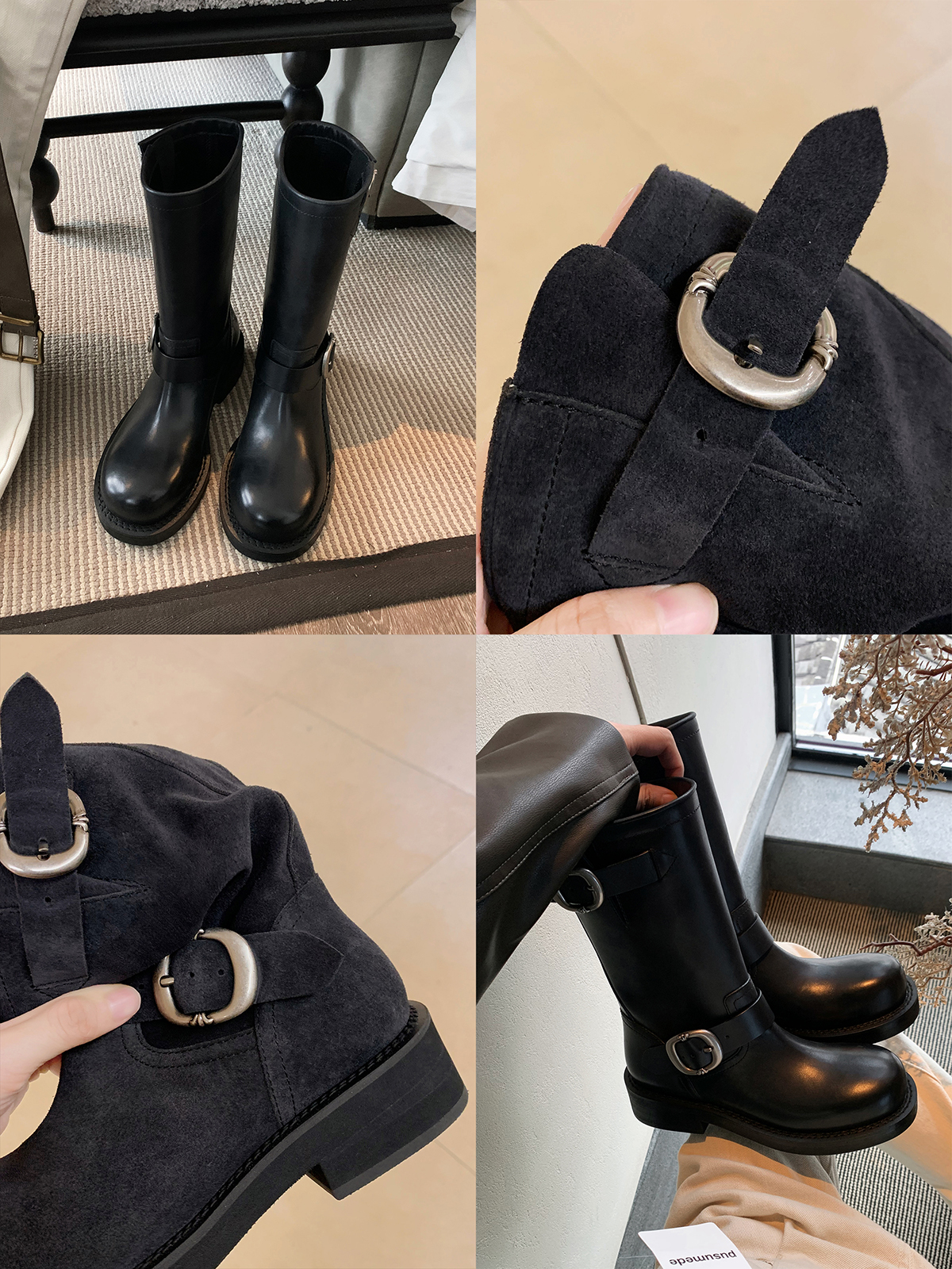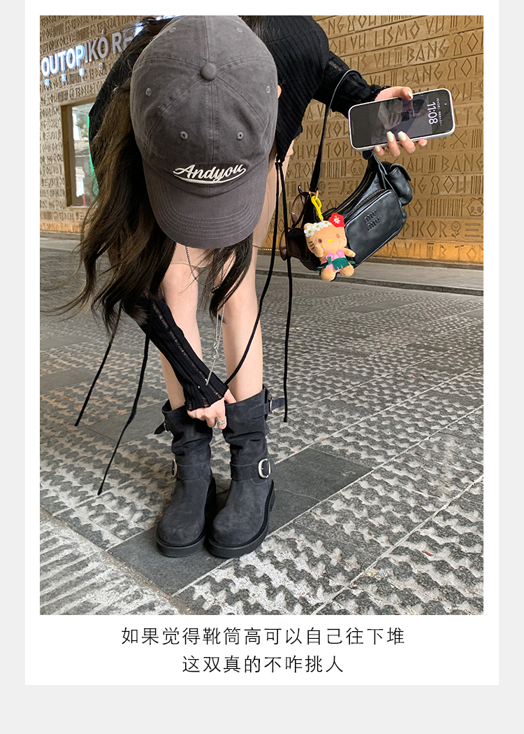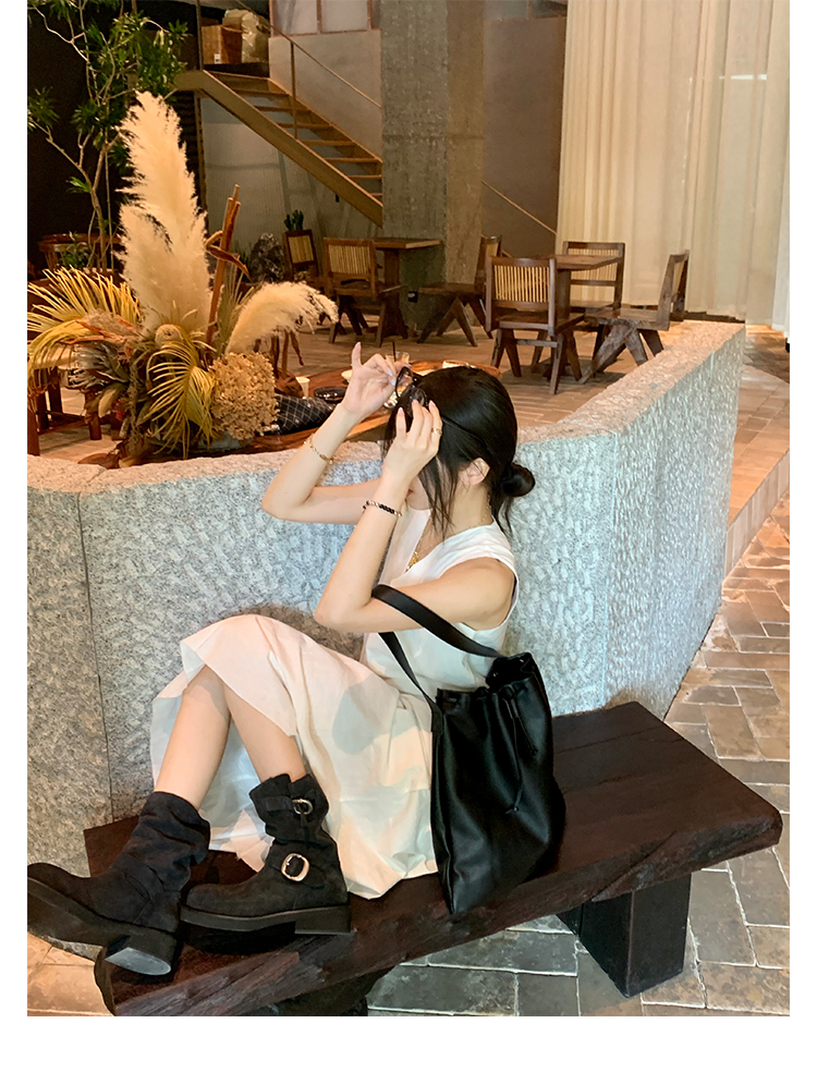 Виноградная мама Studiolee Retro Metal Buckle Round Head Tring Color Martin Boots Кожаная куча ботинок самка