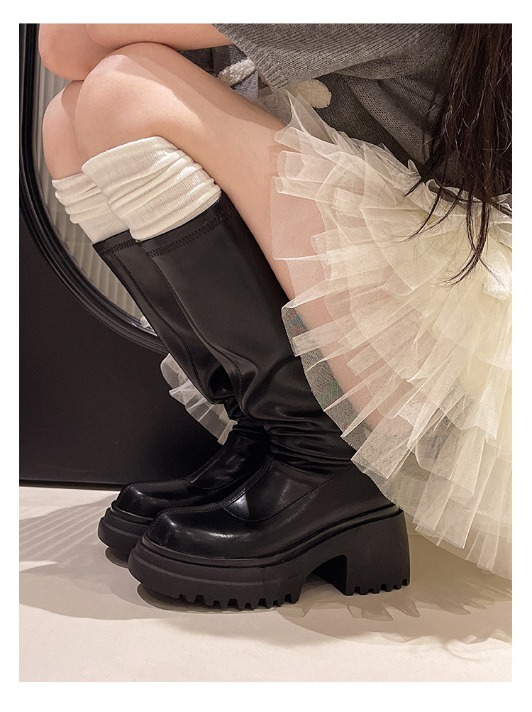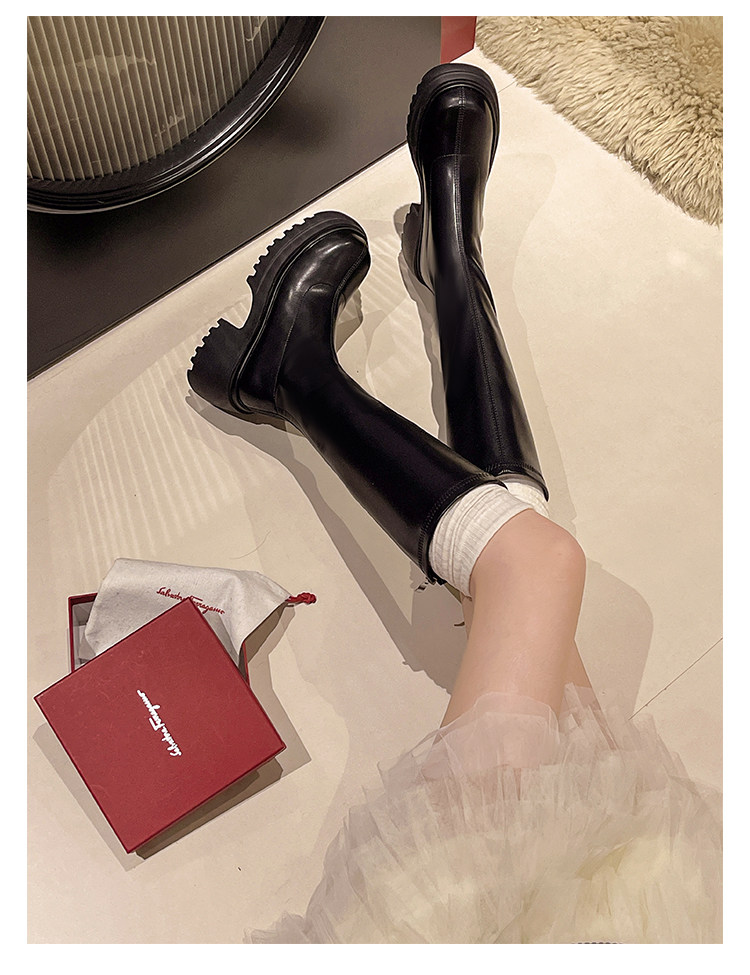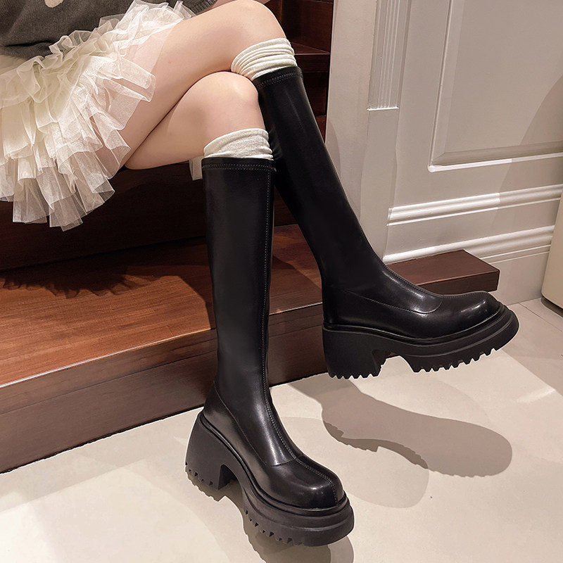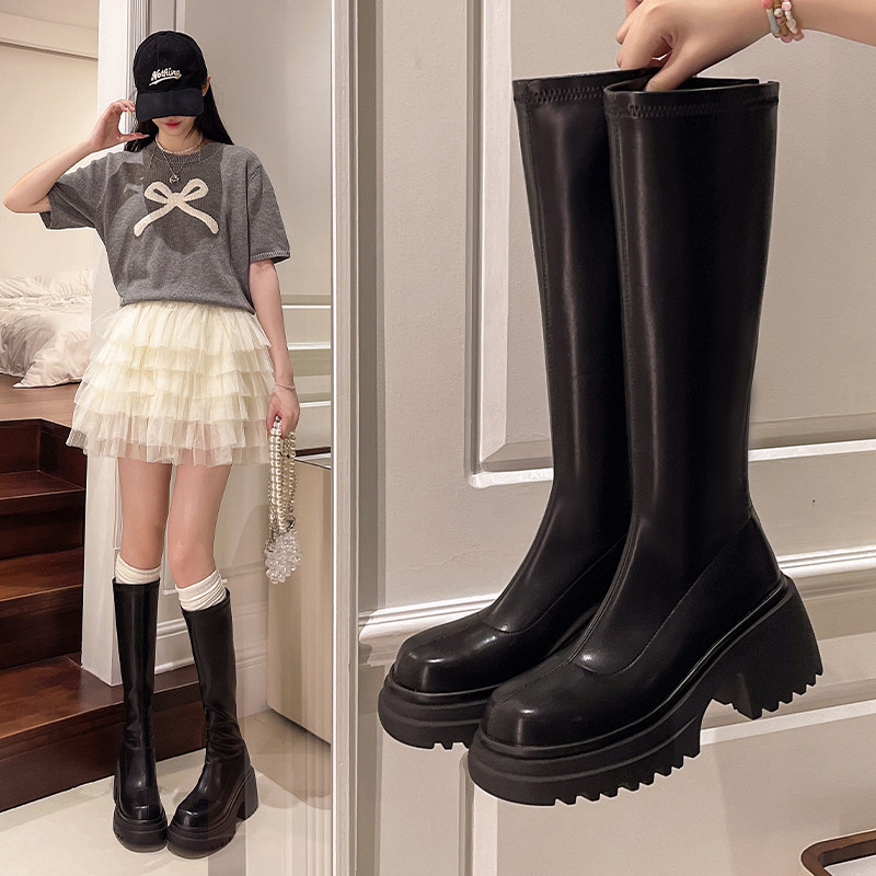 Эластичные ботинки, высокие сапоги, по фигуре, осенние, тренд сезона, подходит для подростков