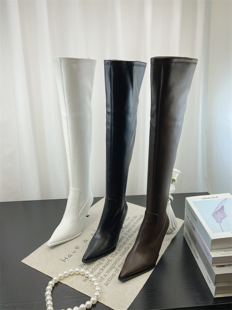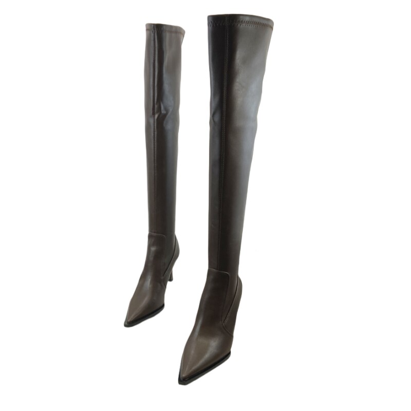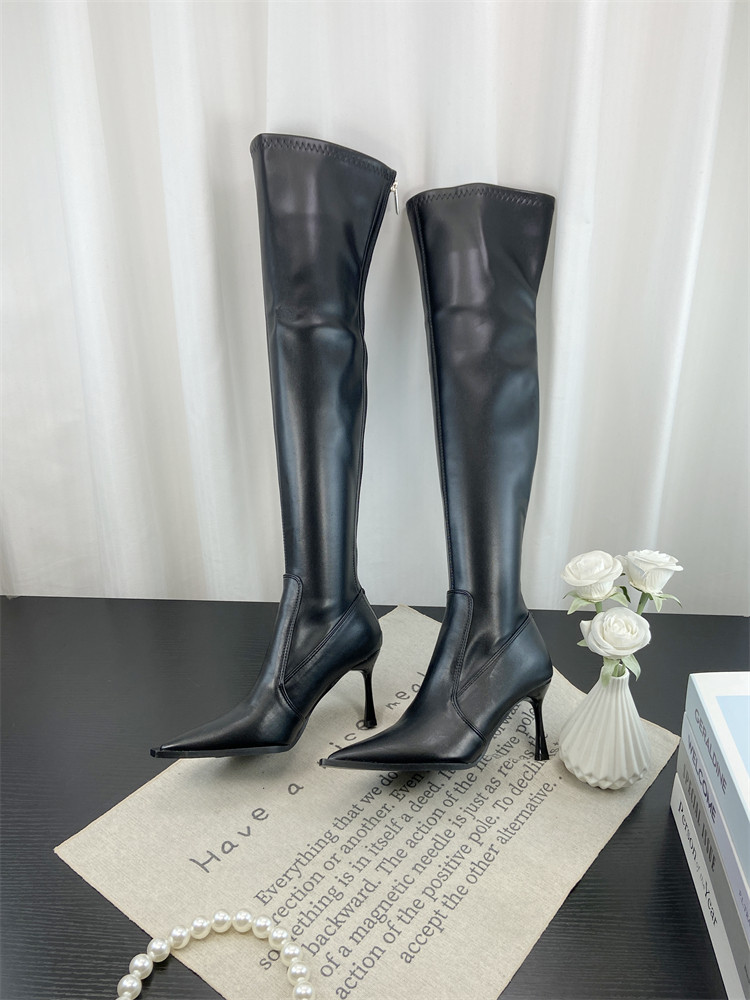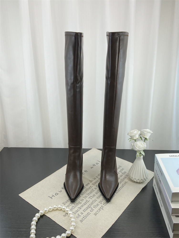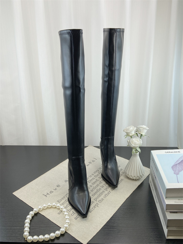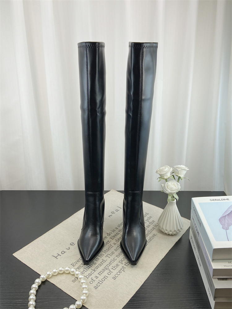 Модные универсальные высокие высокие сапоги с заостренным носом, европейский стиль, по фигуре