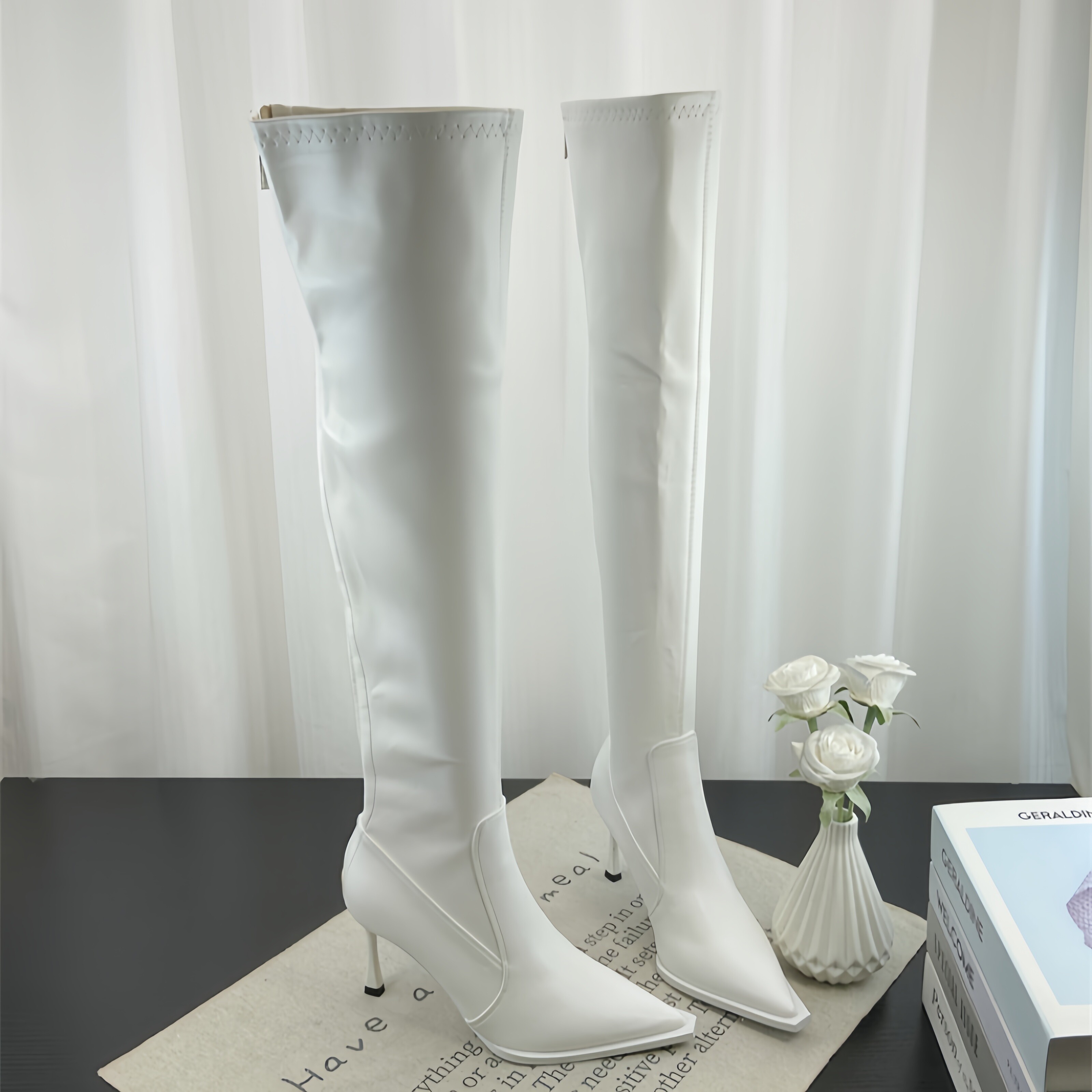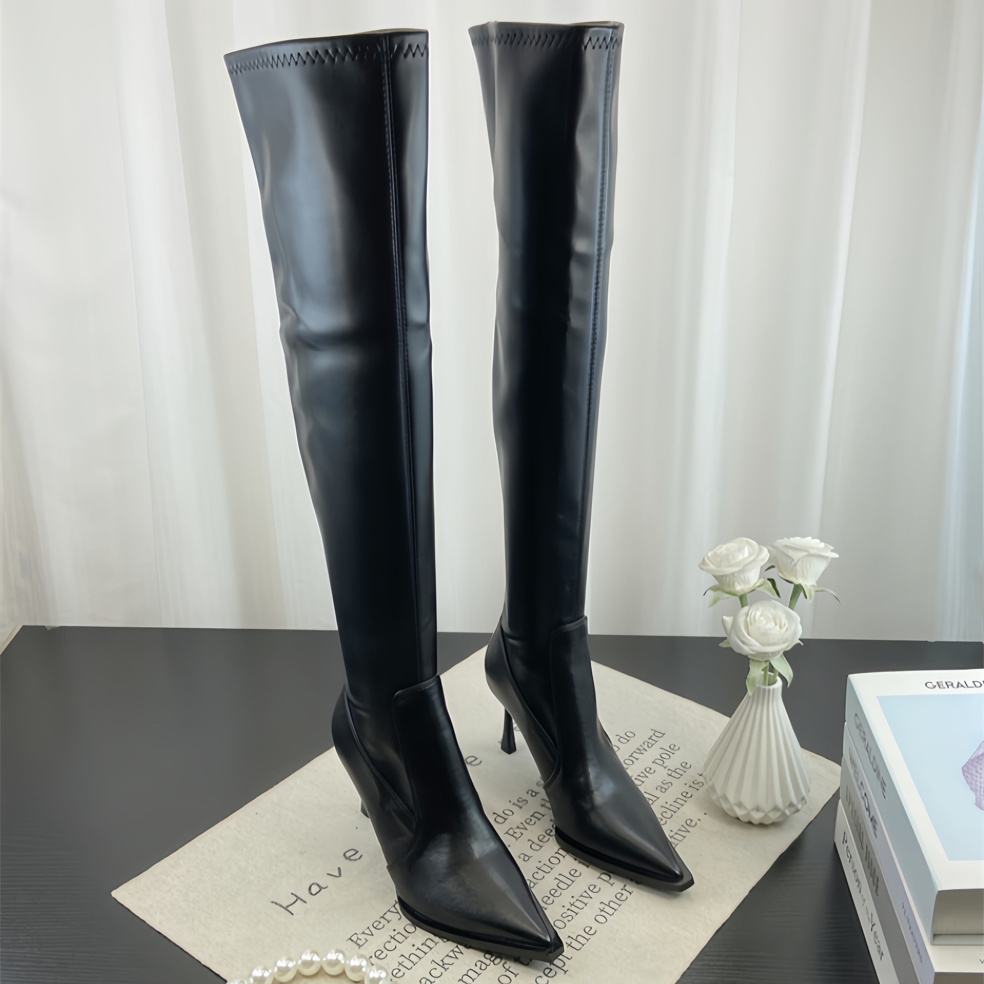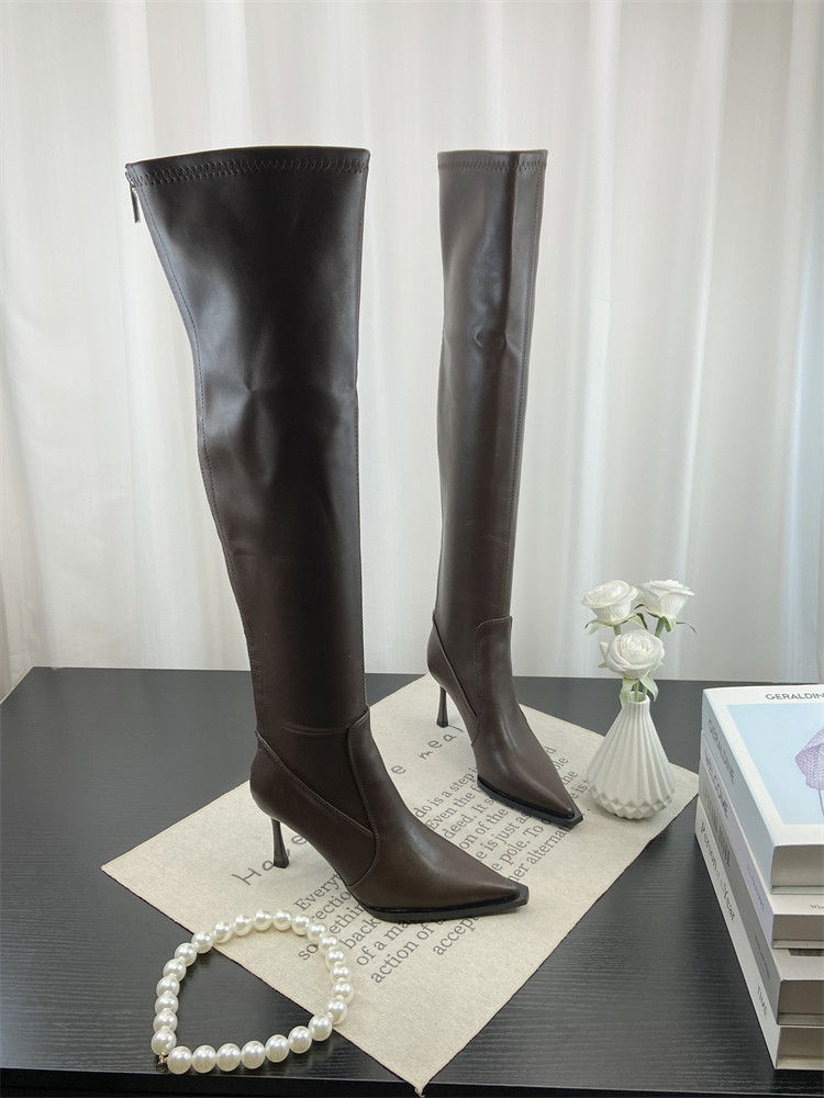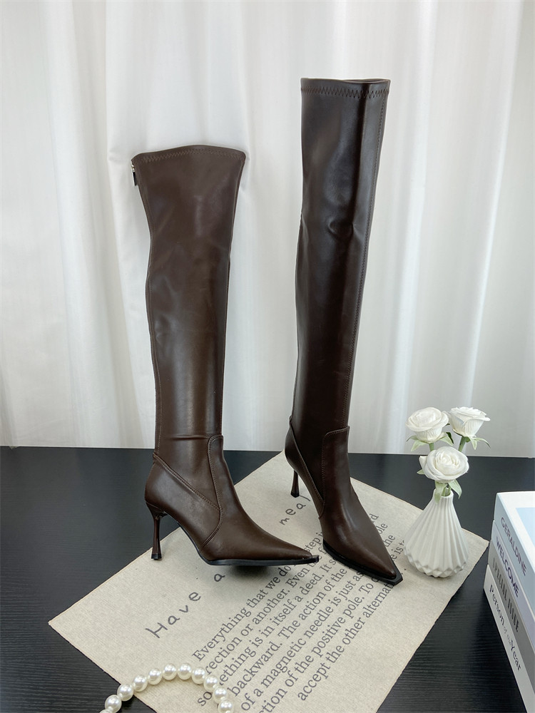 Модные универсальные высокие высокие сапоги с заостренным носом, европейский стиль, по фигуре
