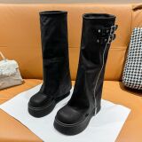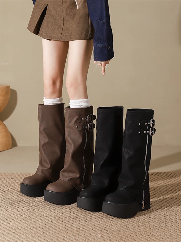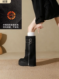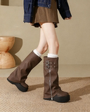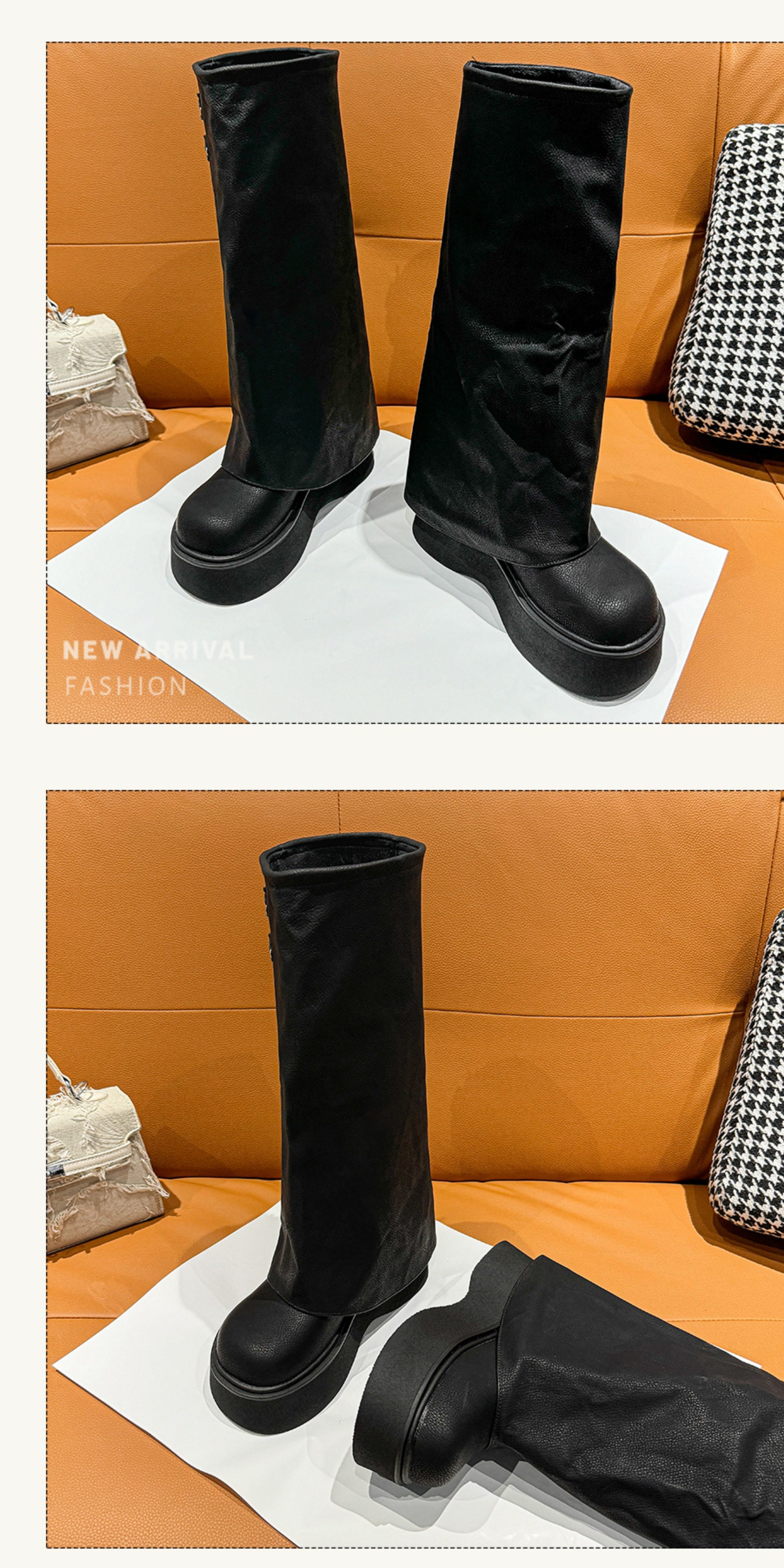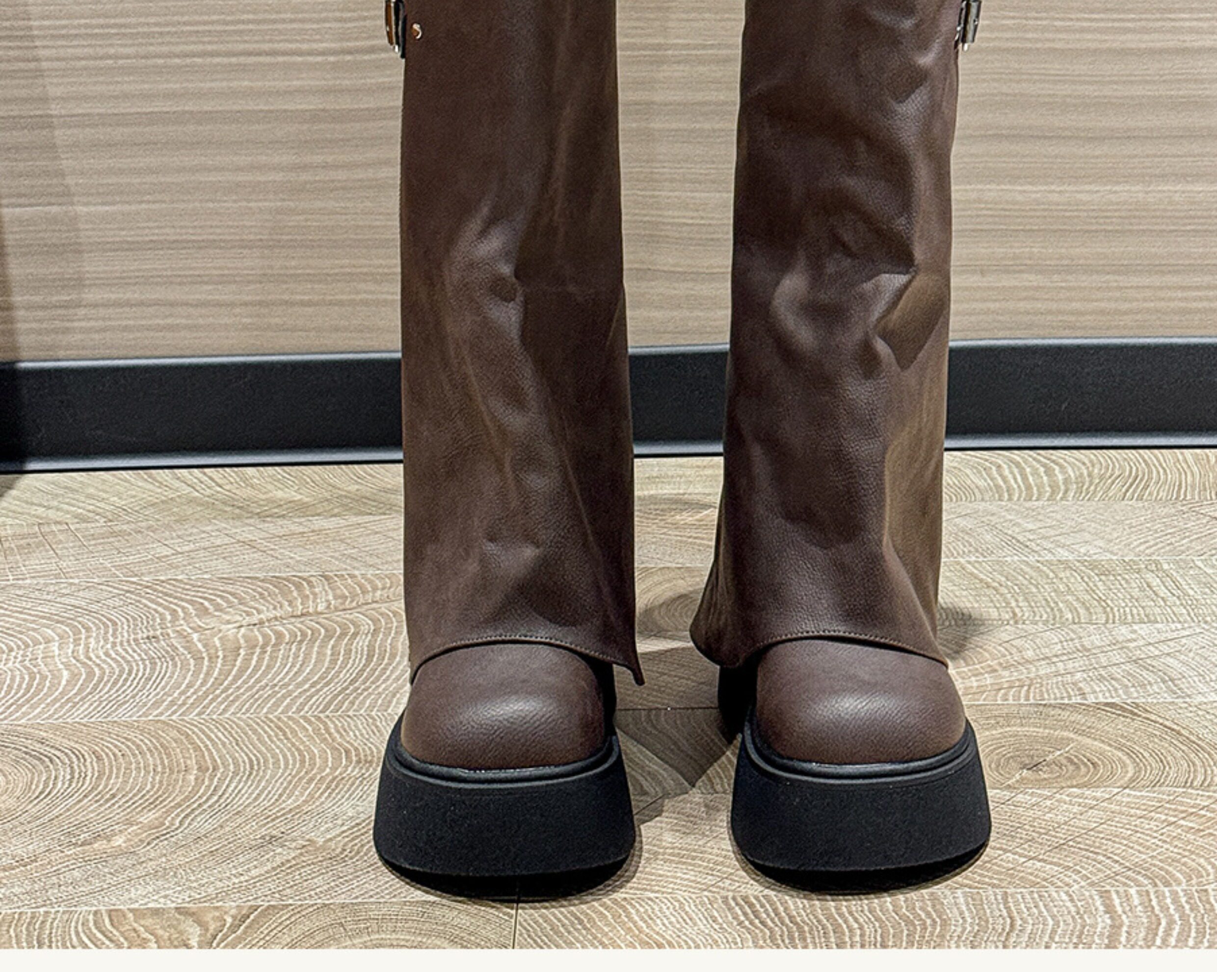 Ботинки, высокие сапоги, штаны, большой размер, свободный прямой крой