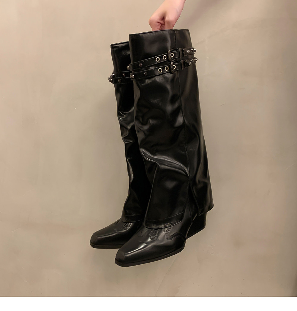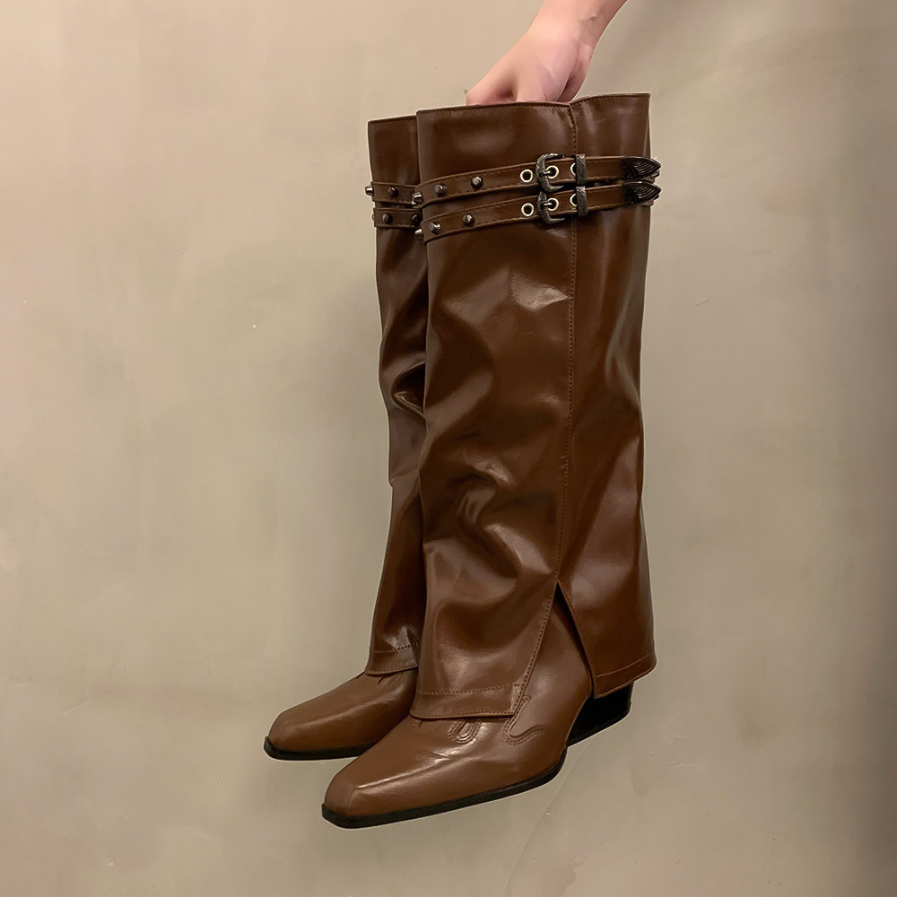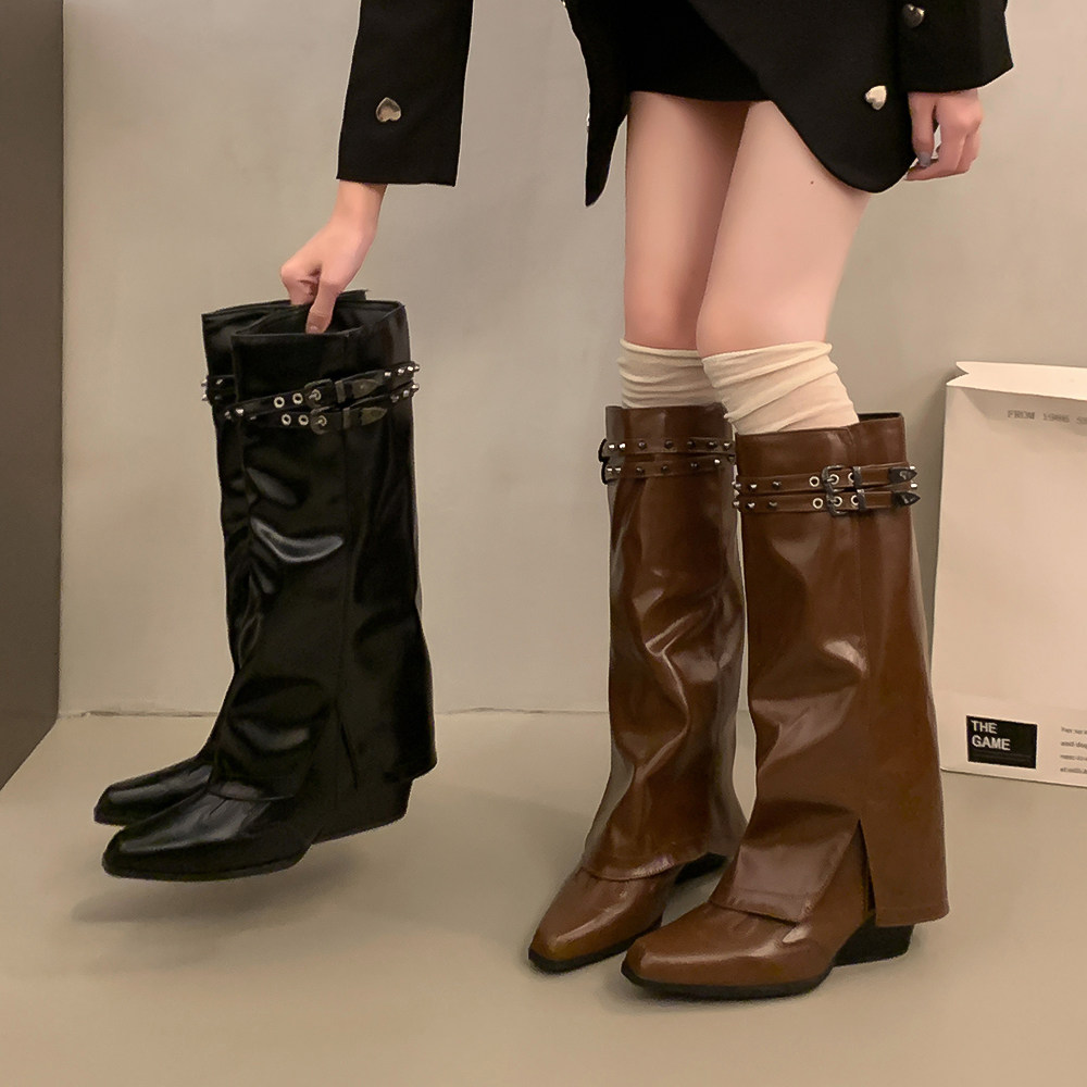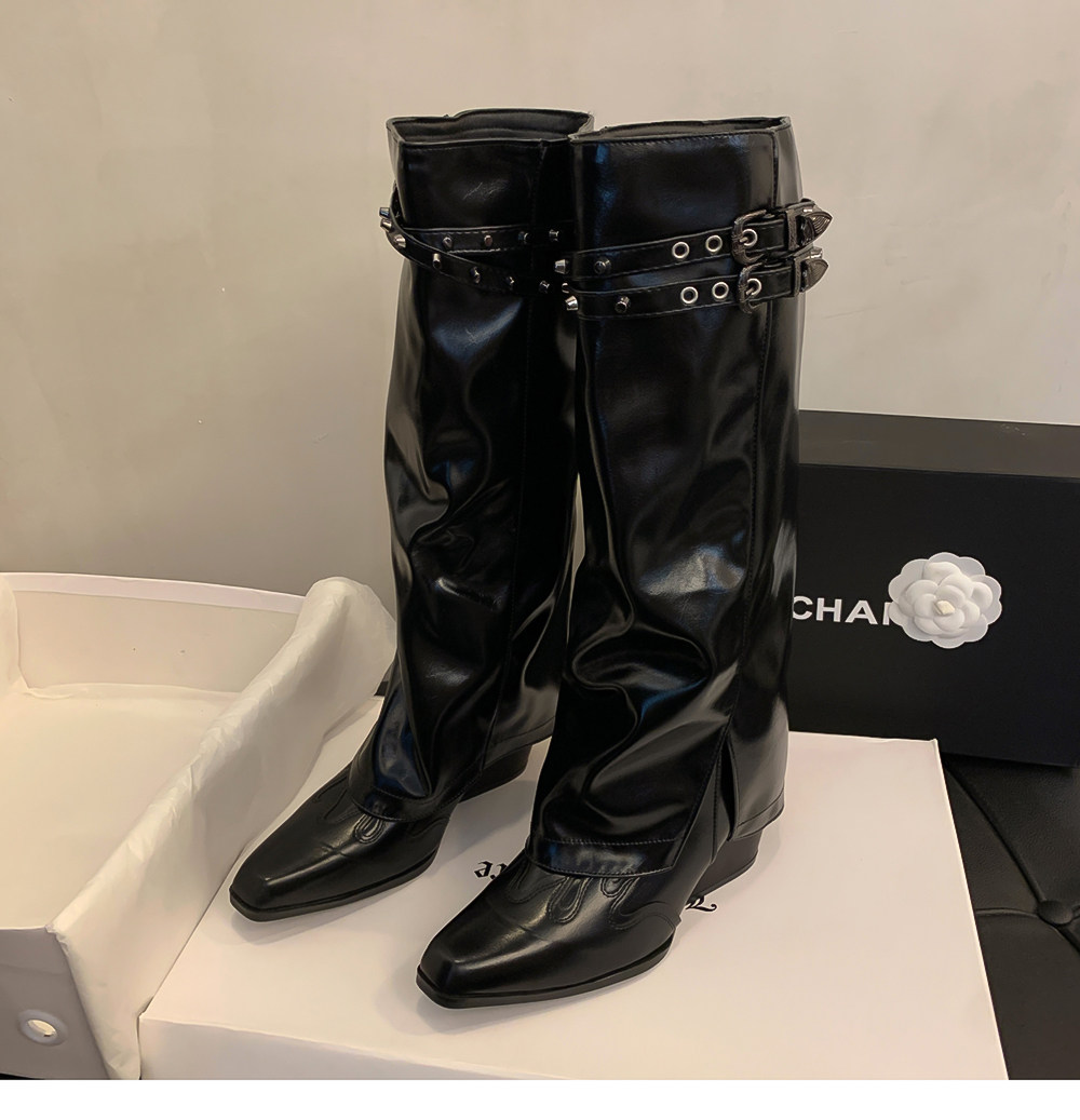 Высокие демисезонные штаны с заостренным носом, джинсовые высокие сапоги, ботинки, по фигуре, с вышивкой