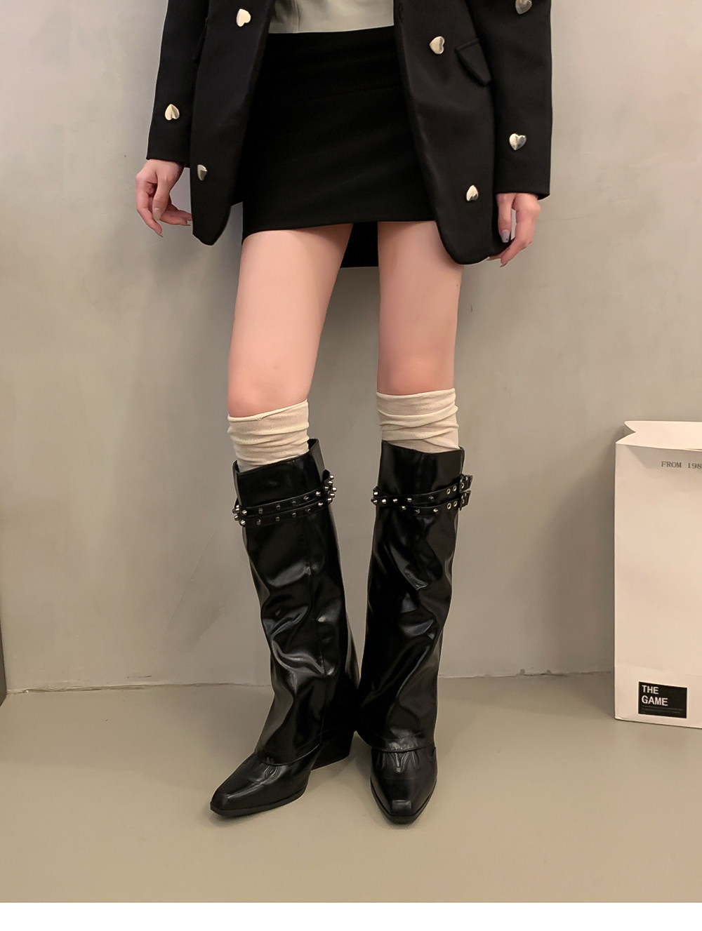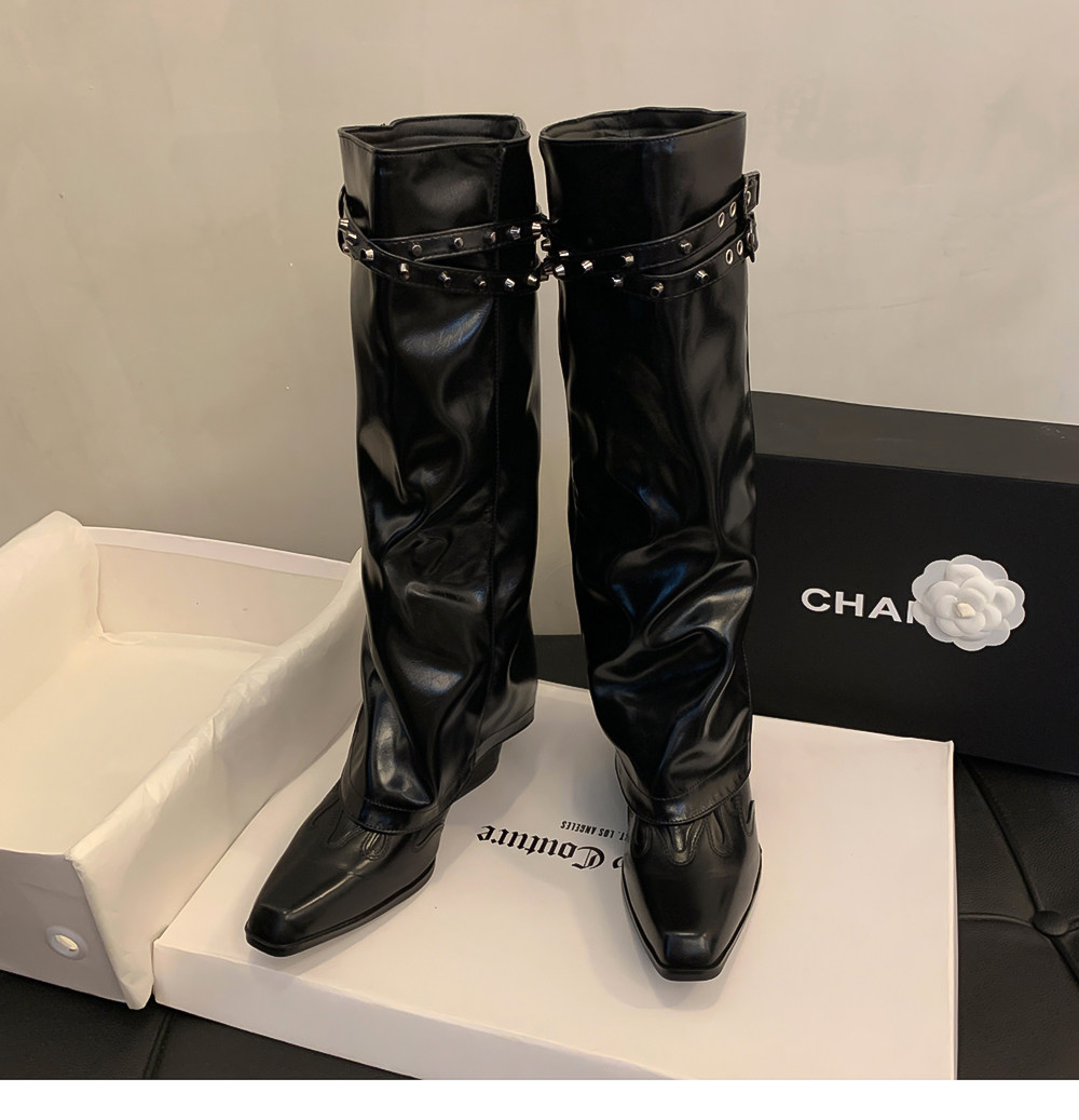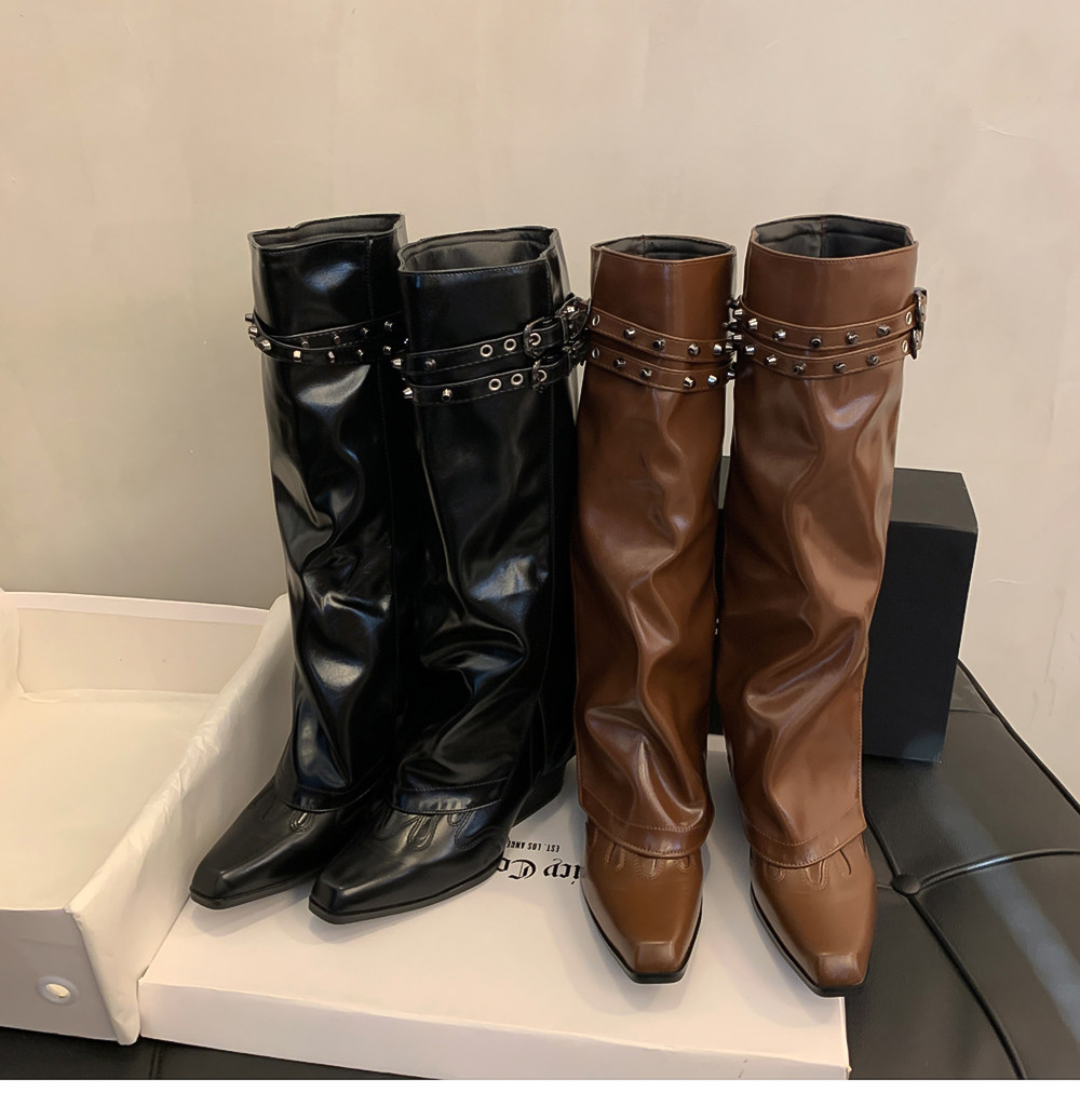 Высокие демисезонные штаны с заостренным носом, джинсовые высокие сапоги, ботинки, по фигуре, с вышивкой