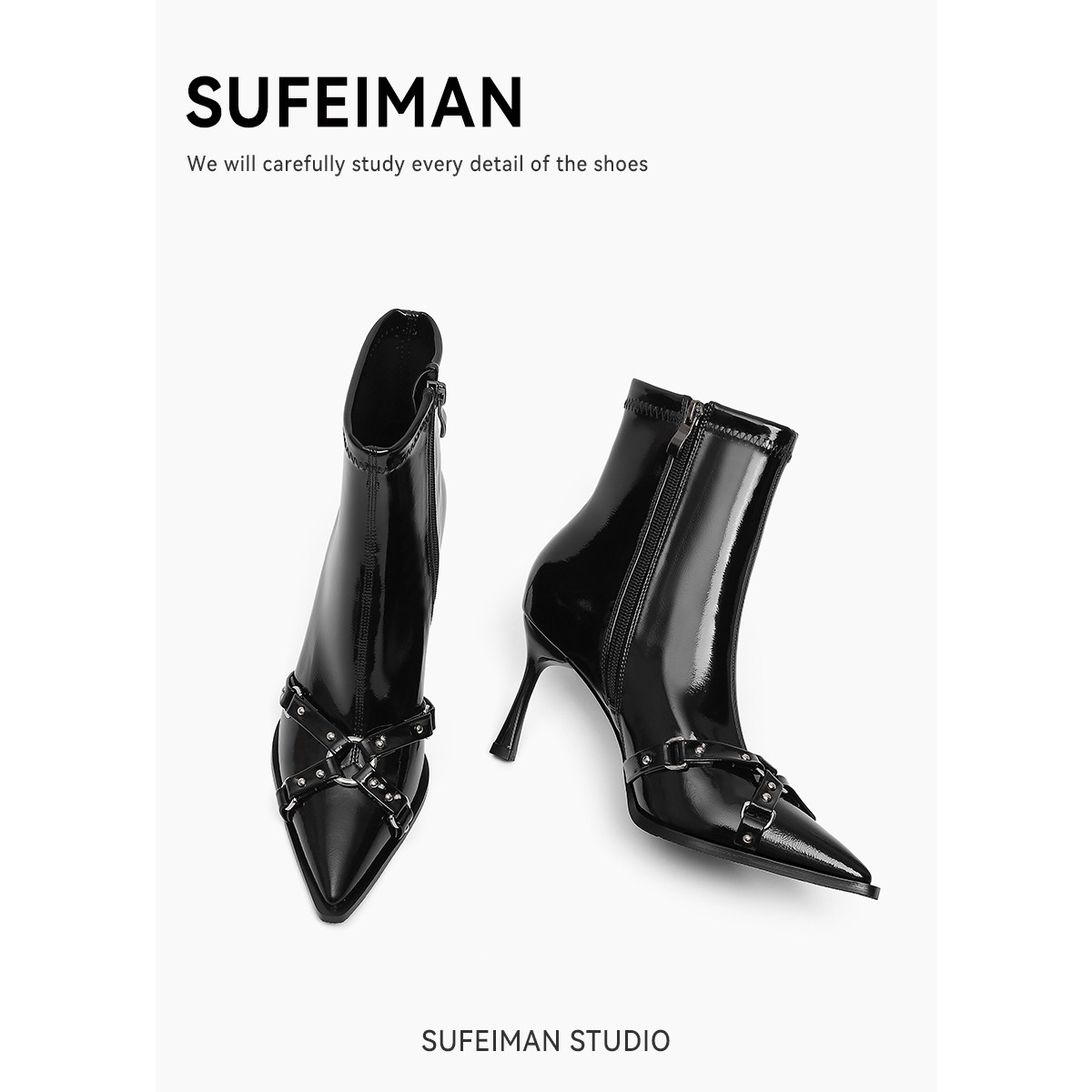 Демисезонные короткие сапоги с заостренным носом на высоком каблуке, французский стиль, изысканный стиль