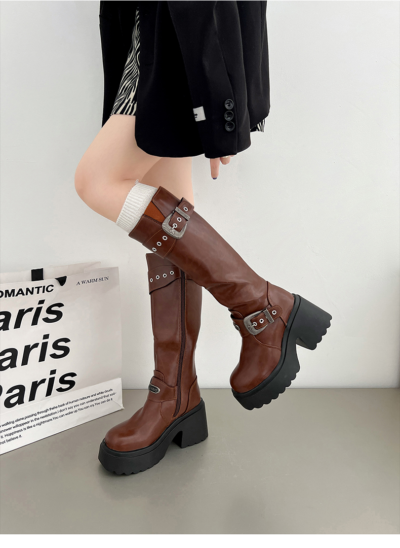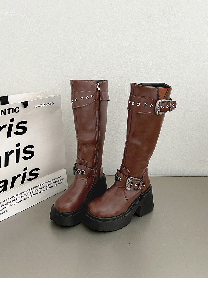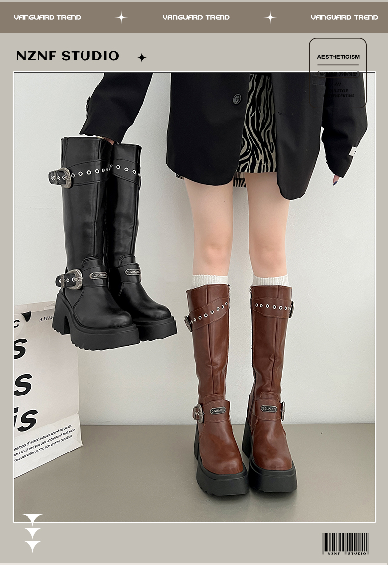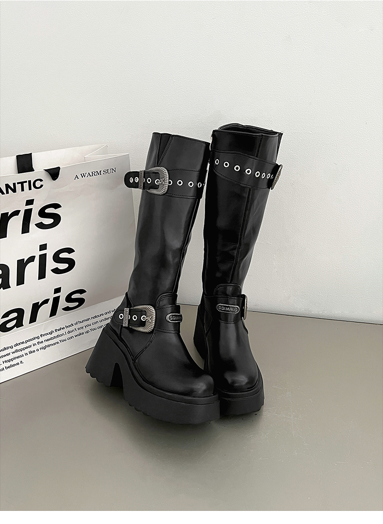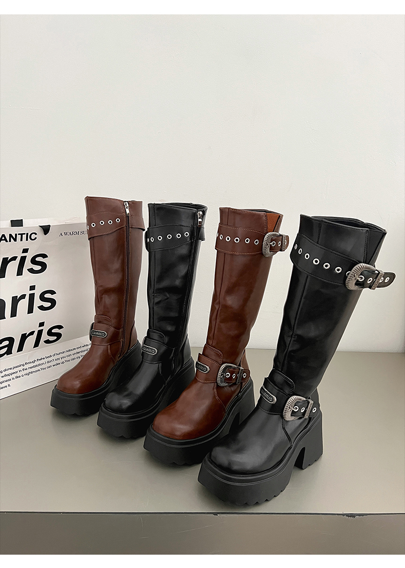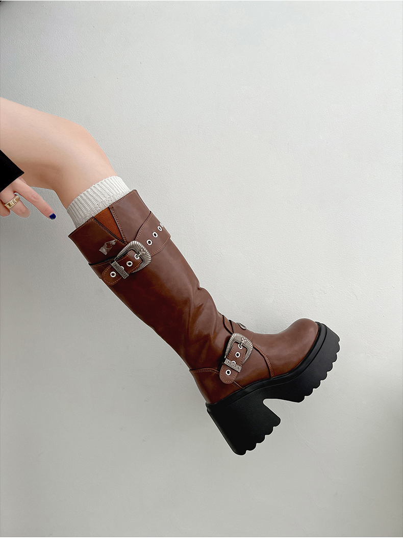 南在南方 Высокие сапоги в английском стиле на платформе, ботинки, в британском стиле, осенние, по фигуре