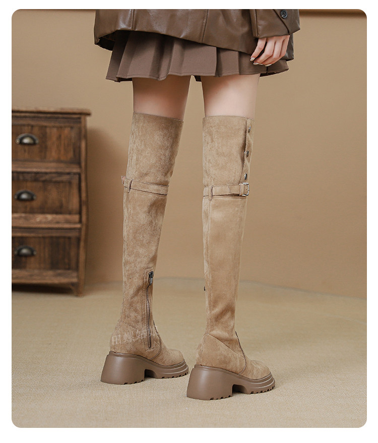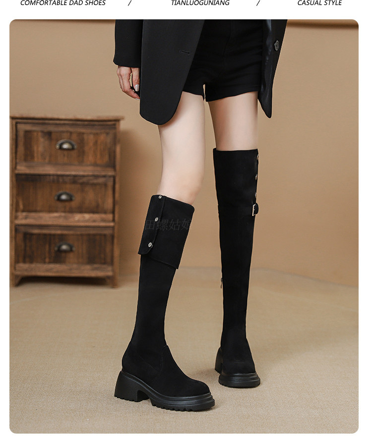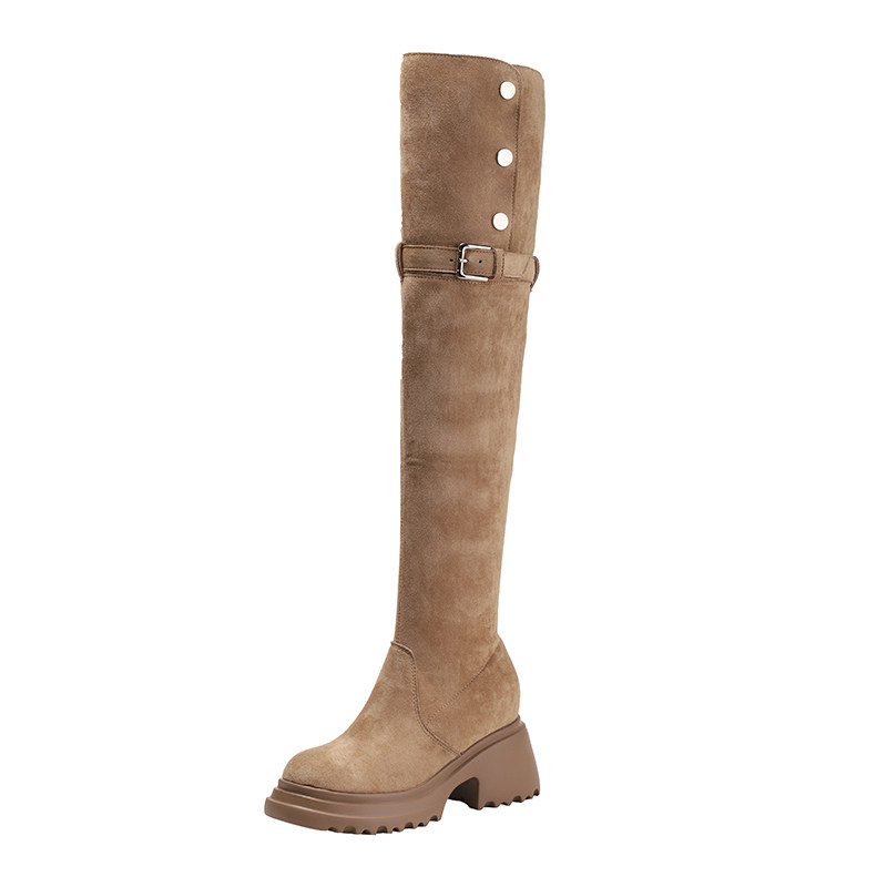 Высокие высокие сапоги, ботинки на платформе, 2024 года, из натуральной кожи