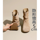 Кожаные высокие короткие сапоги, из натуральной кожи, 5см