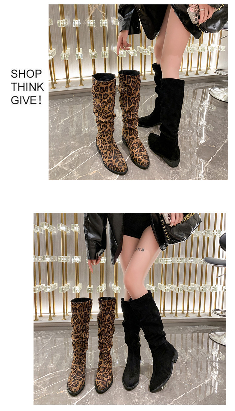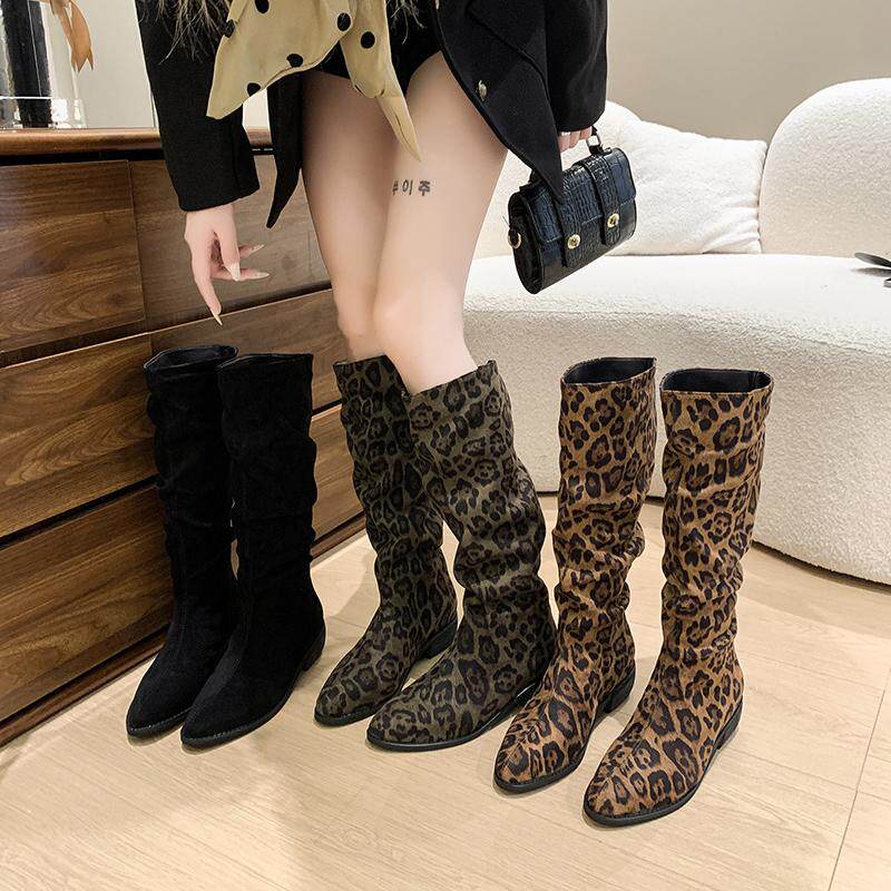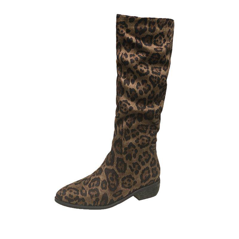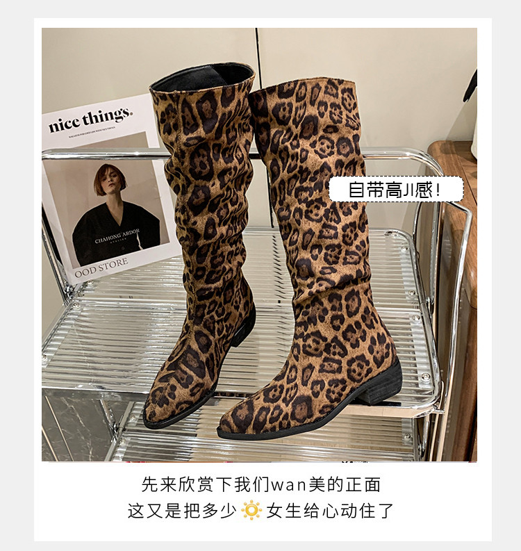 Ретро -пушистый узор леопарда тонкий, но тонкий, но коленные ботинки женский 2024 осень и зима новые сапоги с кучами высокая трубка сапоги Knight Boots