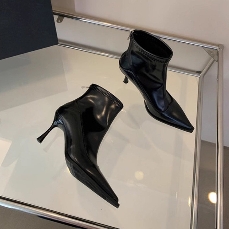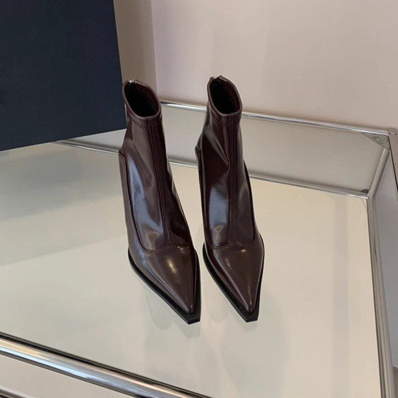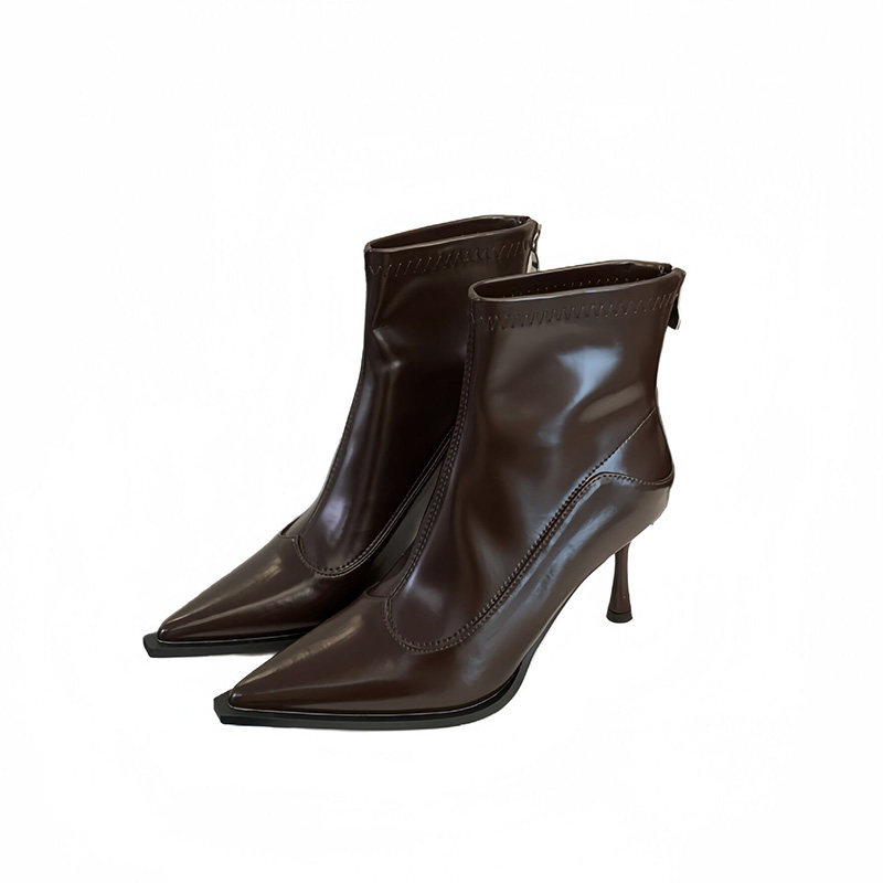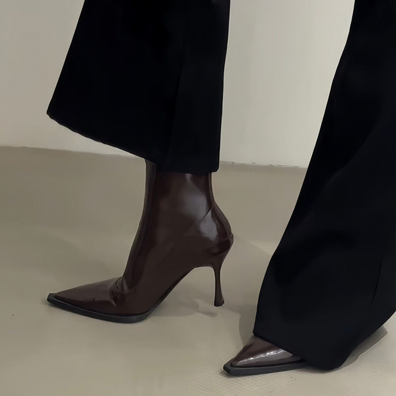 Высокие коричневые универсальные зимние короткие сапоги с заостренным носом с молнией, 2024 года, европейский стиль