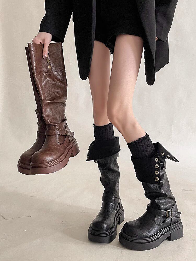 Джинсовые высокие сапоги, весенние высокие ботинки на платформе, 2025 года