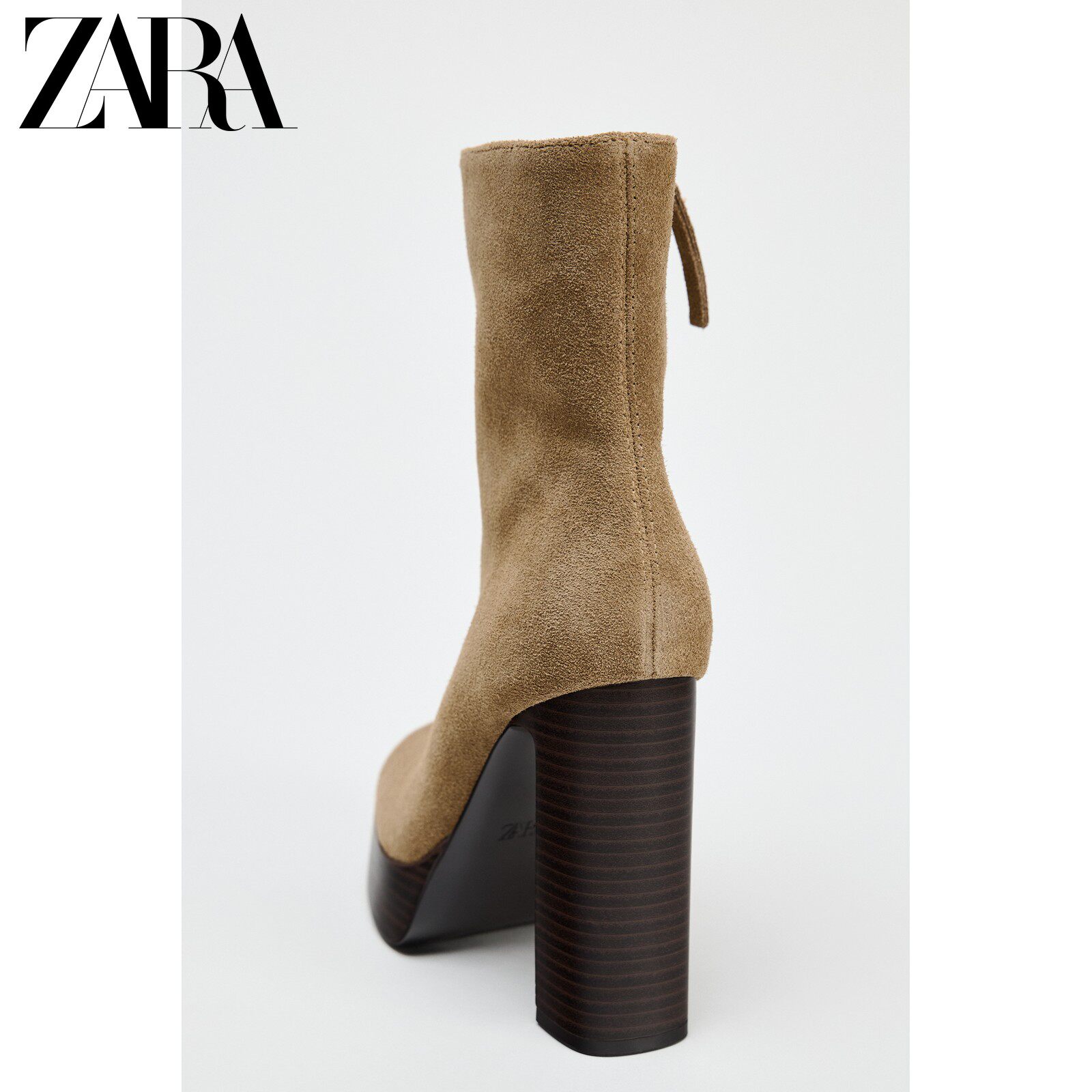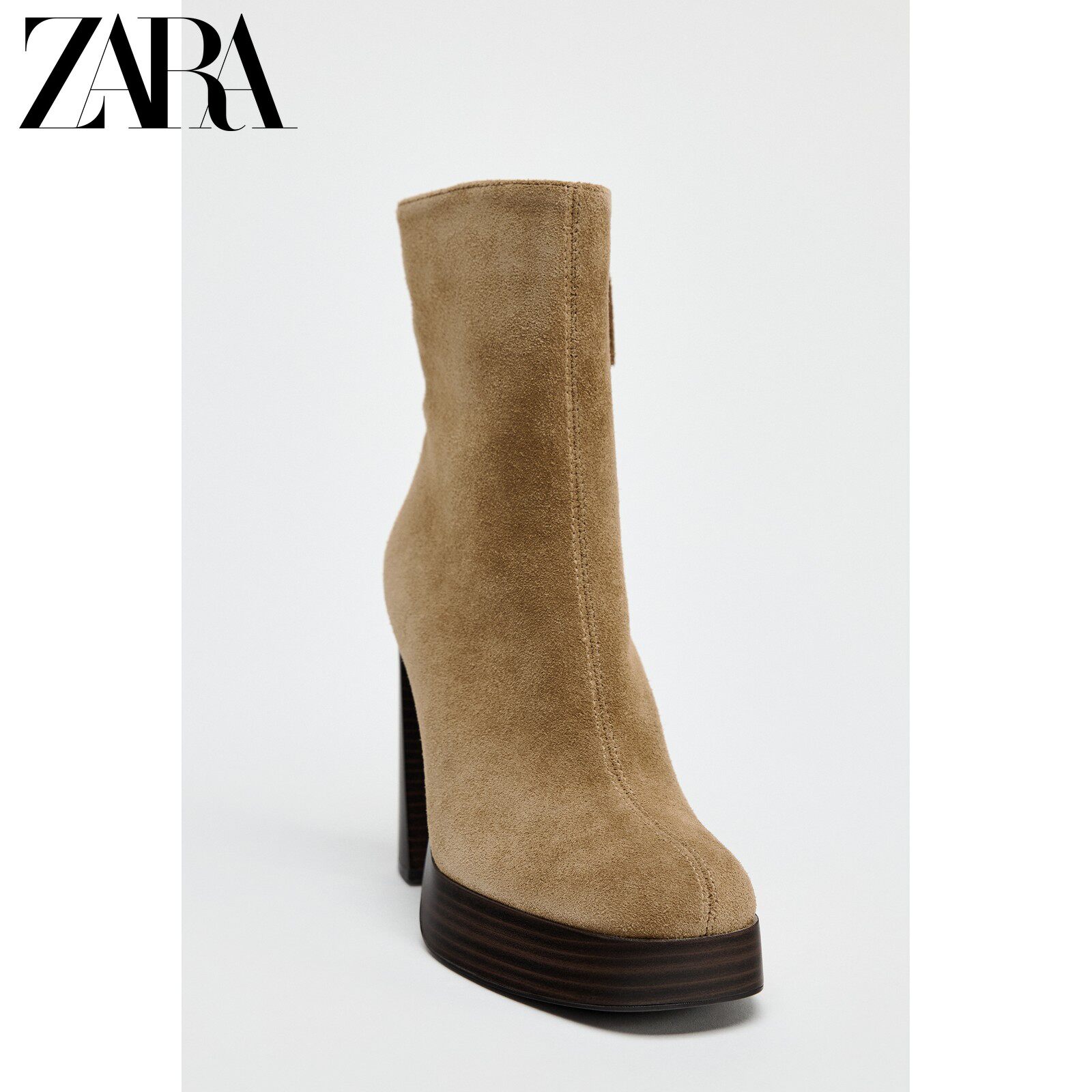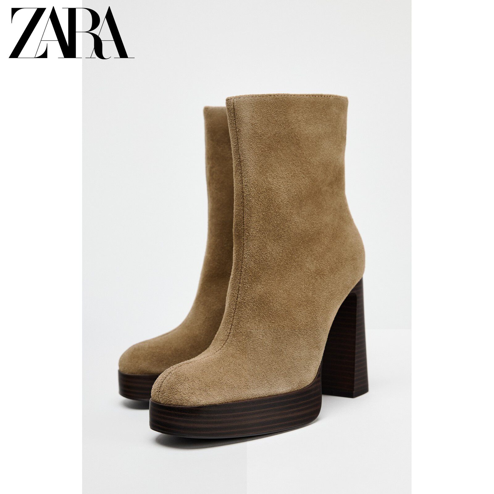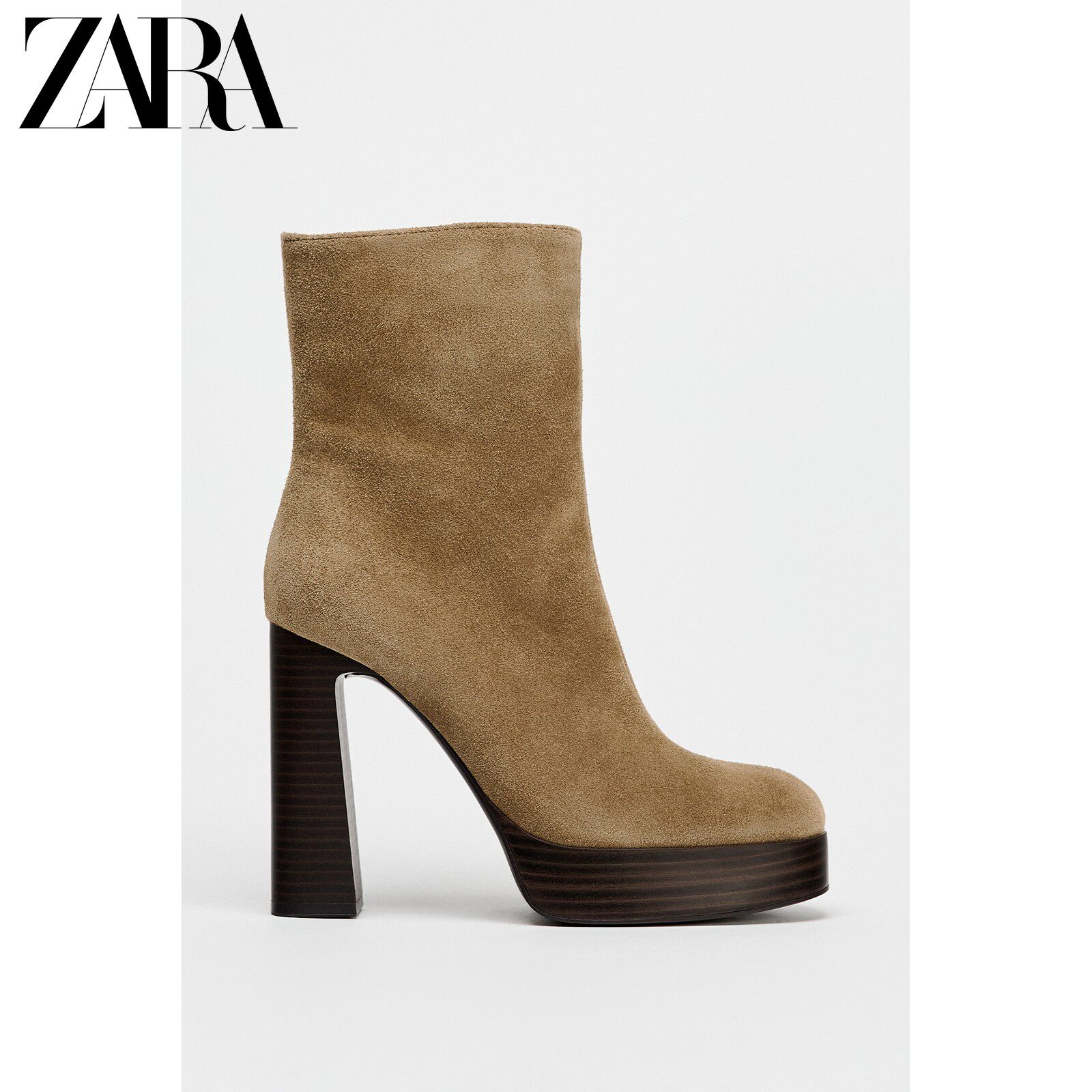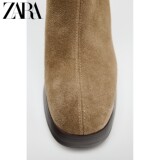 Новая женская обувь ZARA, коричневые замшевые водонепроницаемые короткие ботинки на платформе с круглым носком и высоком каблуке 2109510