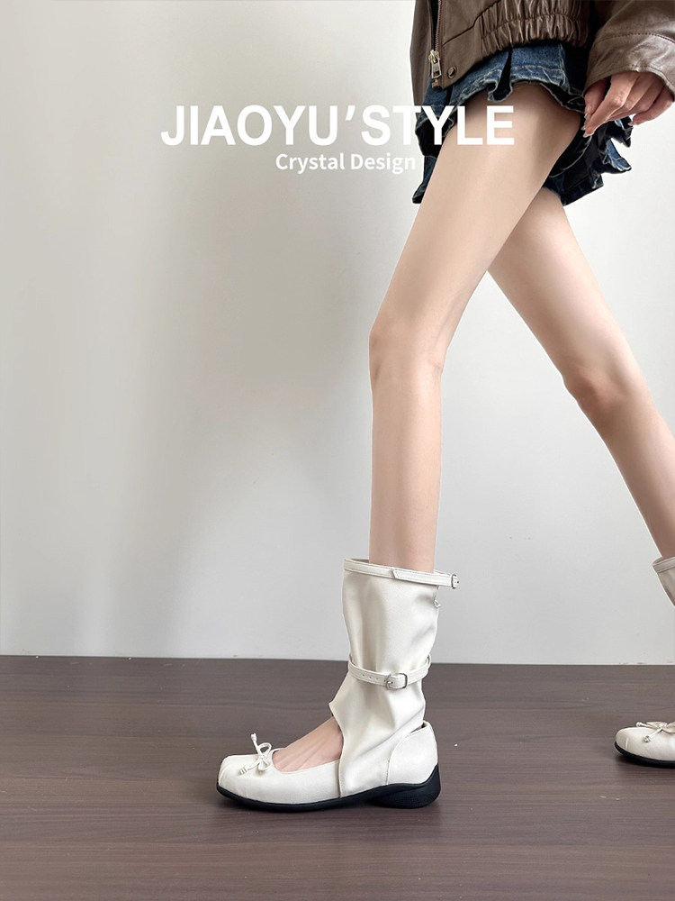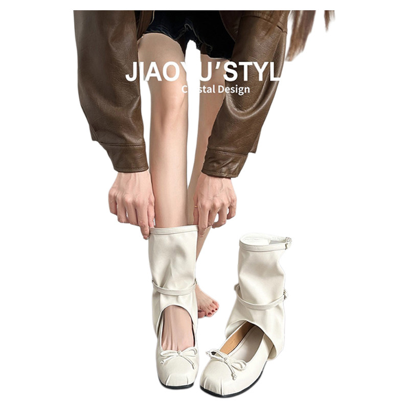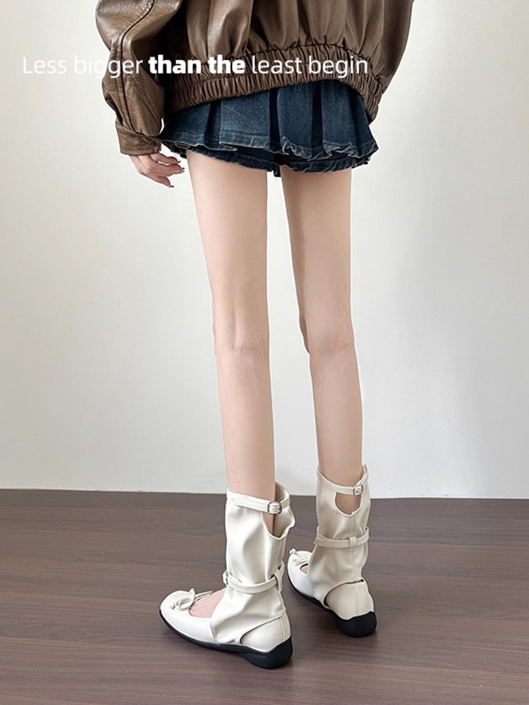 Небольшие дизайнерские короткие сапоги с бантиком на платформе, из натуральной кожи
