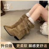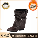 Высокие короткие сапоги в английском стиле с заостренным носом, демисезонная высокая подходит с юбкой, штаны, в британском стиле, по фигуре