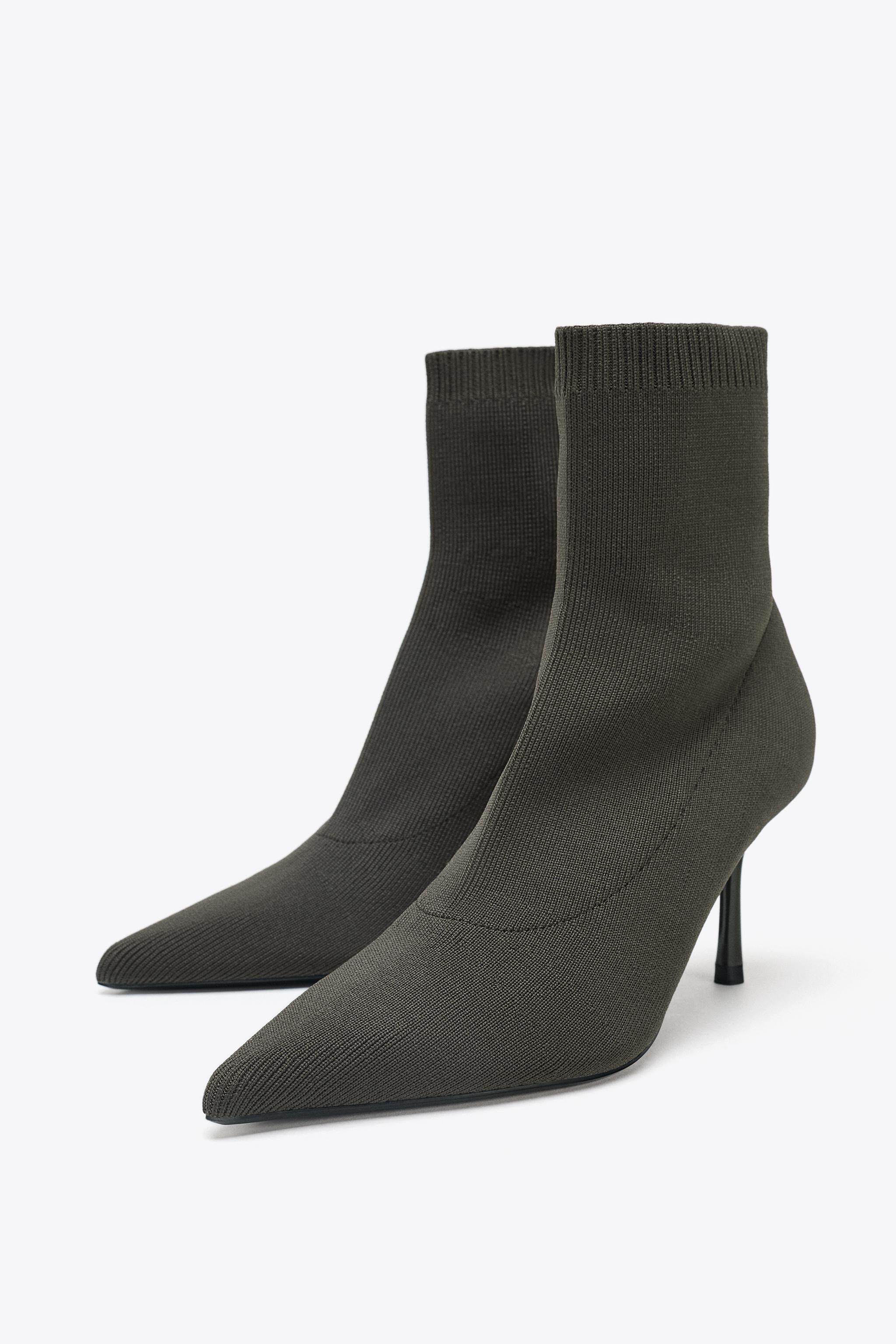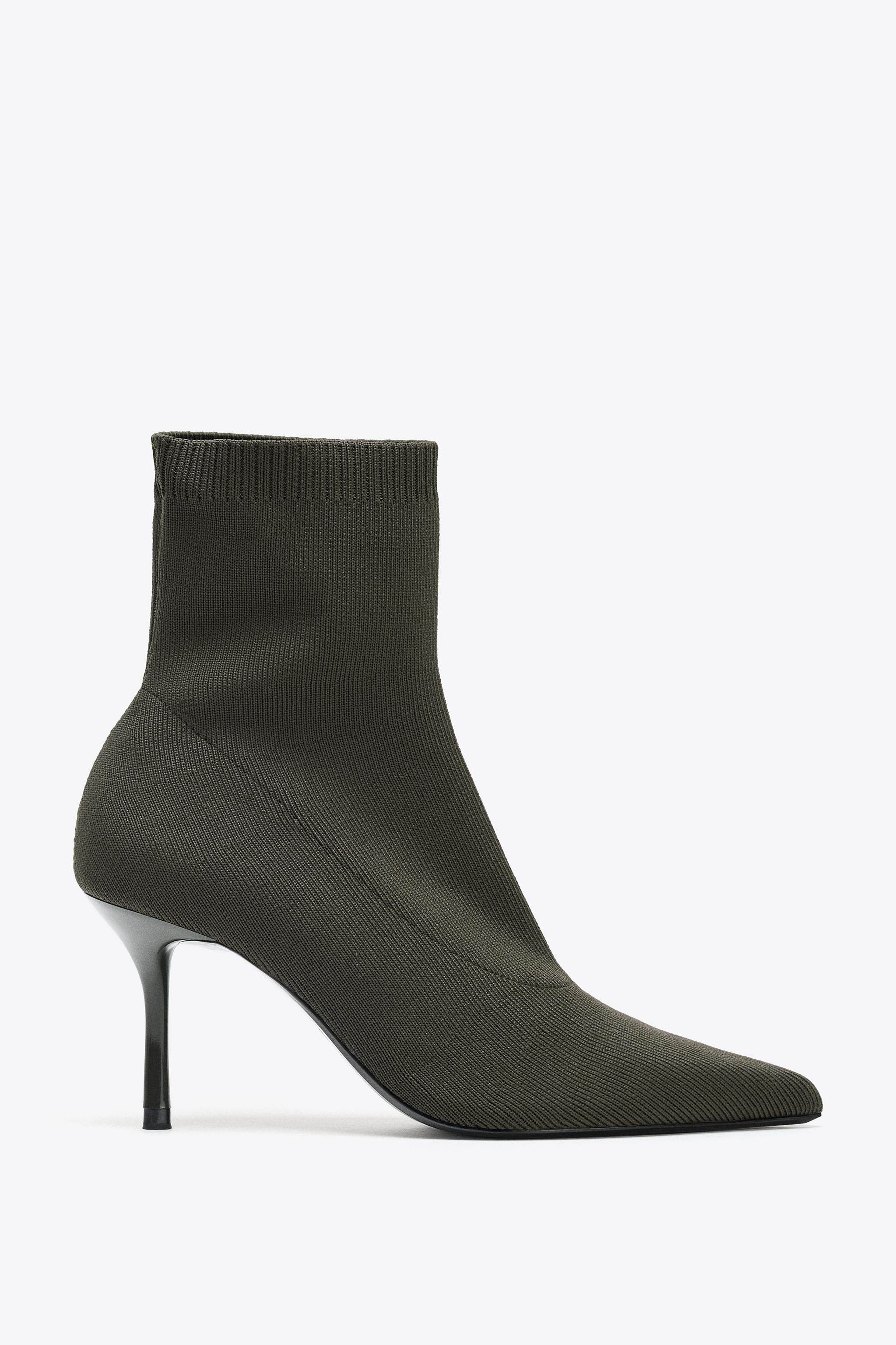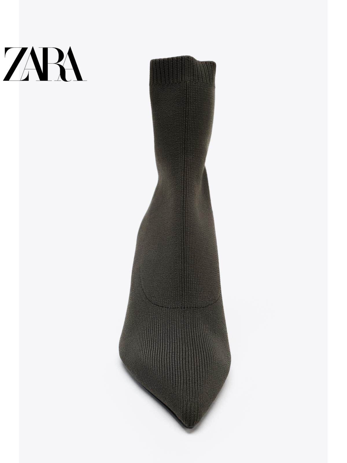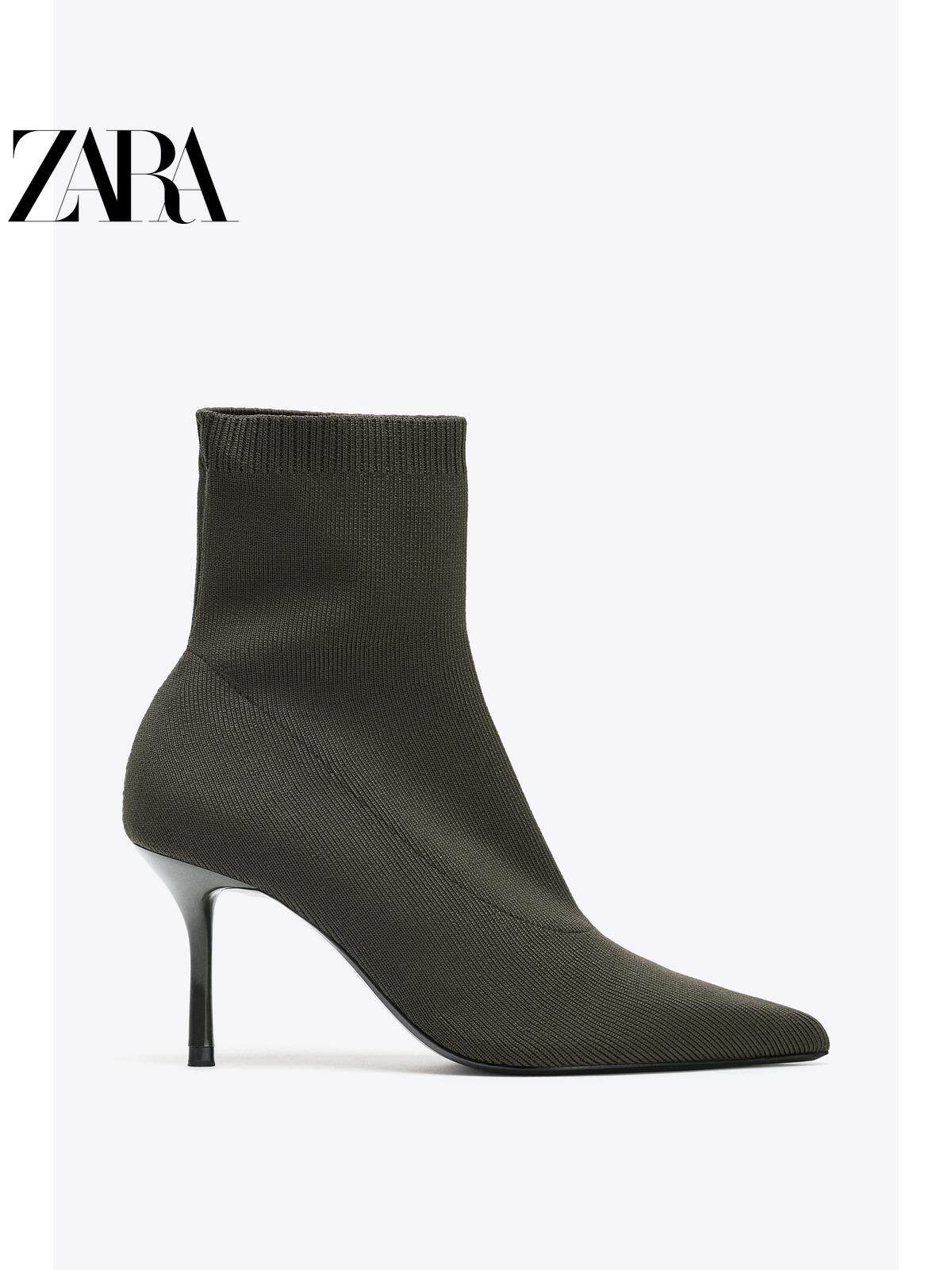 ZARA Осень 2025, новые товары, женская обувь, дизайнерские тканевые короткие сапоги с острым носком на высоком каблуке 3103610 802