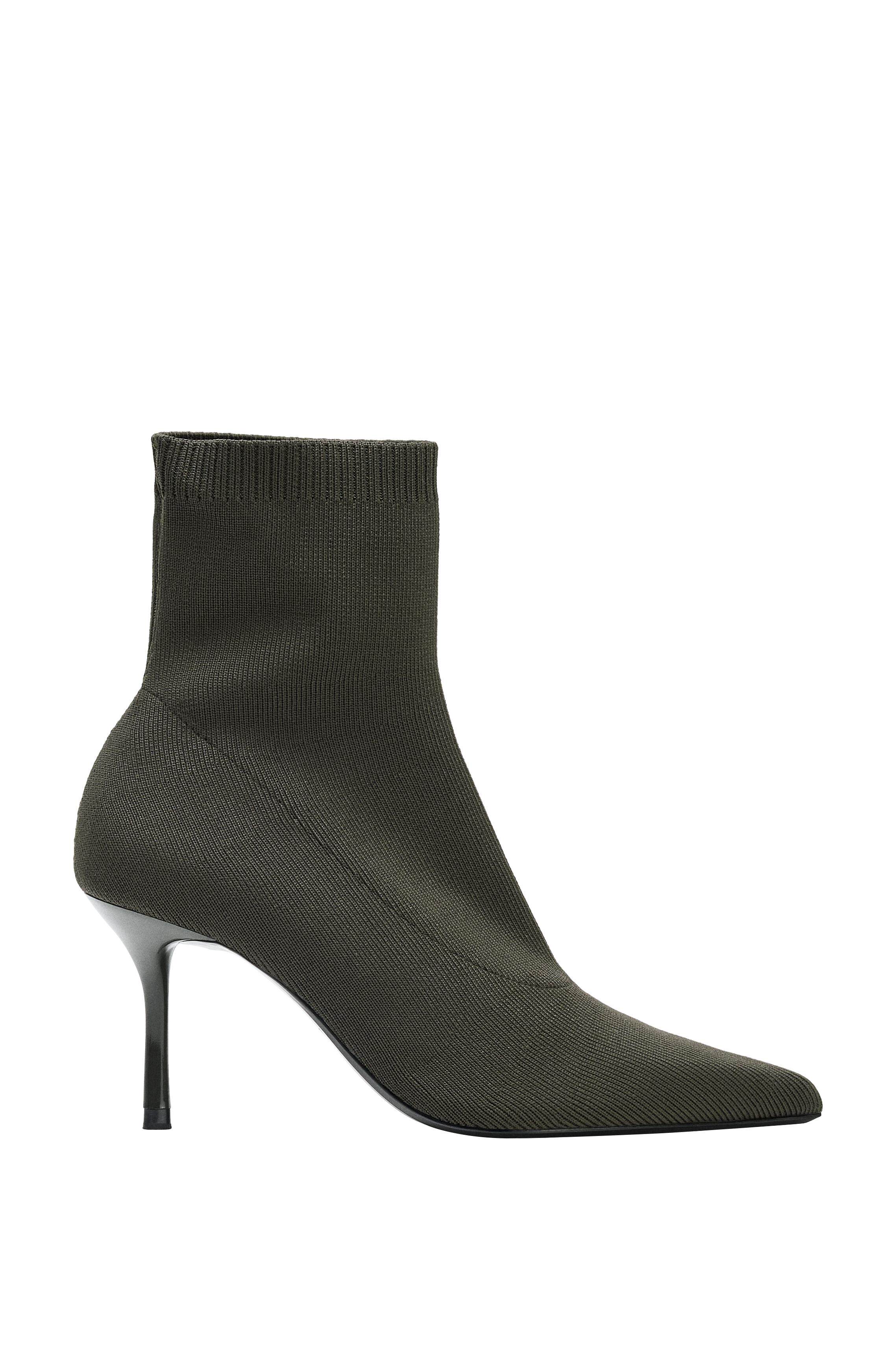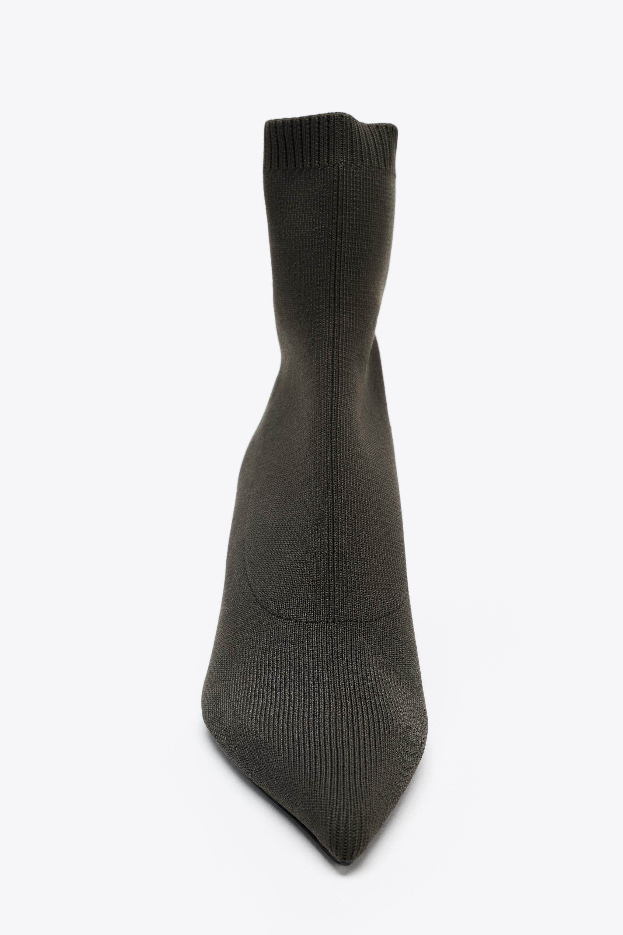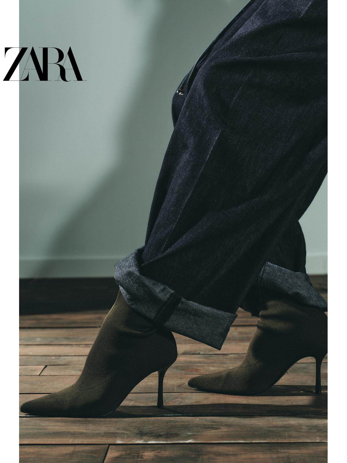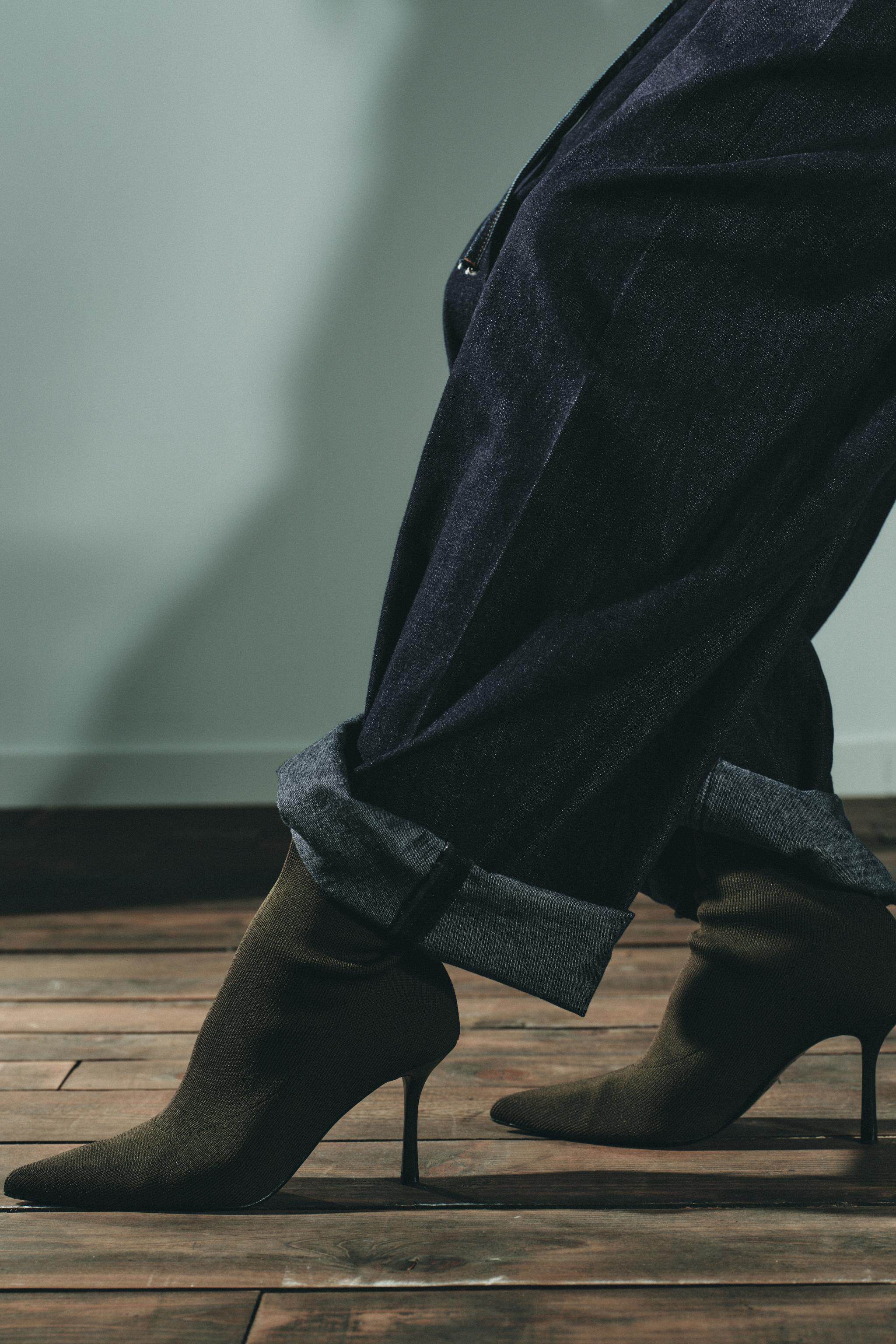 ZARA Осень 2025, новые товары, женская обувь, дизайнерские тканевые короткие сапоги с острым носком на высоком каблуке 3103610 802