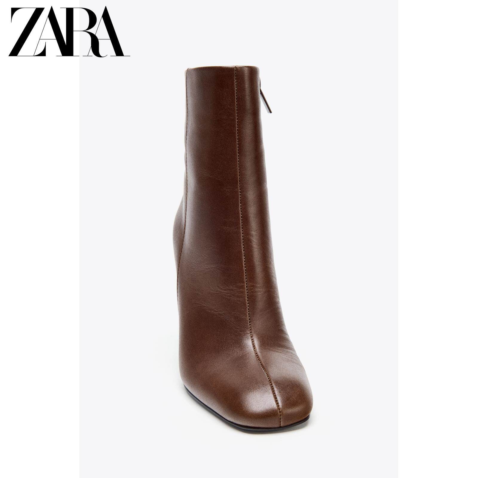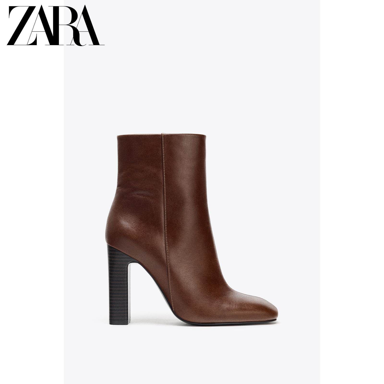 ZARA Сезонная женская обувь со скидкой, закрытые кожаные короткие сапоги на толстом каблуке с боковой молнией 3106610 700