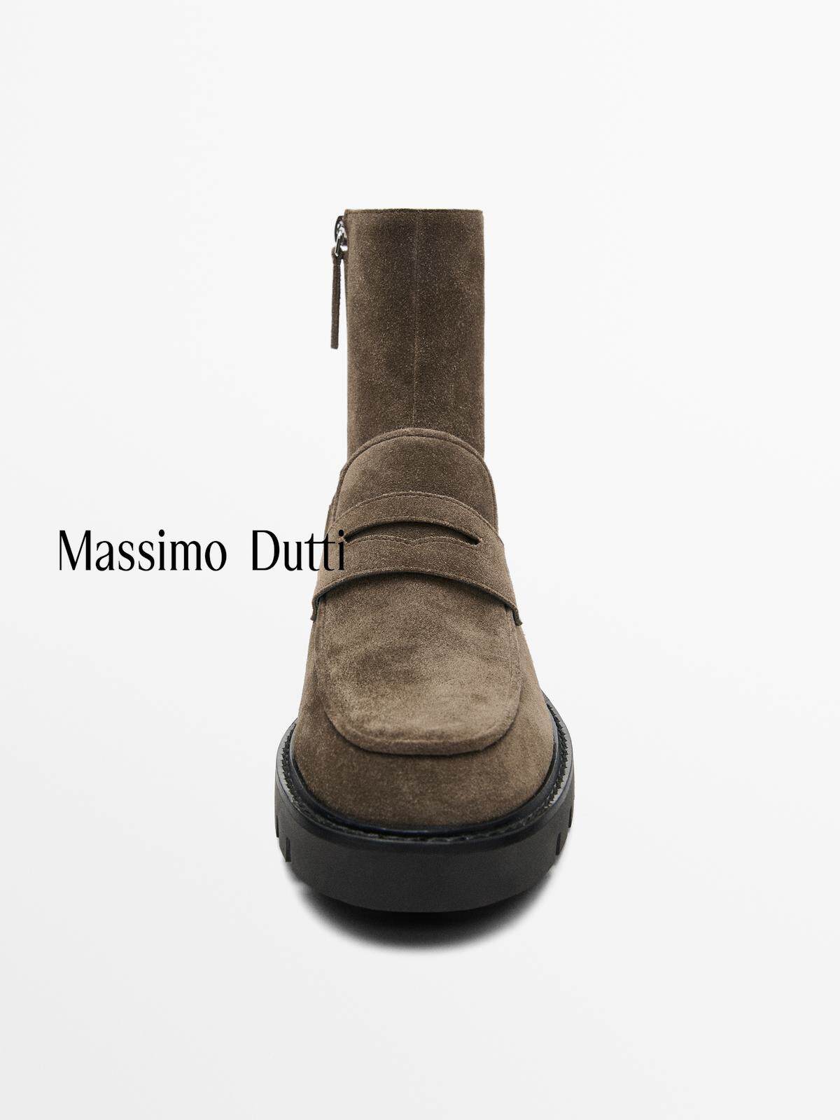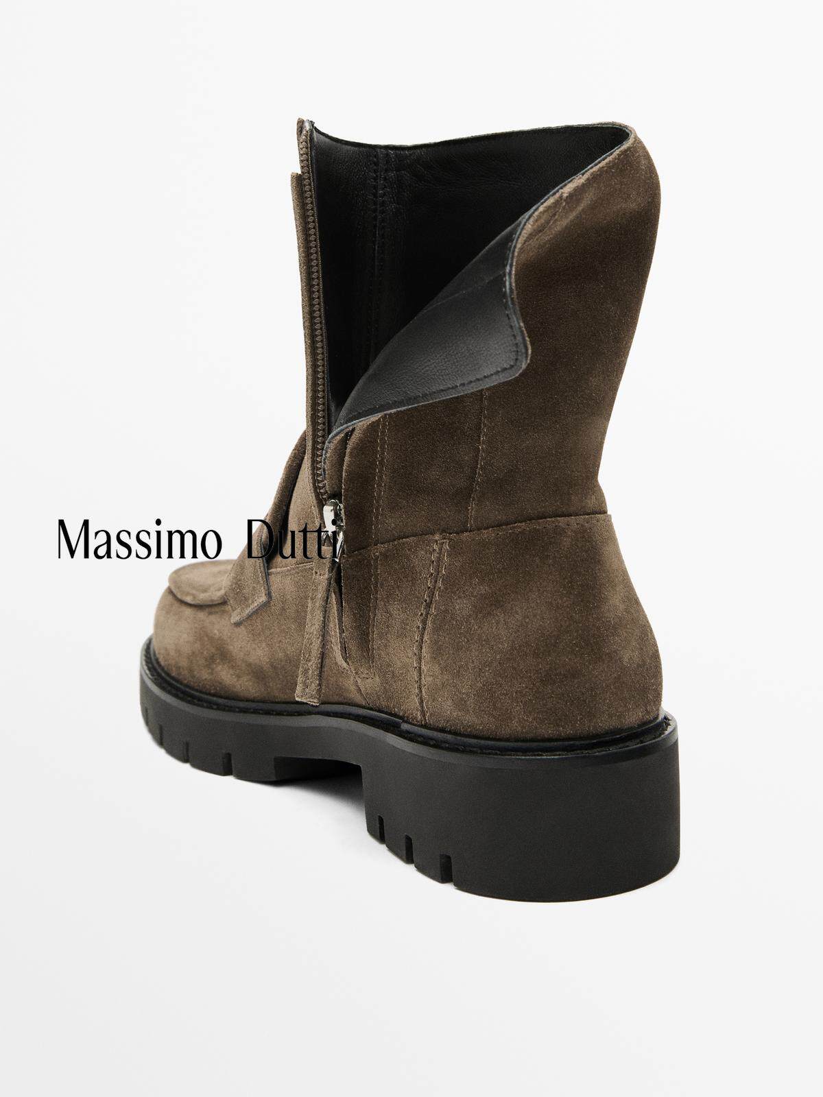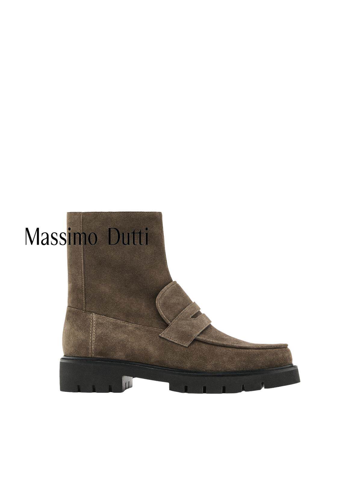Massimo Dutti Женская обувь. Осень и зима 2025. Новые коричневые короткие сапоги на плоской подошве с рифленой подошвой под старину 11108650131