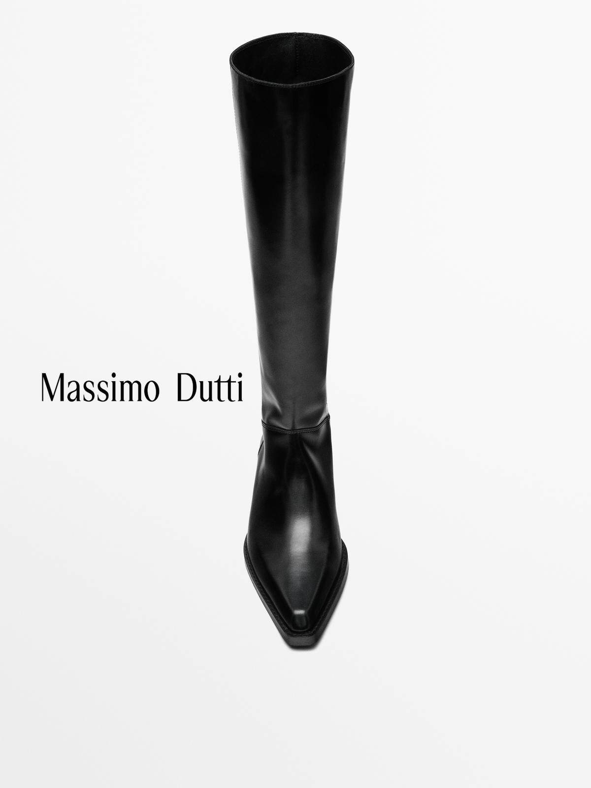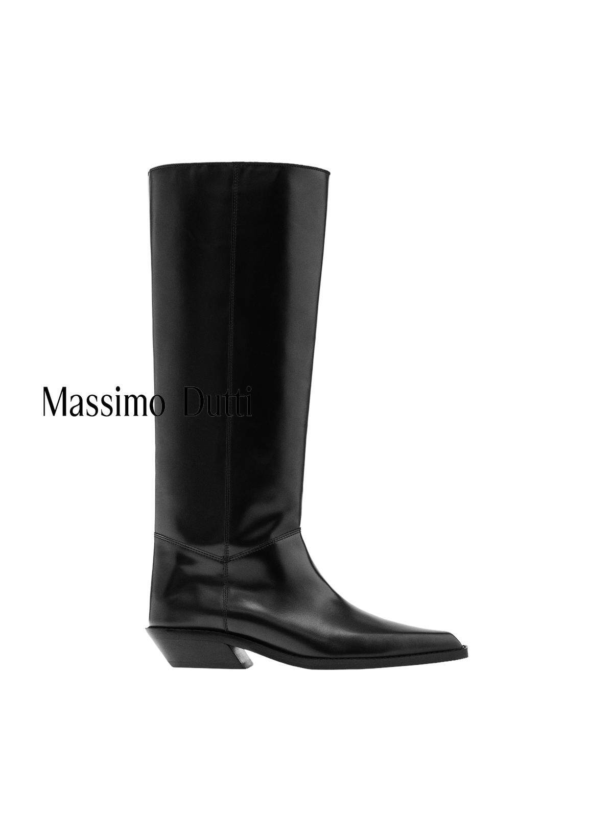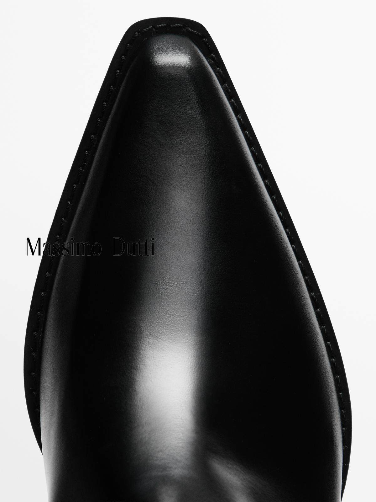 Massimo Dutti Женская обувь 2025 Осень и зима Новые черные кожаные короткие сапоги в ковбойском стиле 11004650800