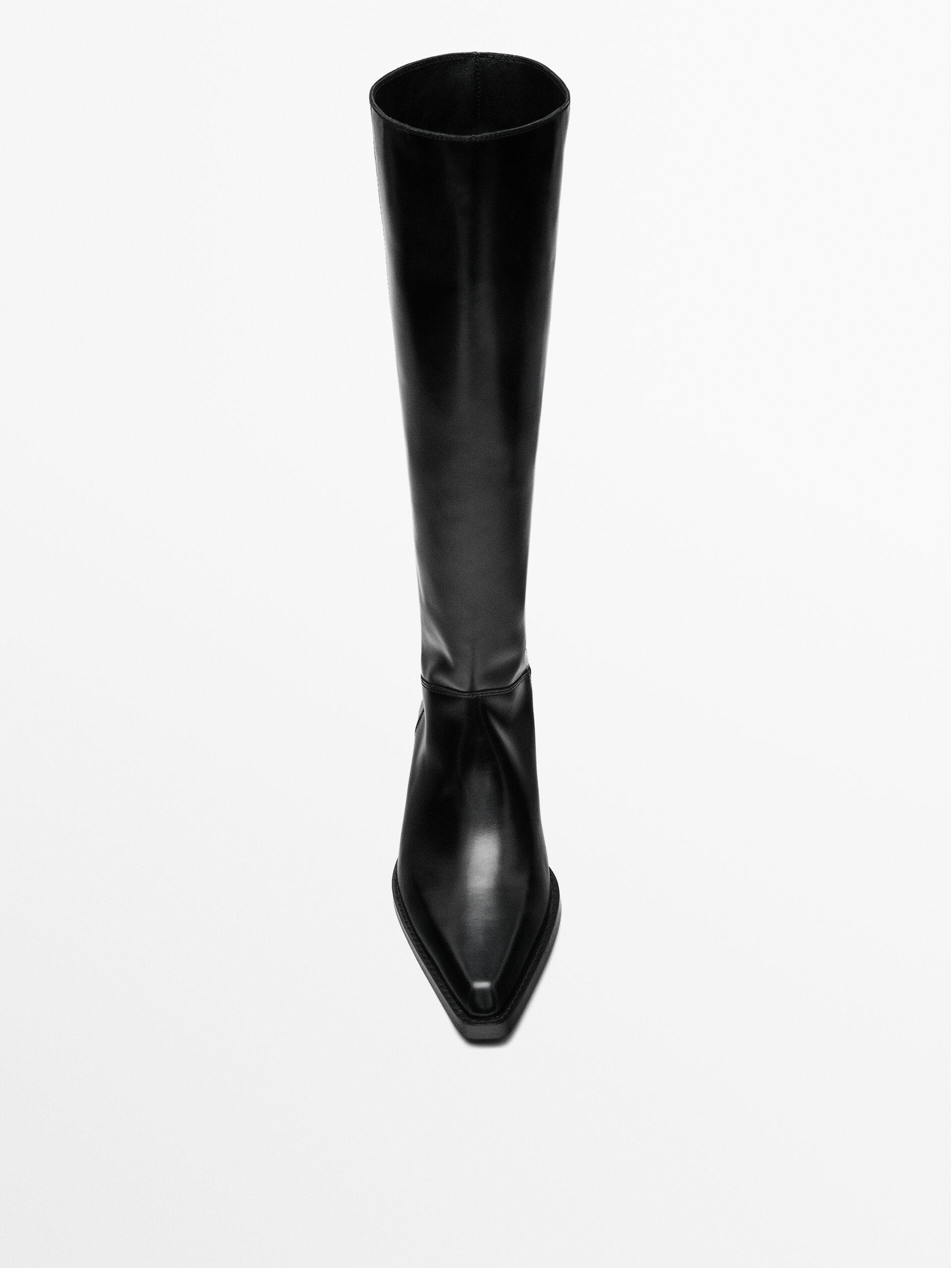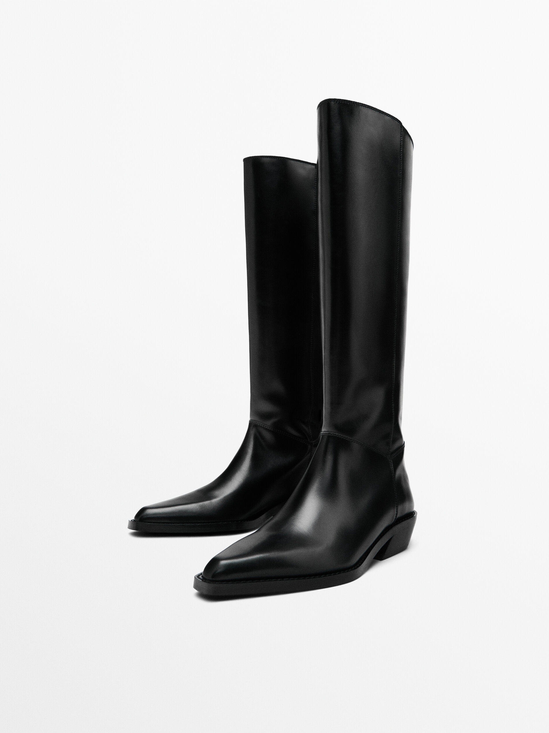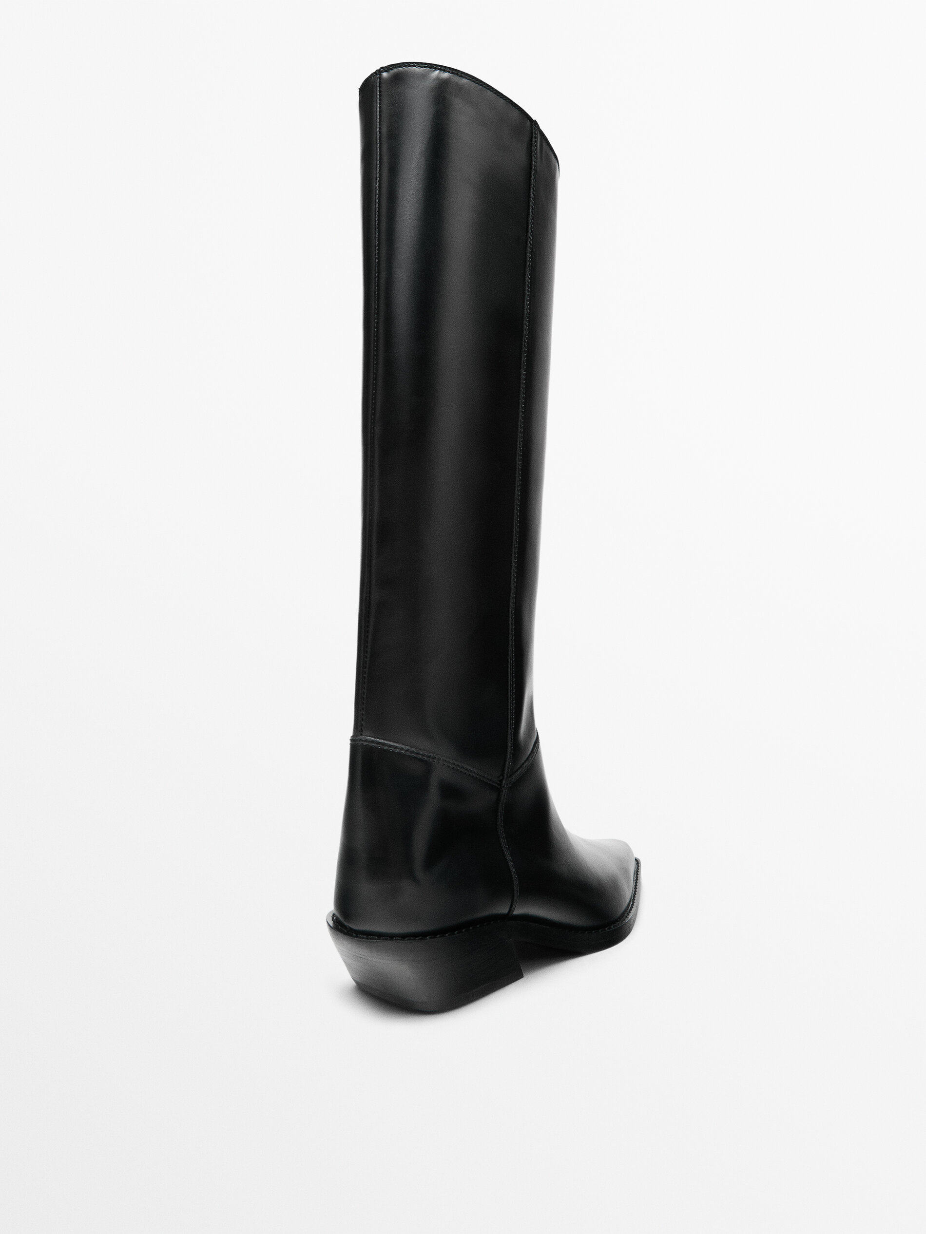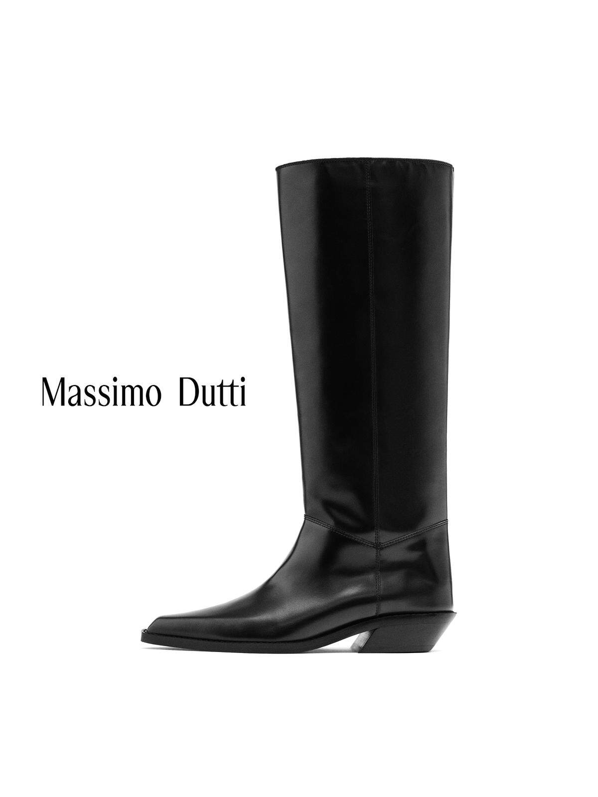 Massimo Dutti Женская обувь 2025 Осень и зима Новые черные кожаные короткие сапоги в ковбойском стиле 11004650800