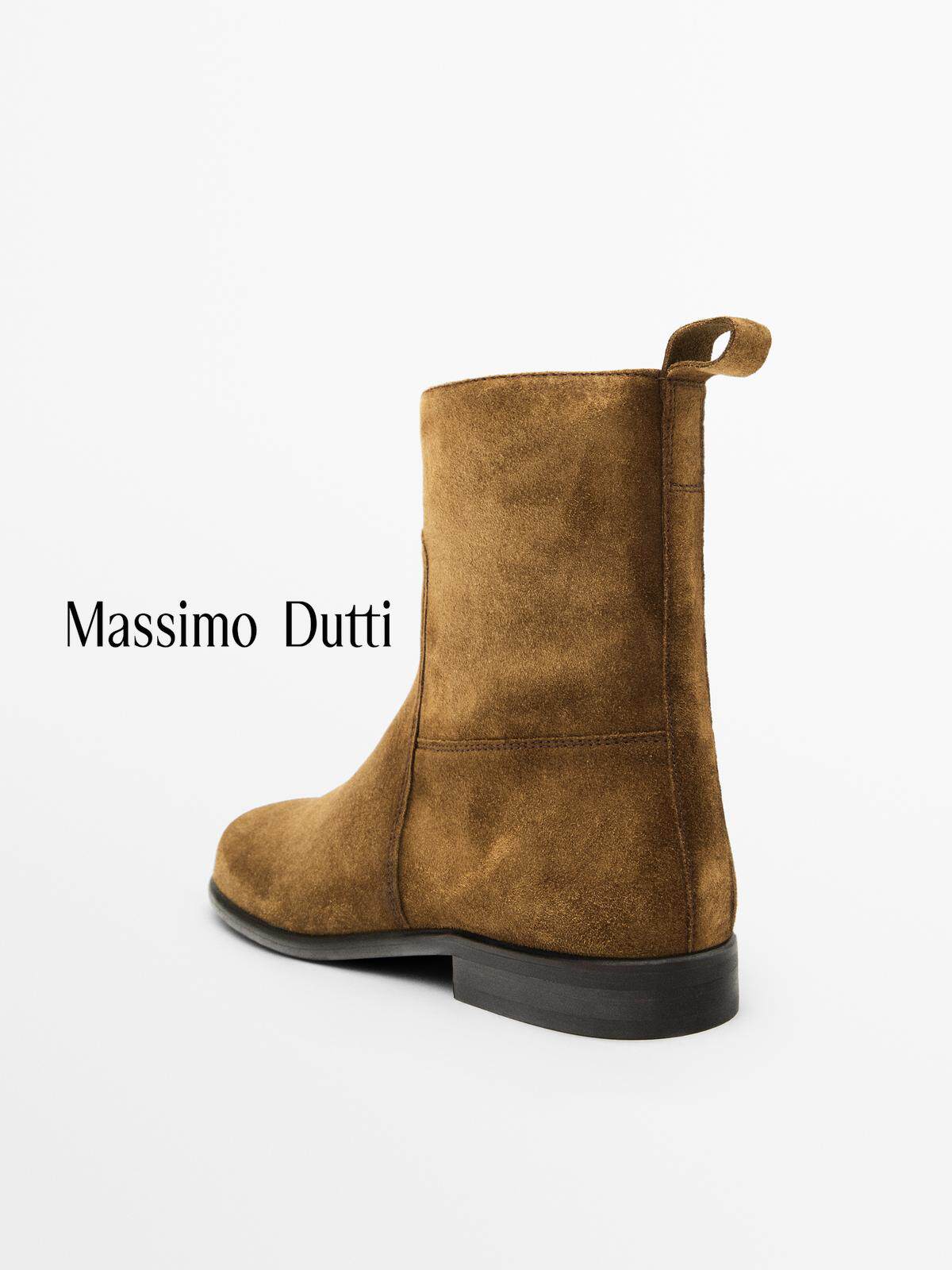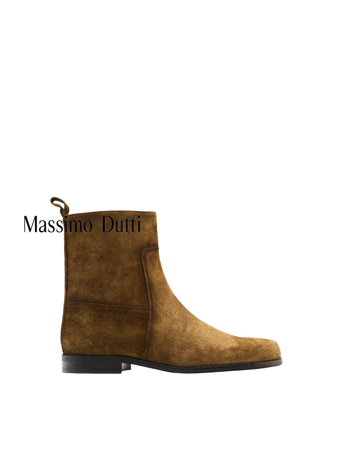 Massimo Dutti Женская обувь, осень-зима 2025, новые ботинки челси из матовой замши светло-коричневого цвета 11124650704
