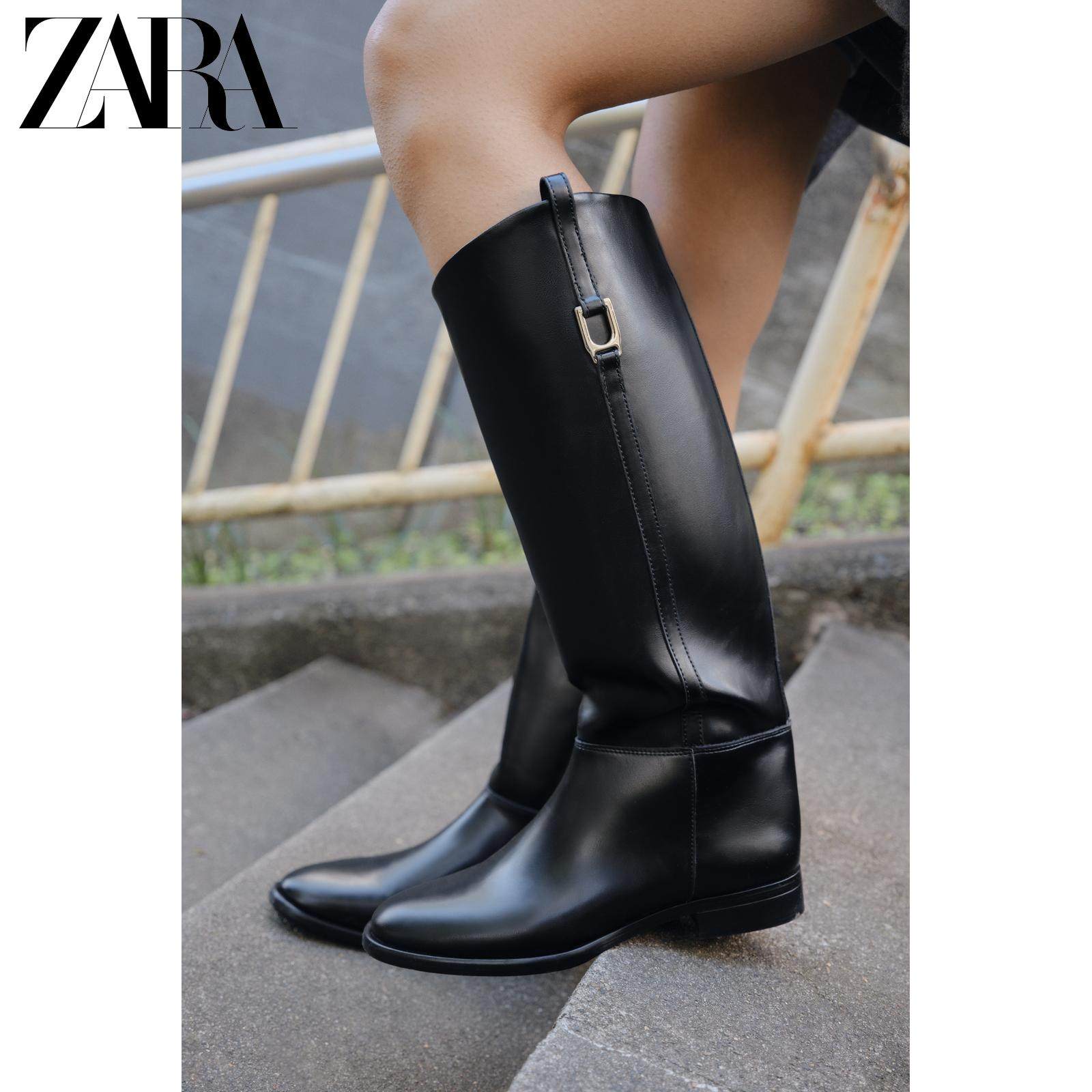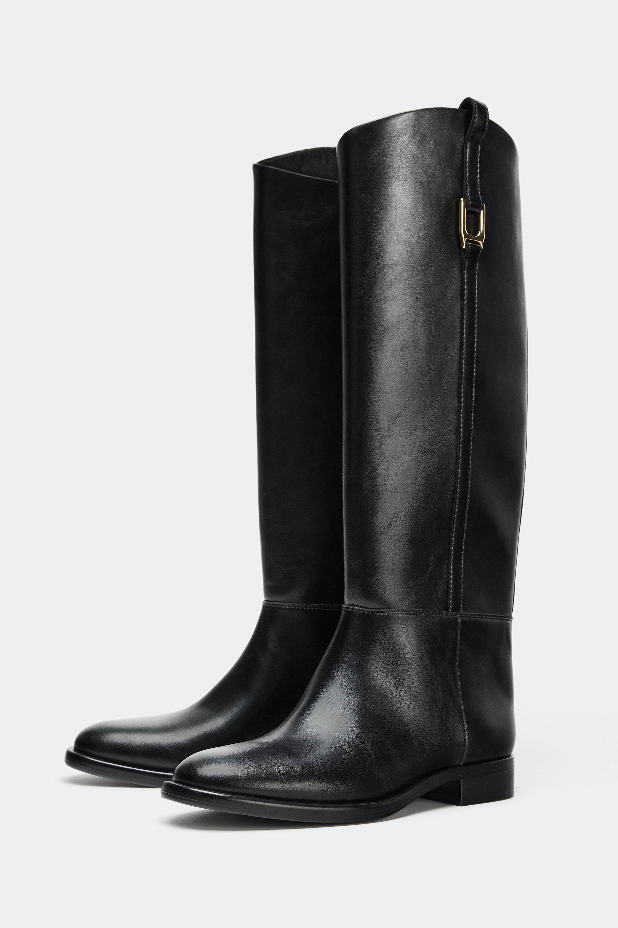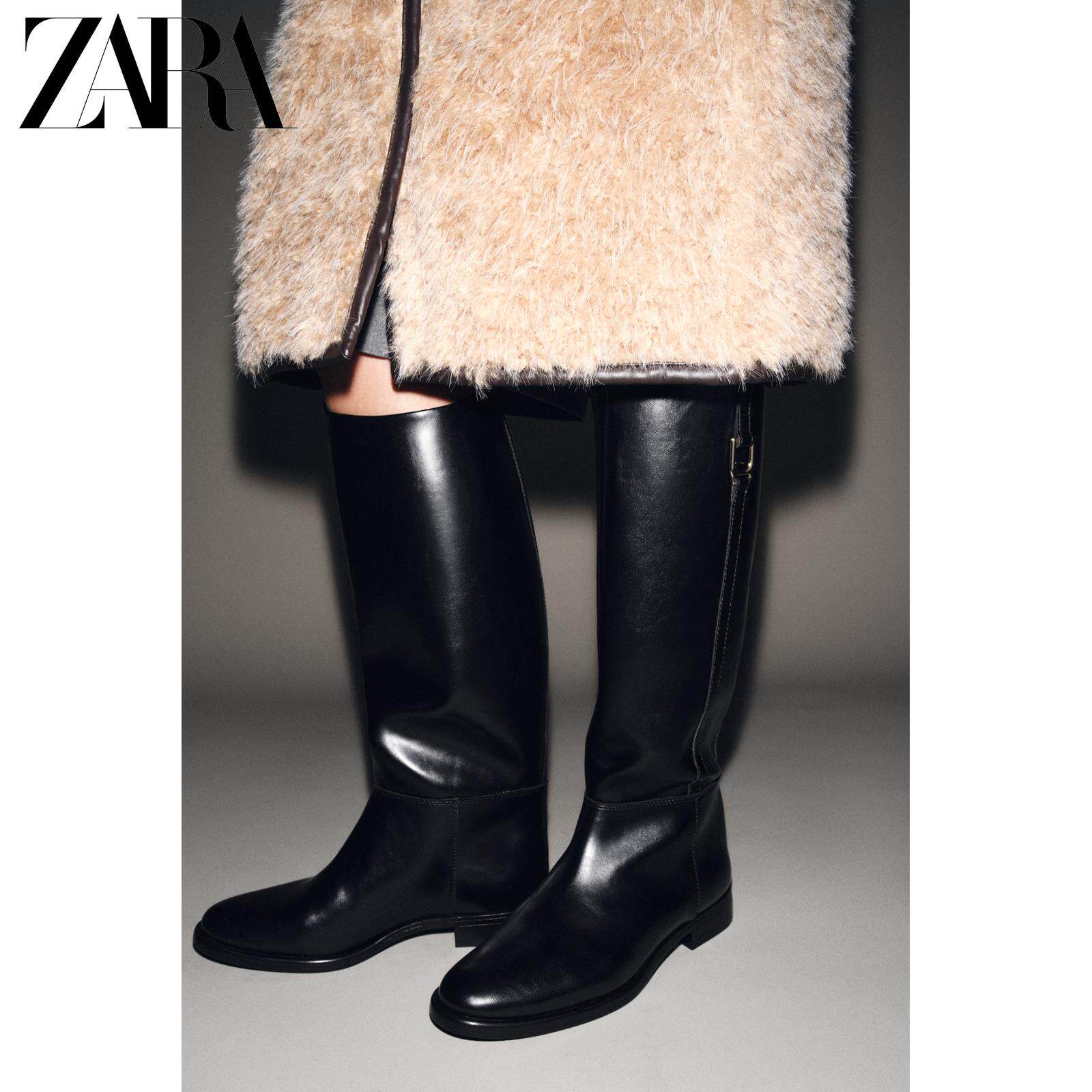 ZARA Зимние новинки 2025 года. Женская обувь. Сапоги для верховой езды на плоской подошве с резьбой и круглым носком. 1000710 800