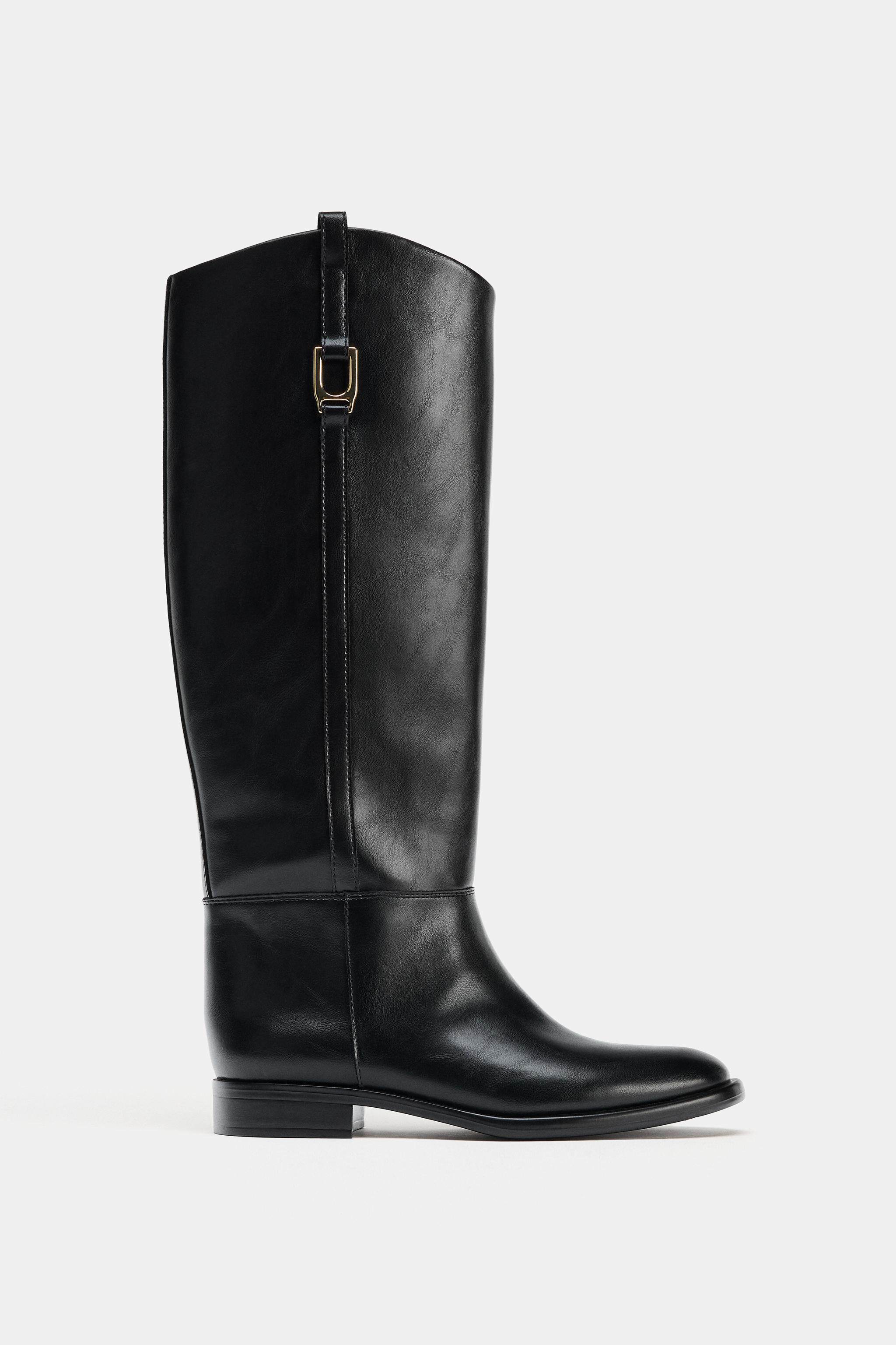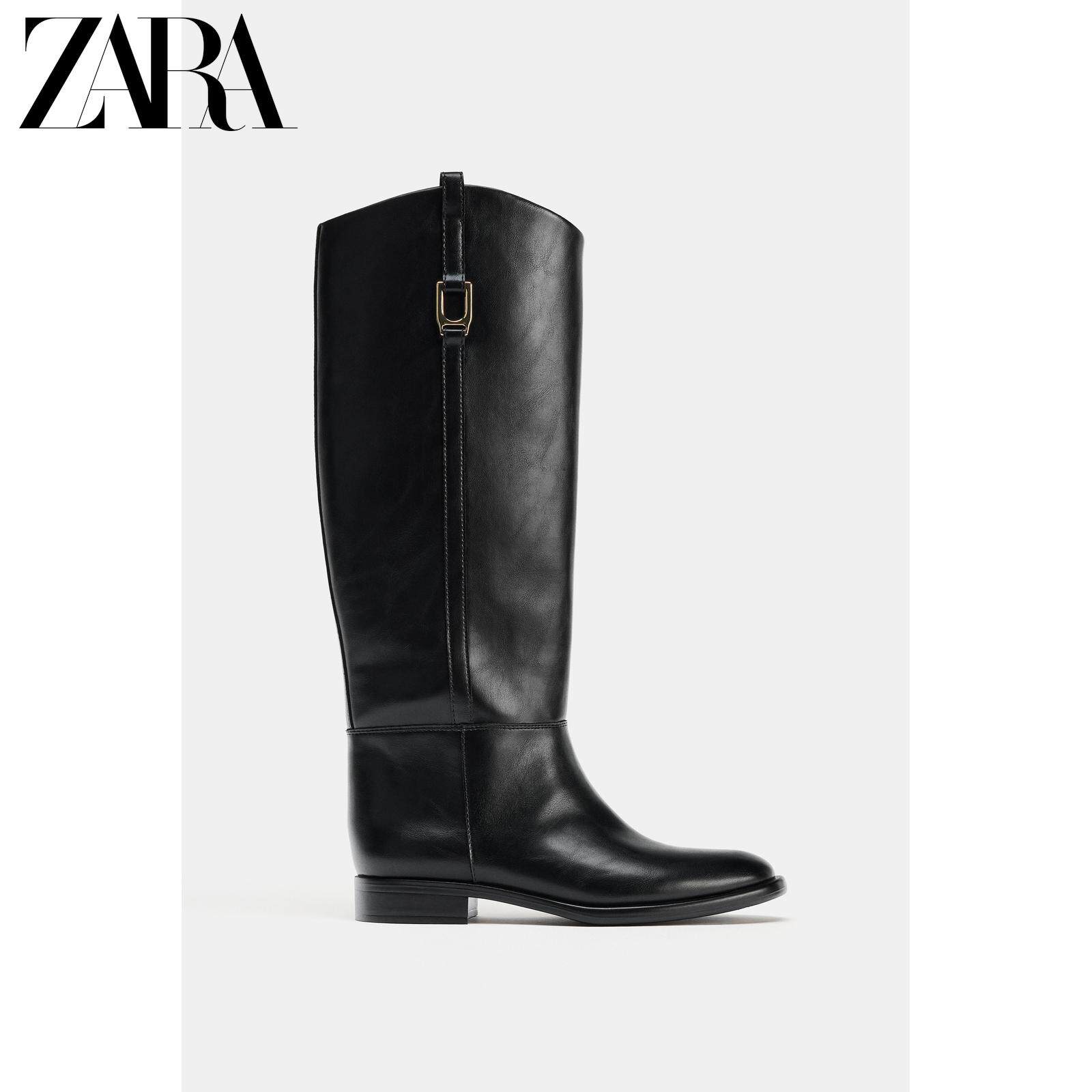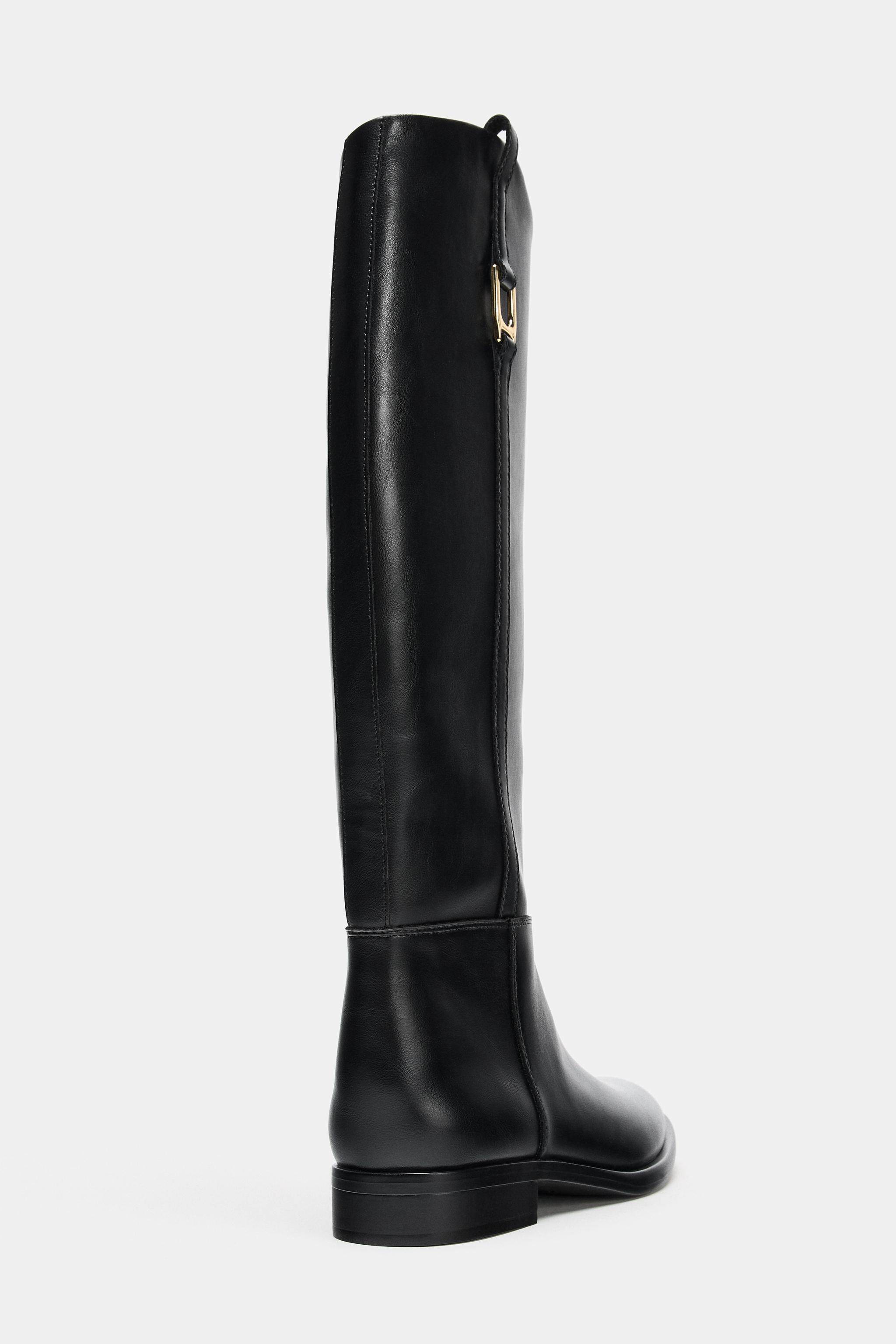 ZARA Зимние новинки 2025 года. Женская обувь. Сапоги для верховой езды на плоской подошве с резьбой и круглым носком. 1000710 800