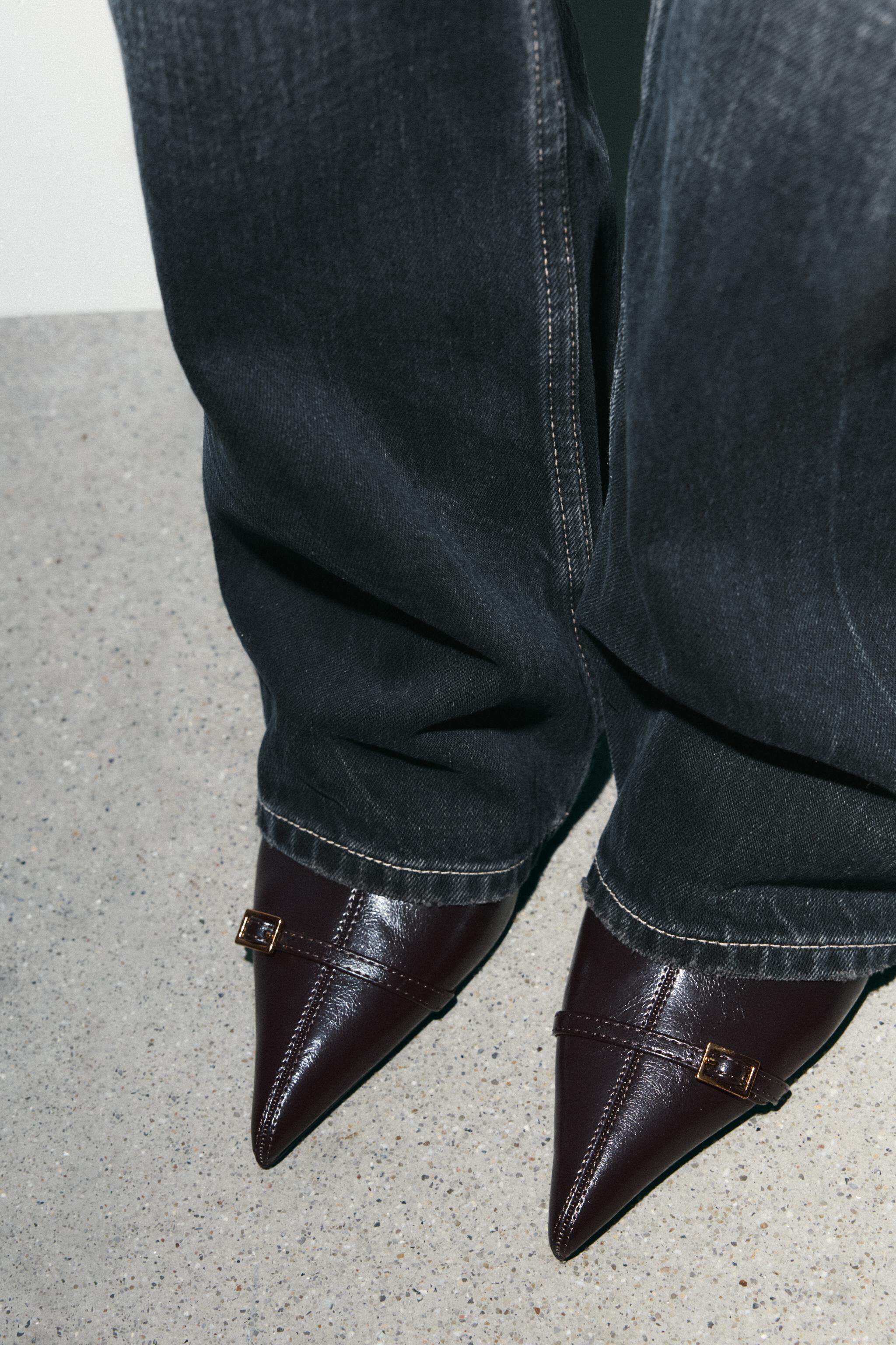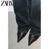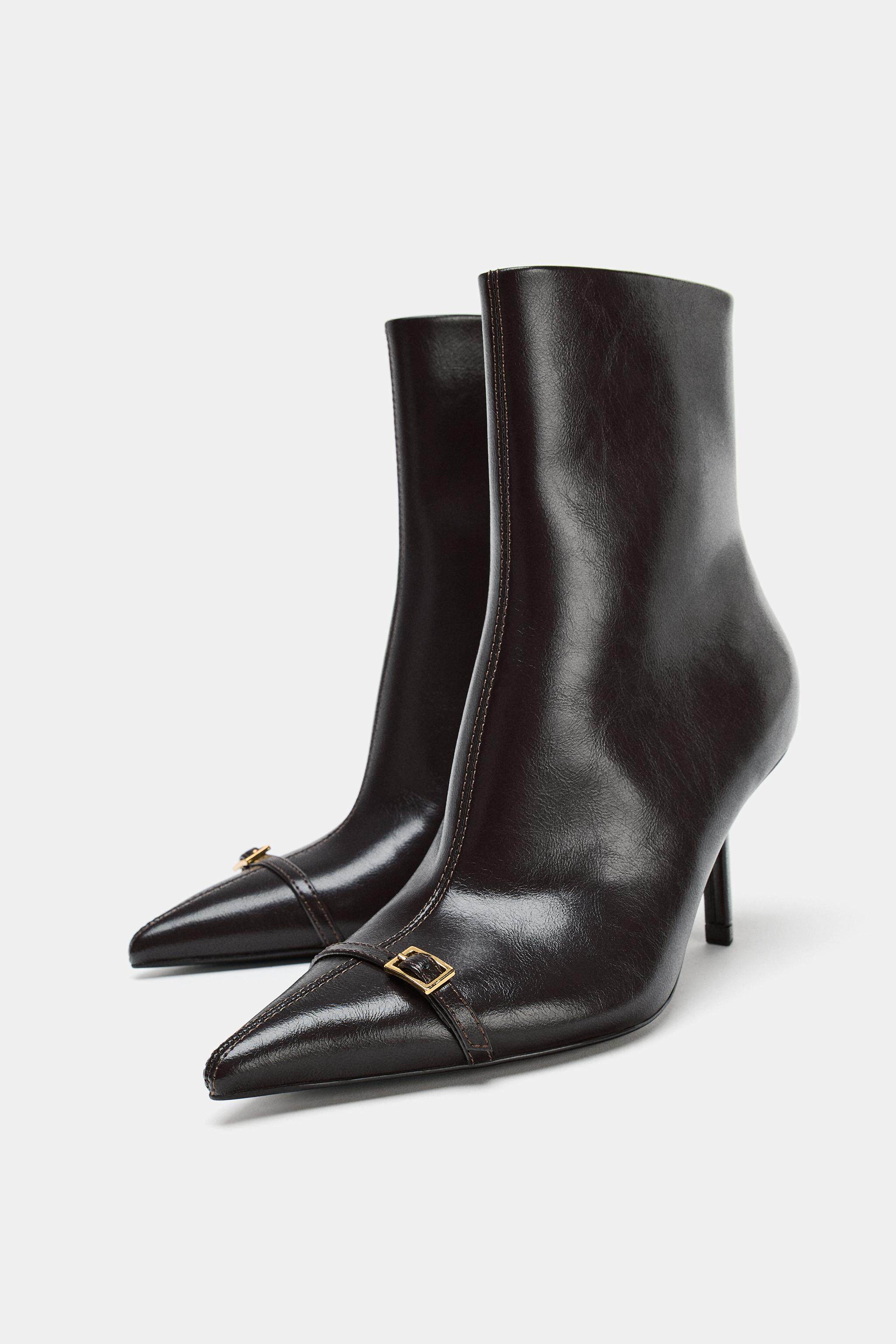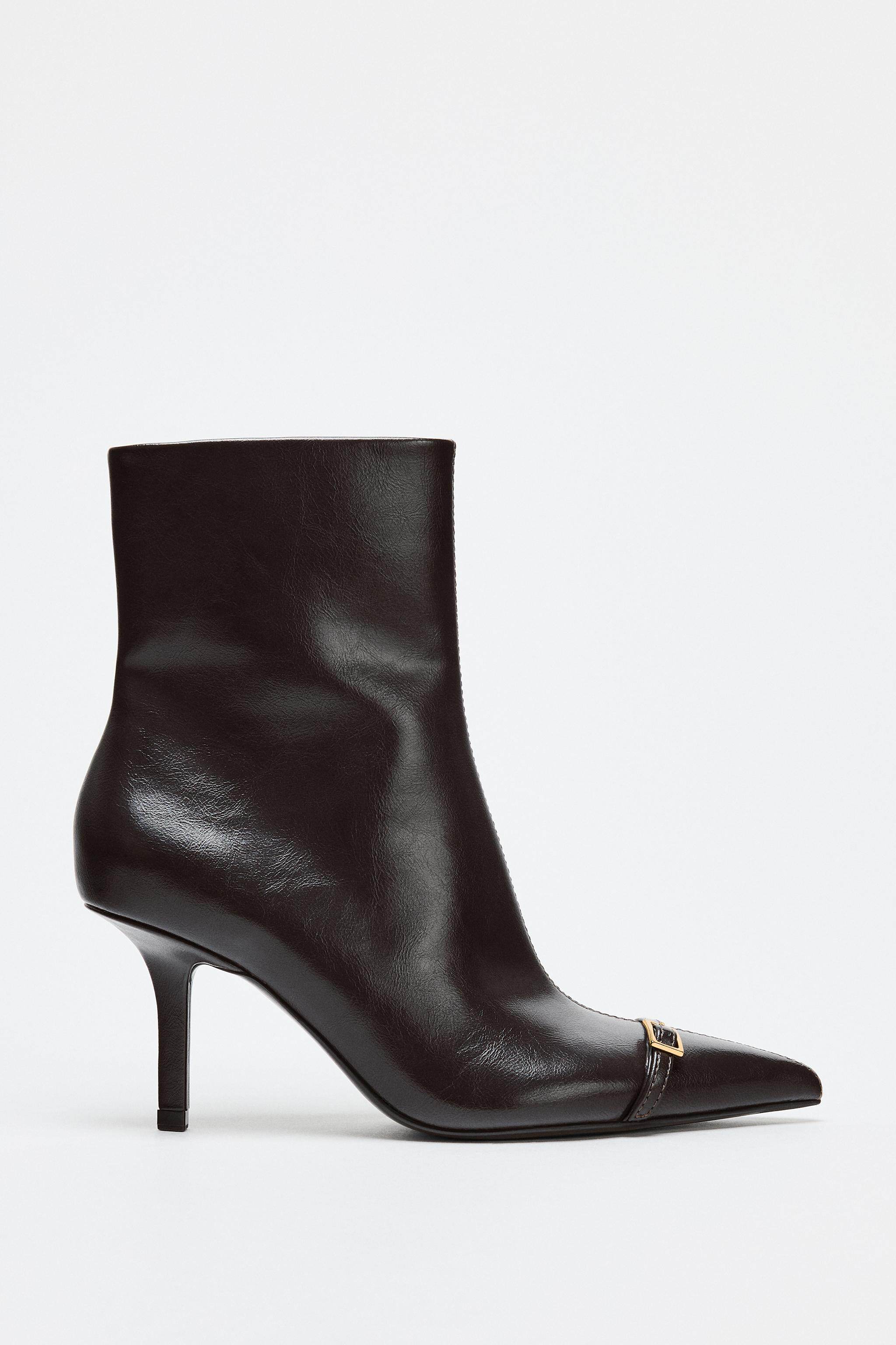 ZARA 2025 зимняя новинка, женская обувь, короткие ботинки с боковой молнией и пряжкой на шпильке с острым носком 3101710 700
