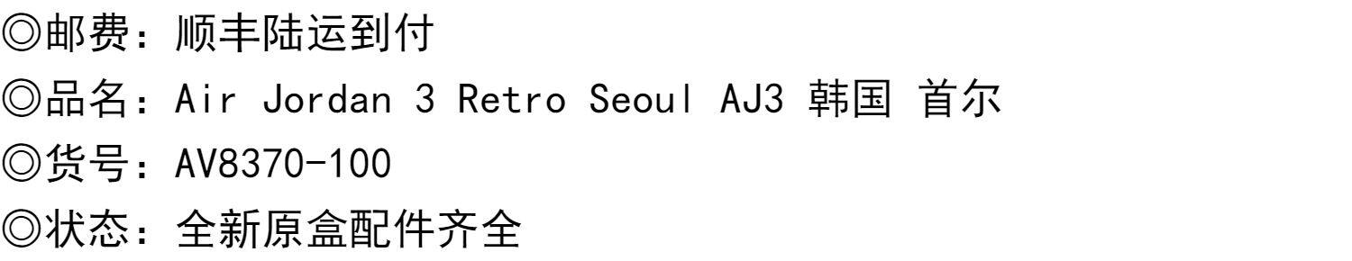 Северная Каролина Air Jordan 3 Retro Seoul AJ3 Корейская баскетбольная обувь AV8370-100